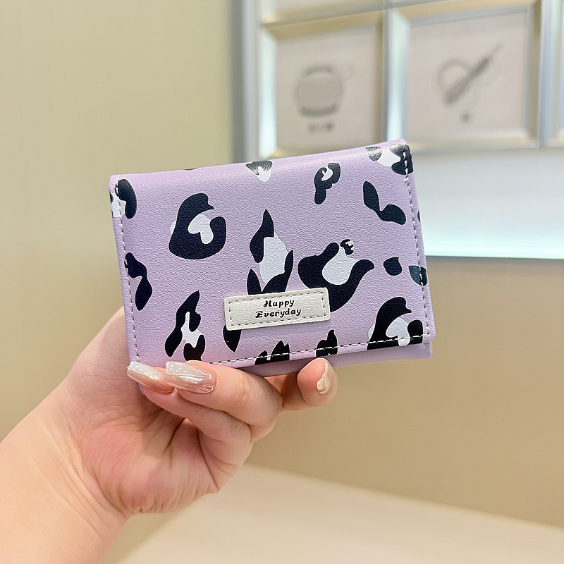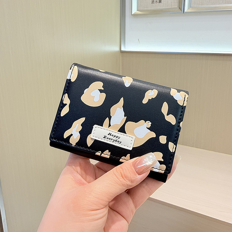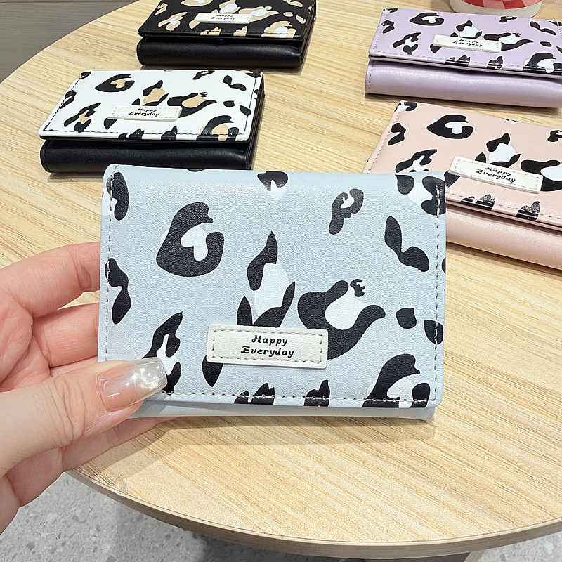 韩版新款个性时尚豹纹印花精致三折薄款小巧迷你短款女士钱包钱夹