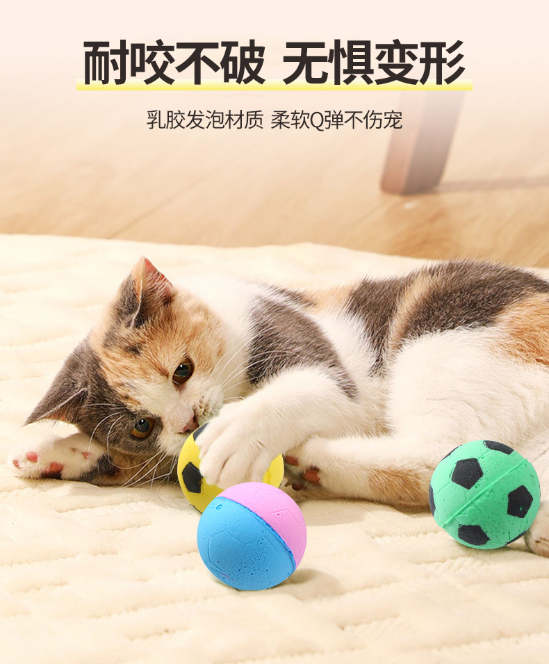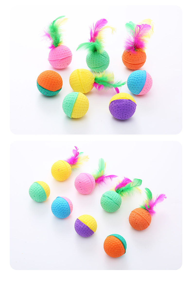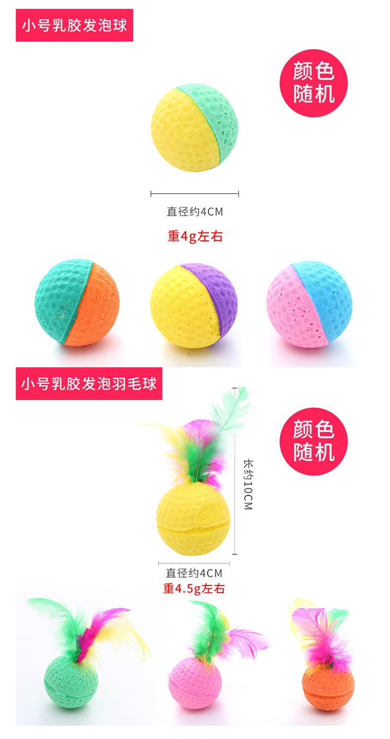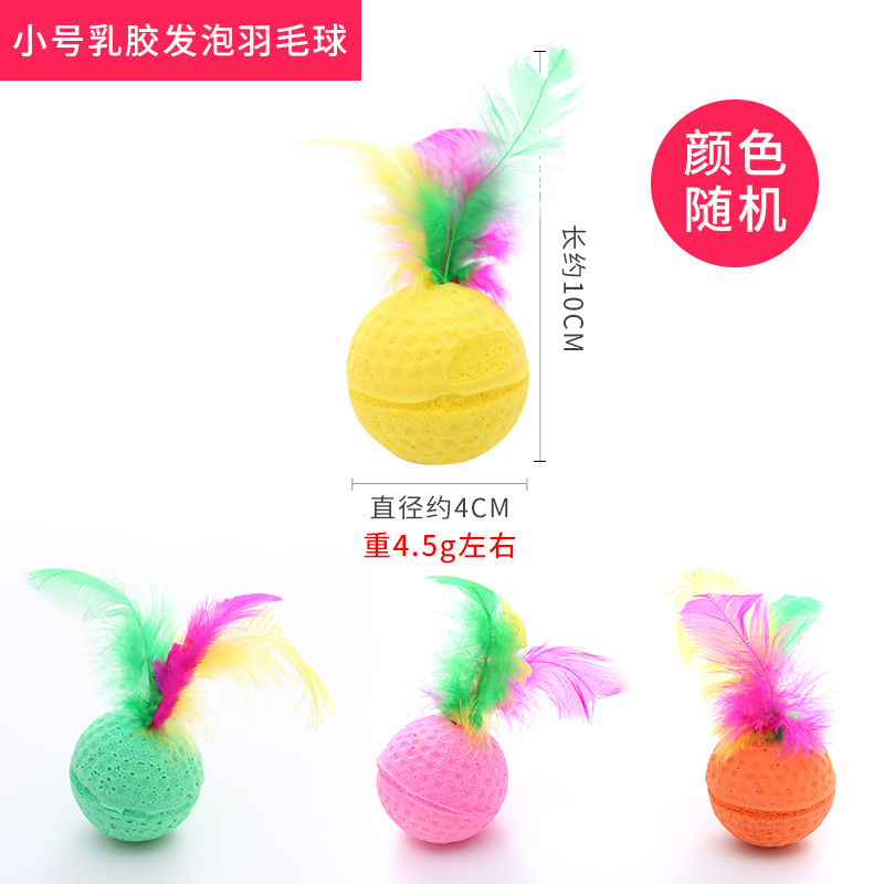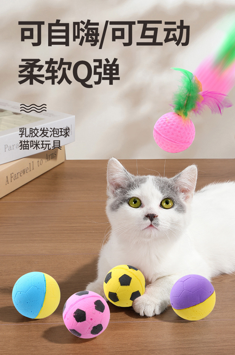 宠物用品工厂现货乳胶发泡球互动玩追逐自嗨球形玩具带羽毛猫玩具