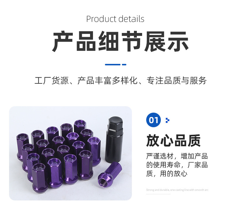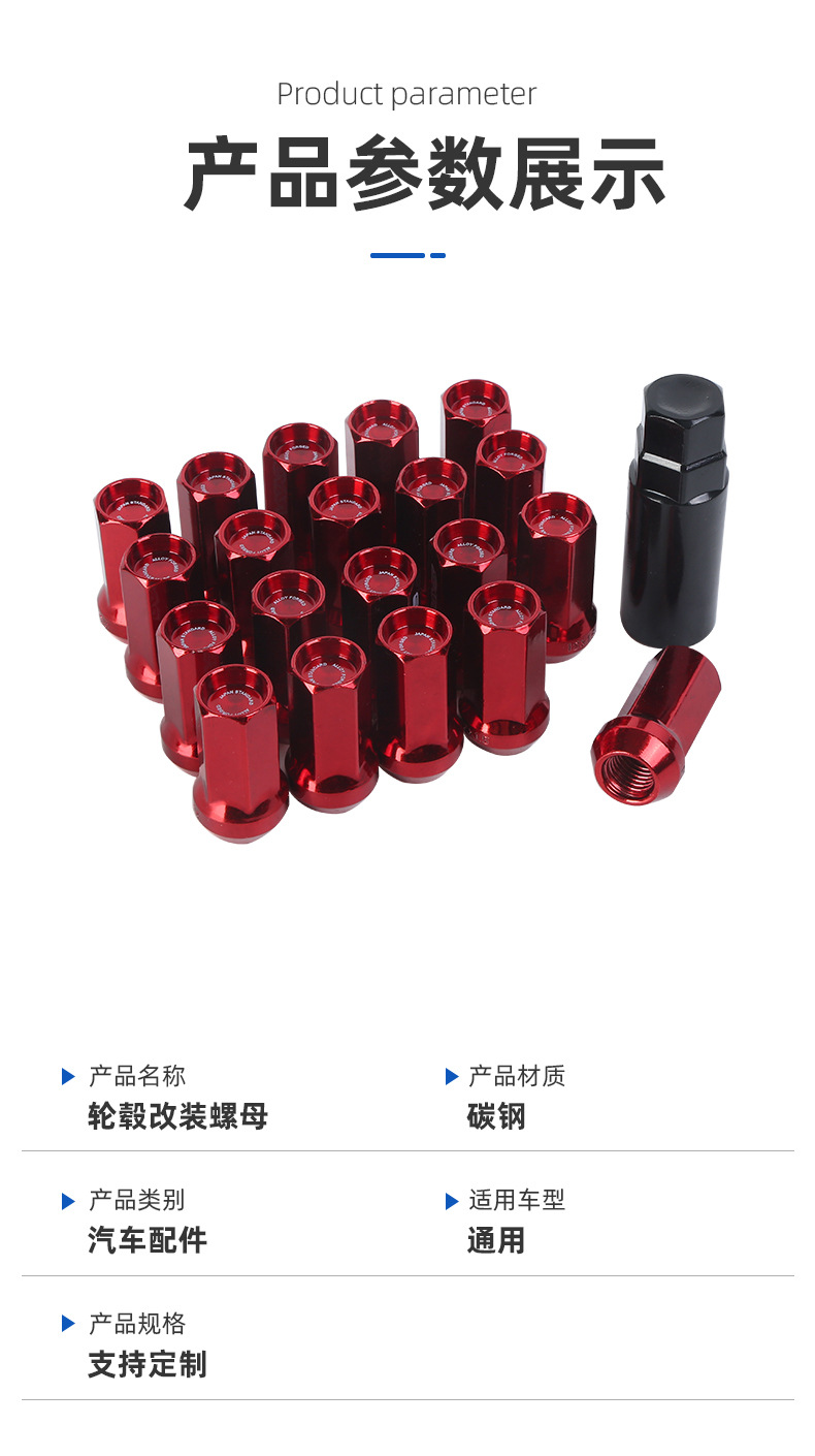 厂家汽车配件轮毂改装螺母螺丝17对边高42MMWHEELNUT-D651车用
