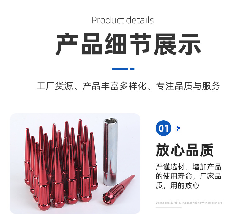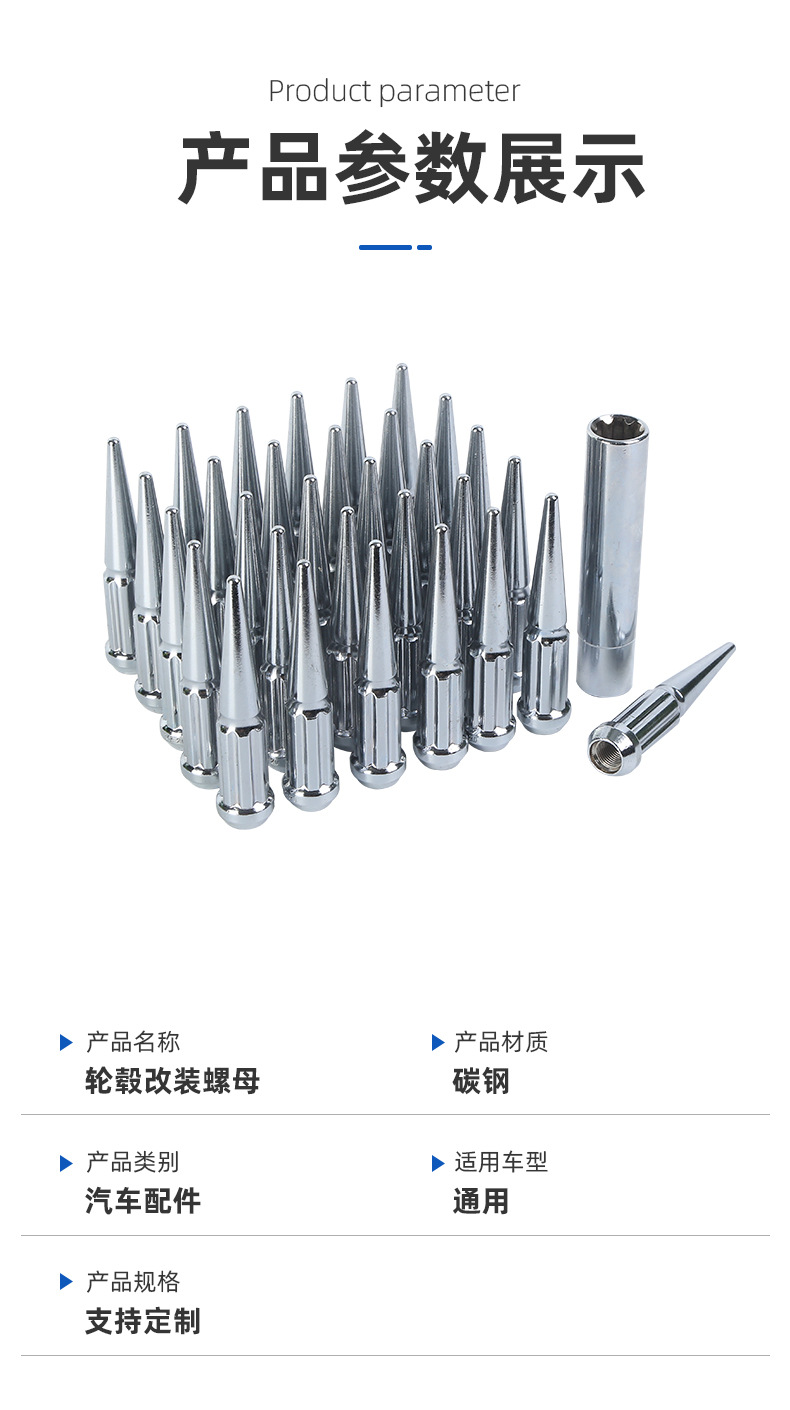 轮毂螺丝螺母112花齿尖头汽车配件WHEELNUT亚马逊适配车型多改装
