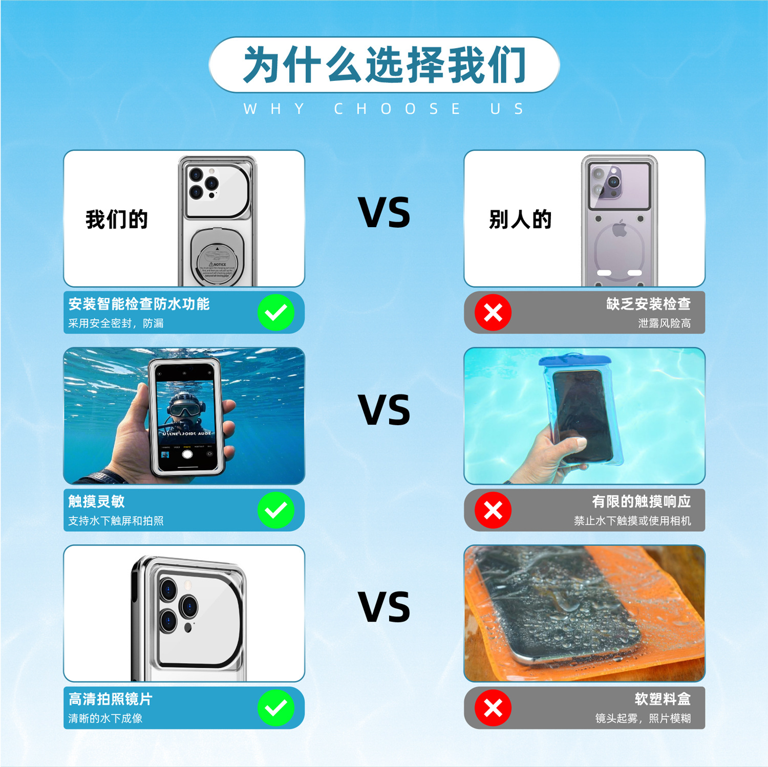 苹果通用自检防水手机壳全密封适用于iphone17promax通用潜水套