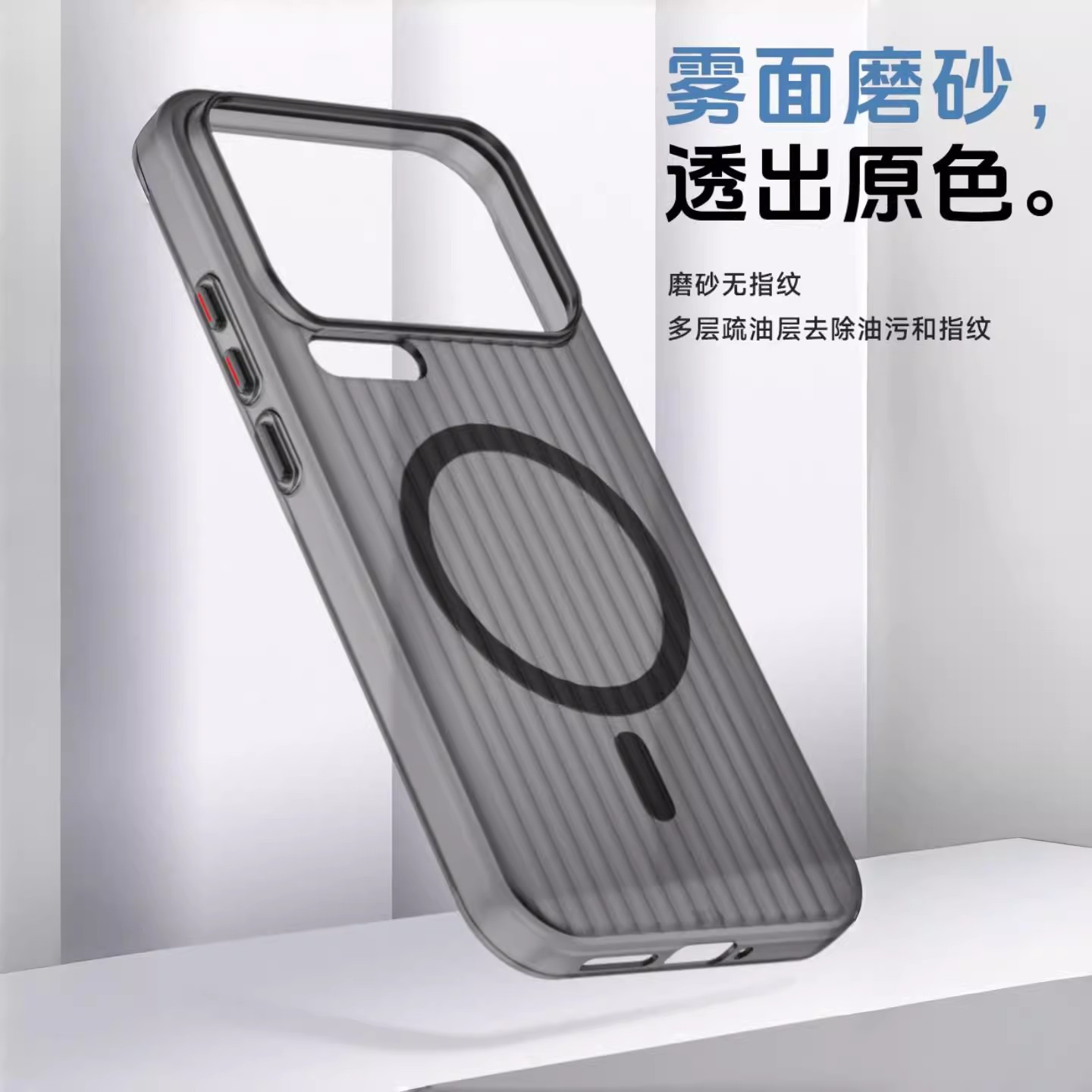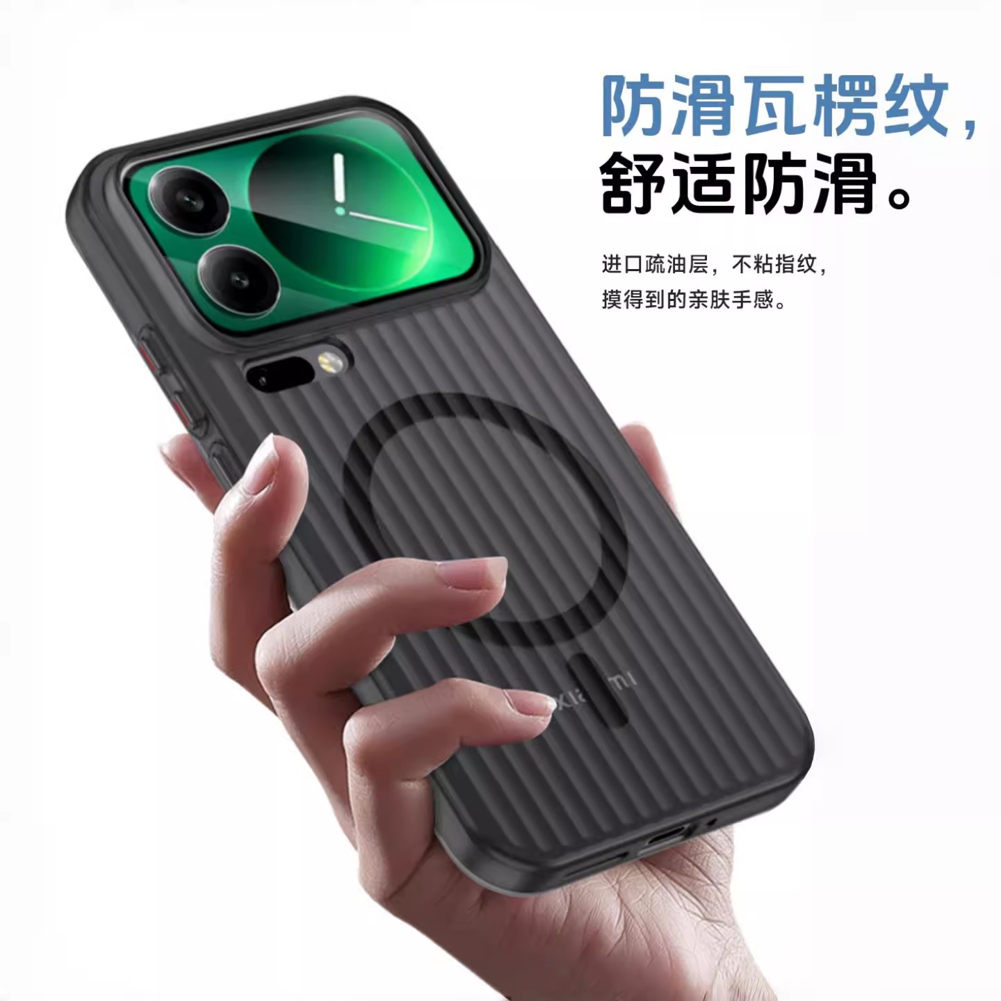 适用小米17promax磨砂瓦楞磁吸手机壳独立按键小米15全包PC保护套
