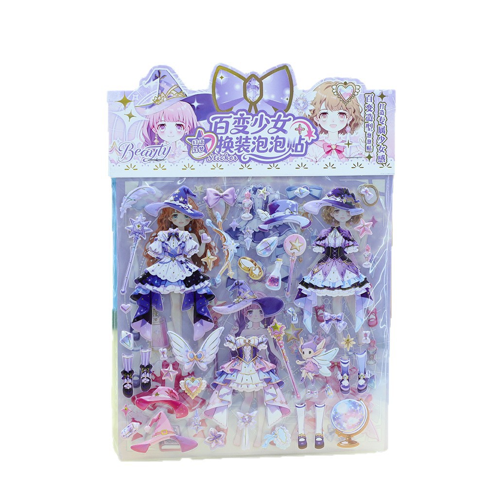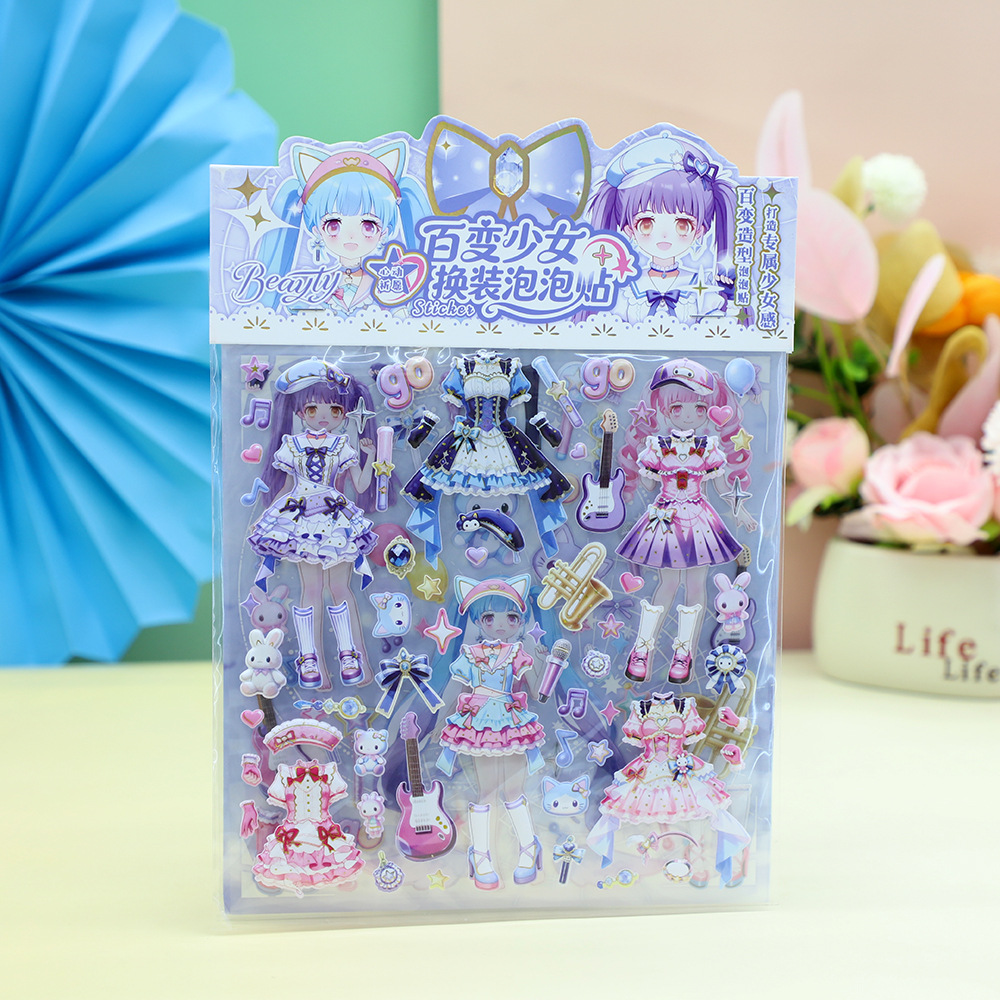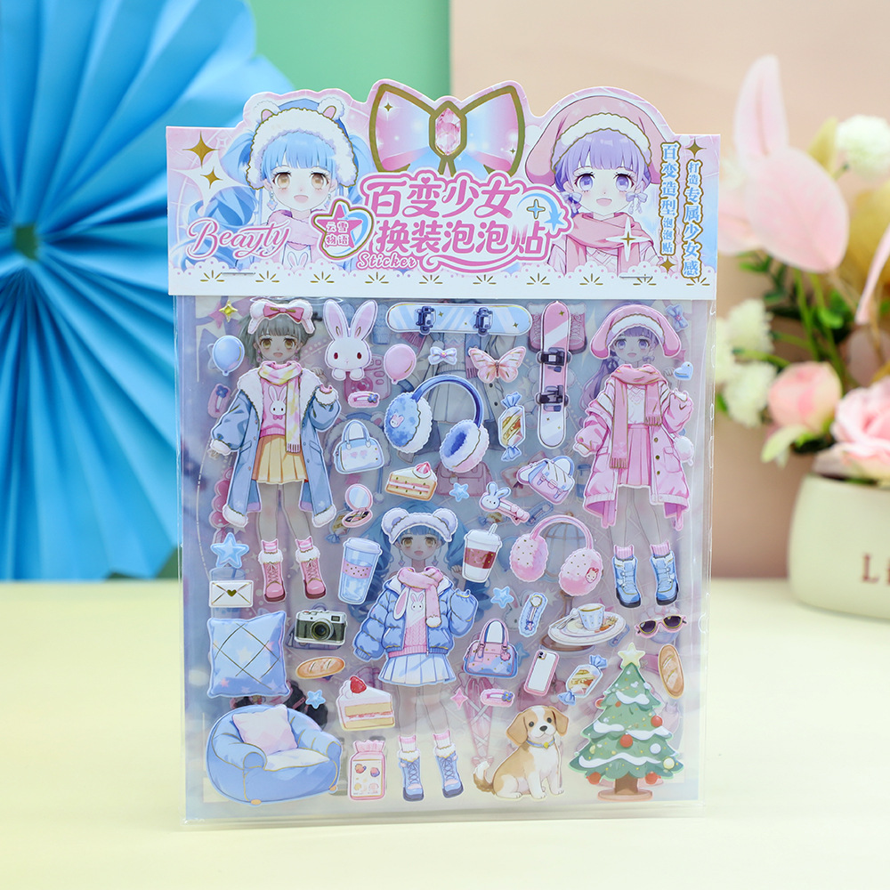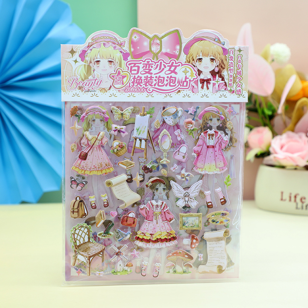 百变少女换装双层泡泡贴礼物学生手账不干胶奖励贴画粘纸立体泡泡