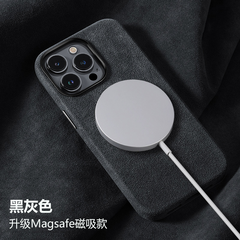 适用苹果iPhone17pro全包翻毛皮手机壳16/15磁吸无线充高档保护套