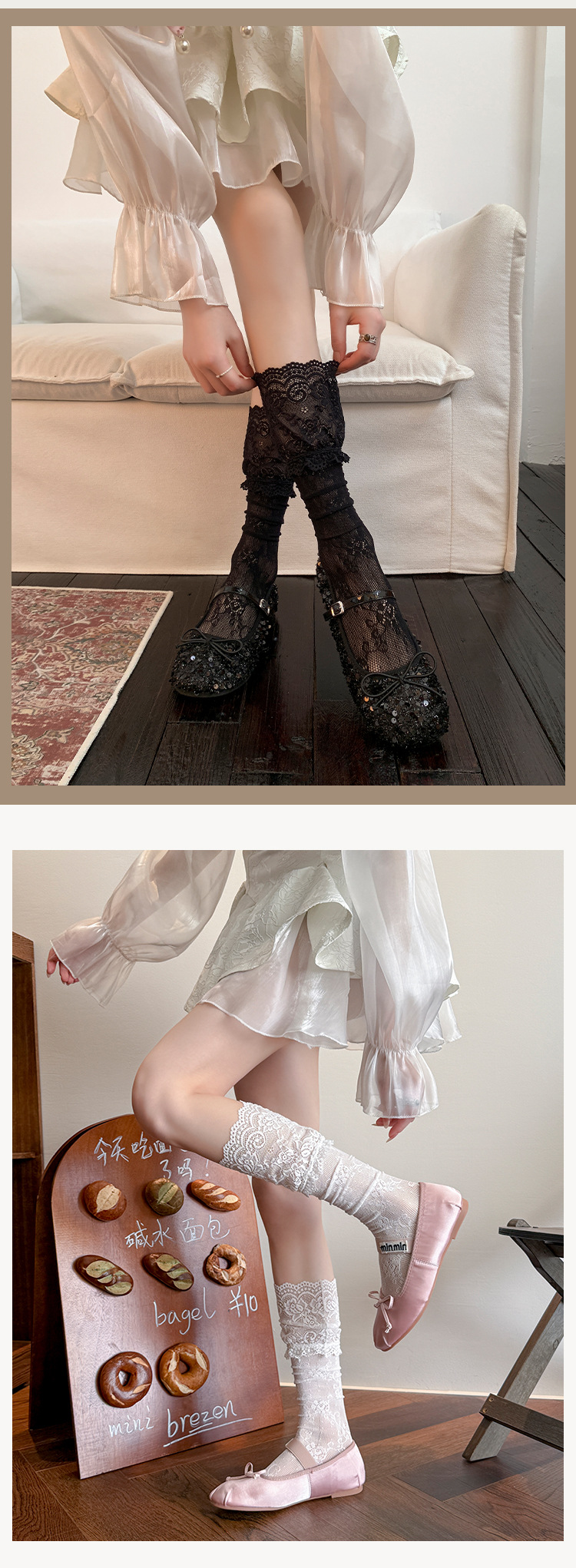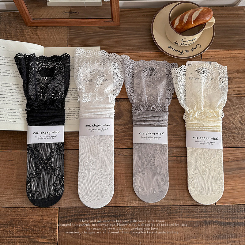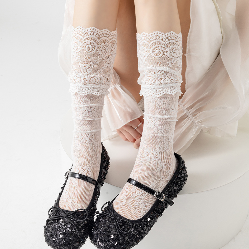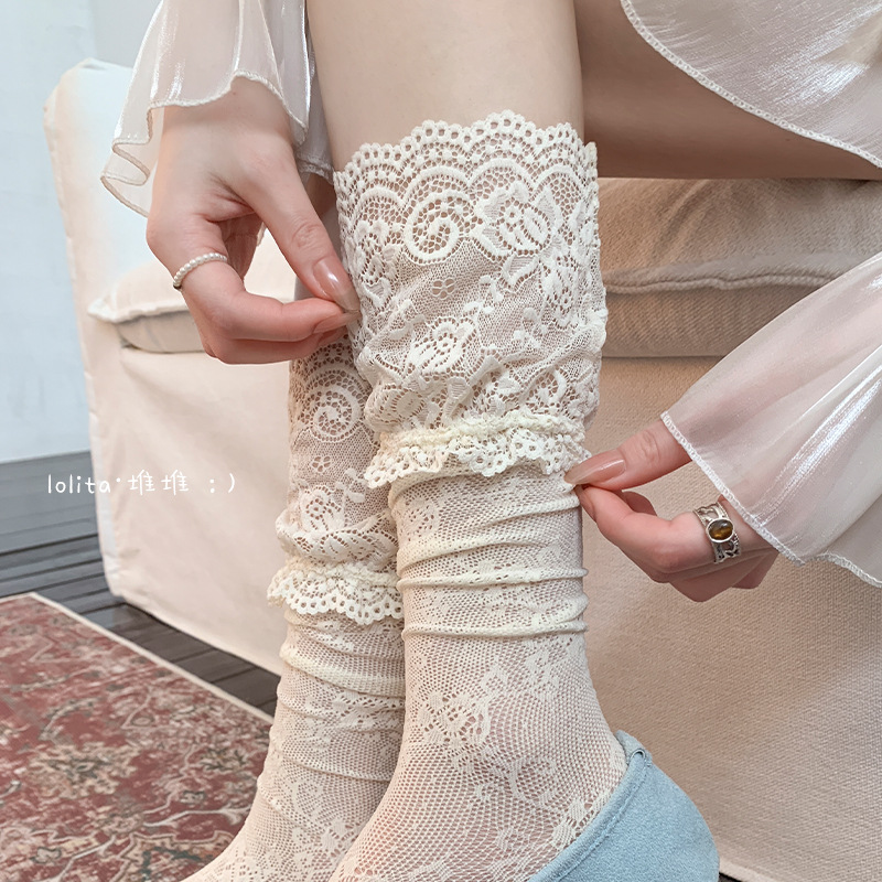白色蕾丝袜子女小腿袜夏季薄款透气堆堆袜miu系少女玛丽珍鞋长袜