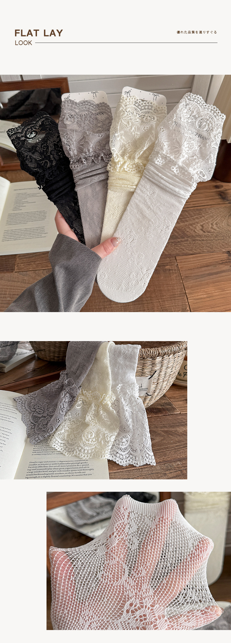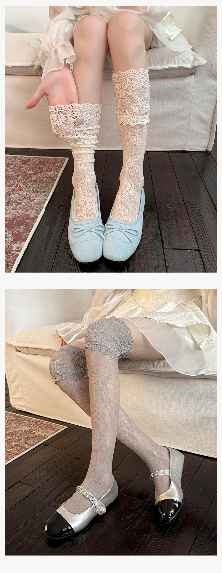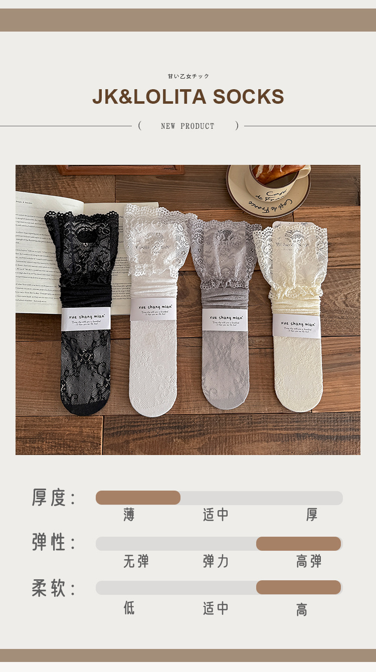 白色蕾丝袜子女小腿袜夏季薄款透气堆堆袜miu系少女玛丽珍鞋长袜