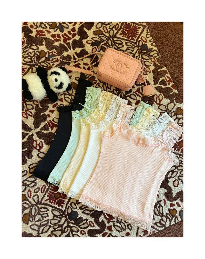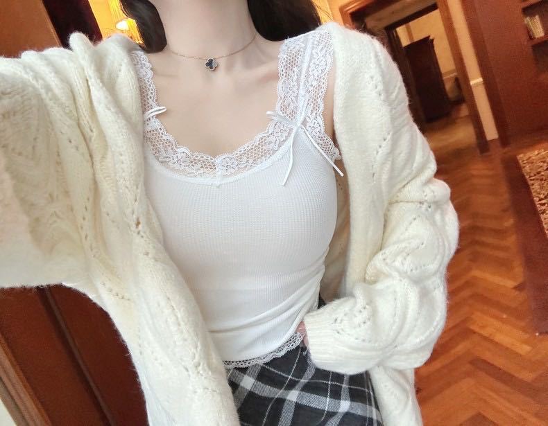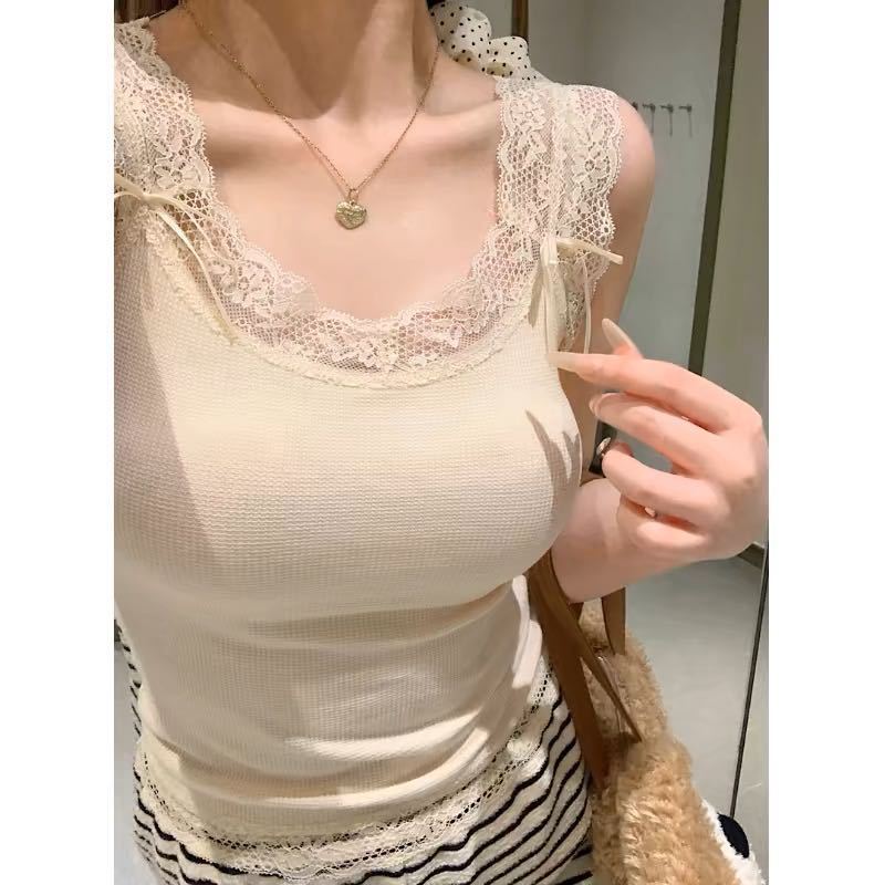 纯欲辣妹蕾丝花边吊带夏季新款修身别致气质无袖内搭上衣