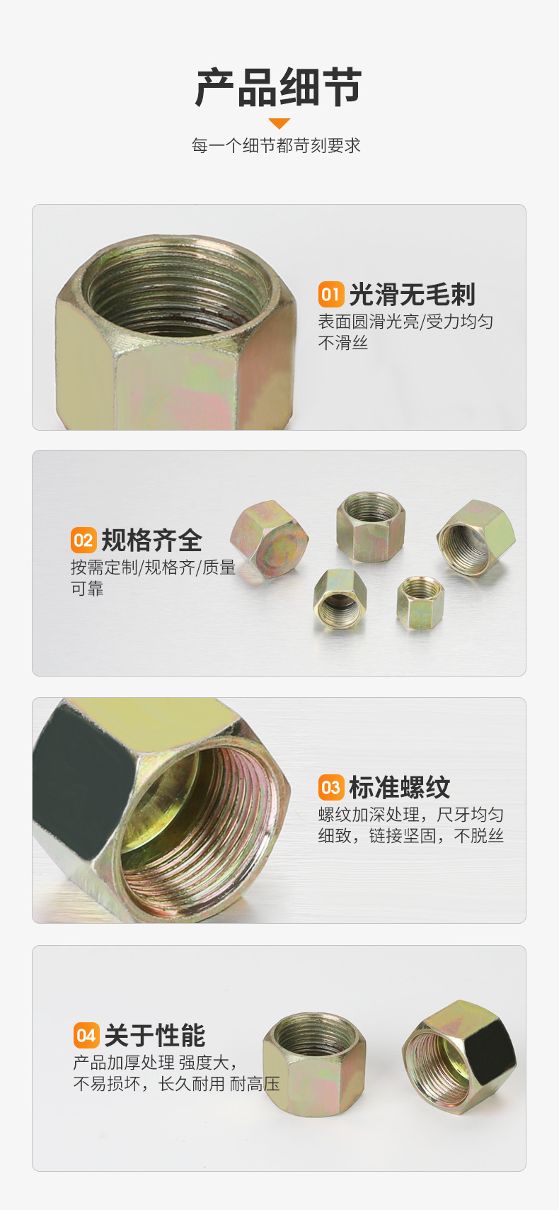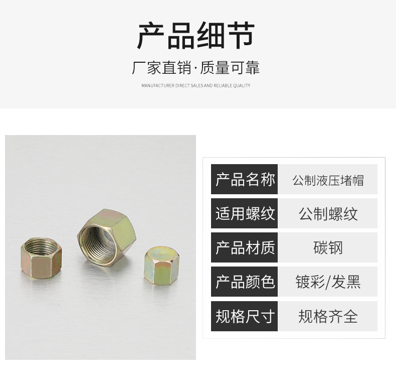 高压油管堵帽堵头液压管封帽闷头螺母外六角油堵油塞内牙公制闷盖