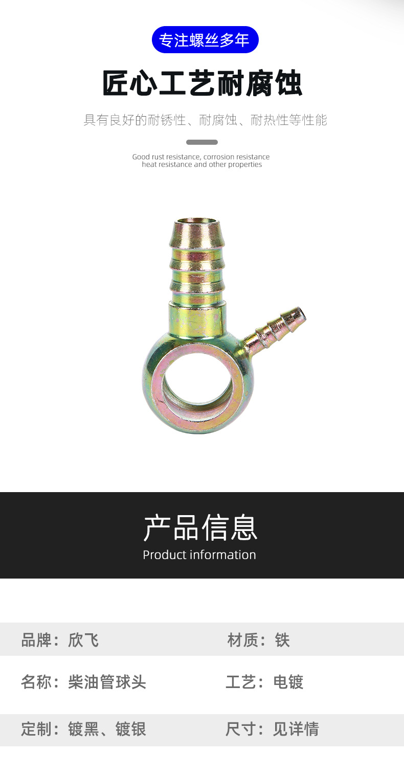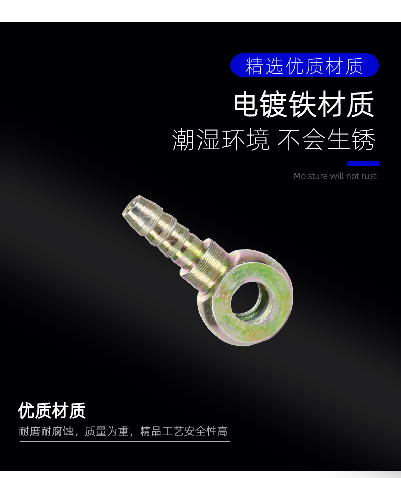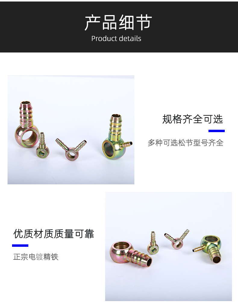 高压油管接头液压油管圆球头扁型回油管铰接尼龙插管Q型扣压接头