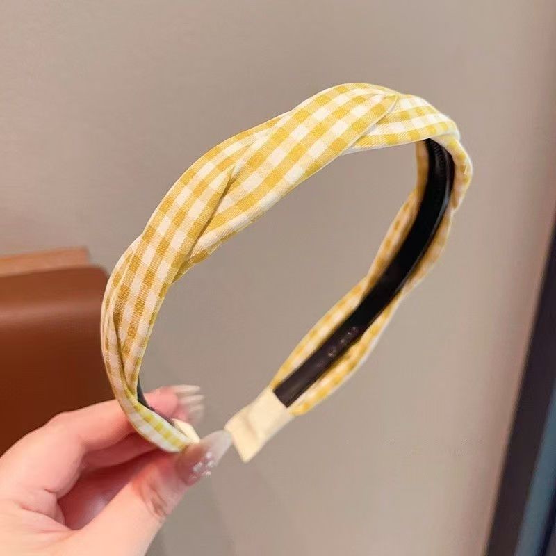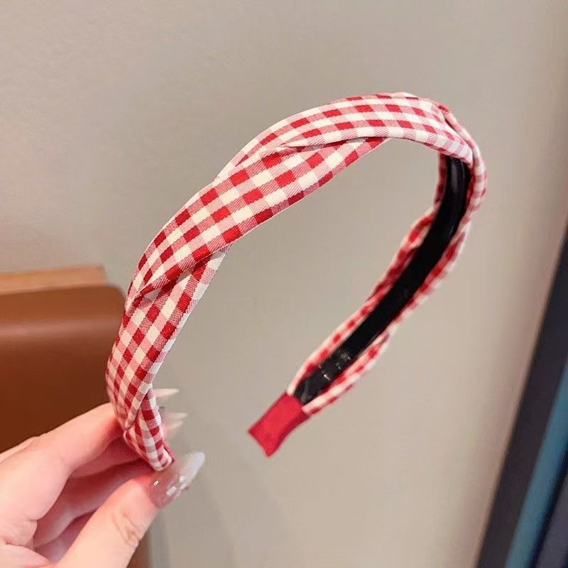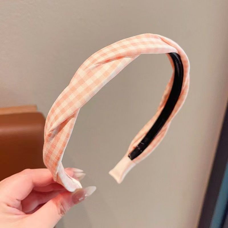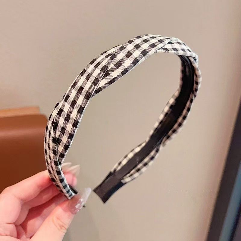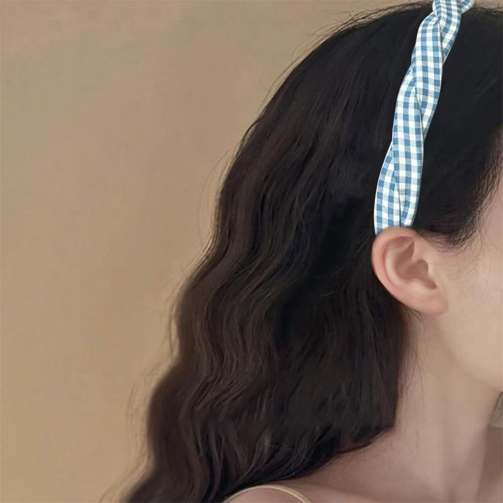 新款百搭布艺格纹麻花交叉带齿发箍洗脸防滑头箍少女感压碎发发饰