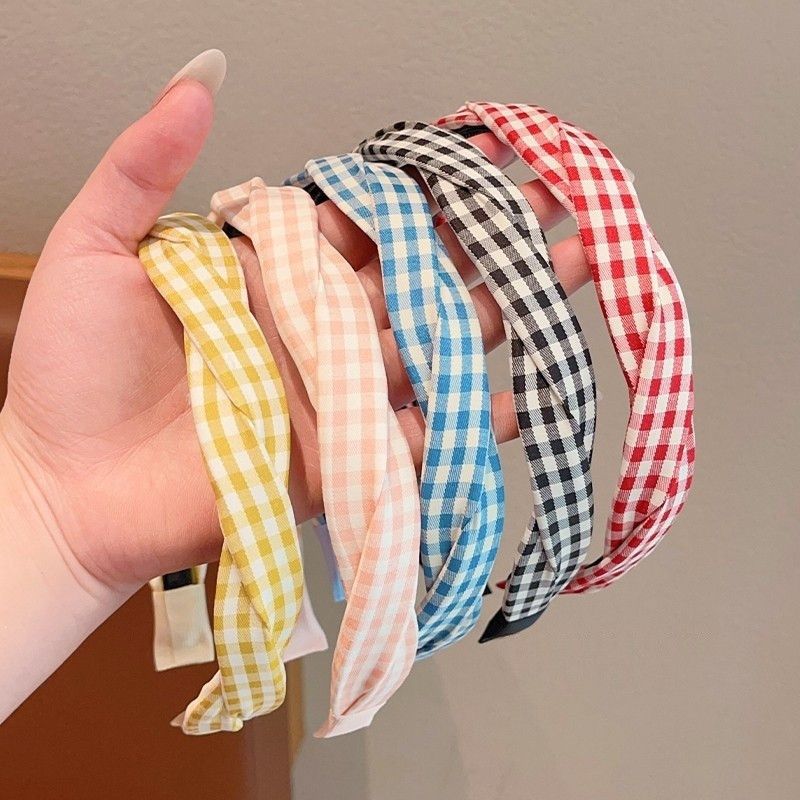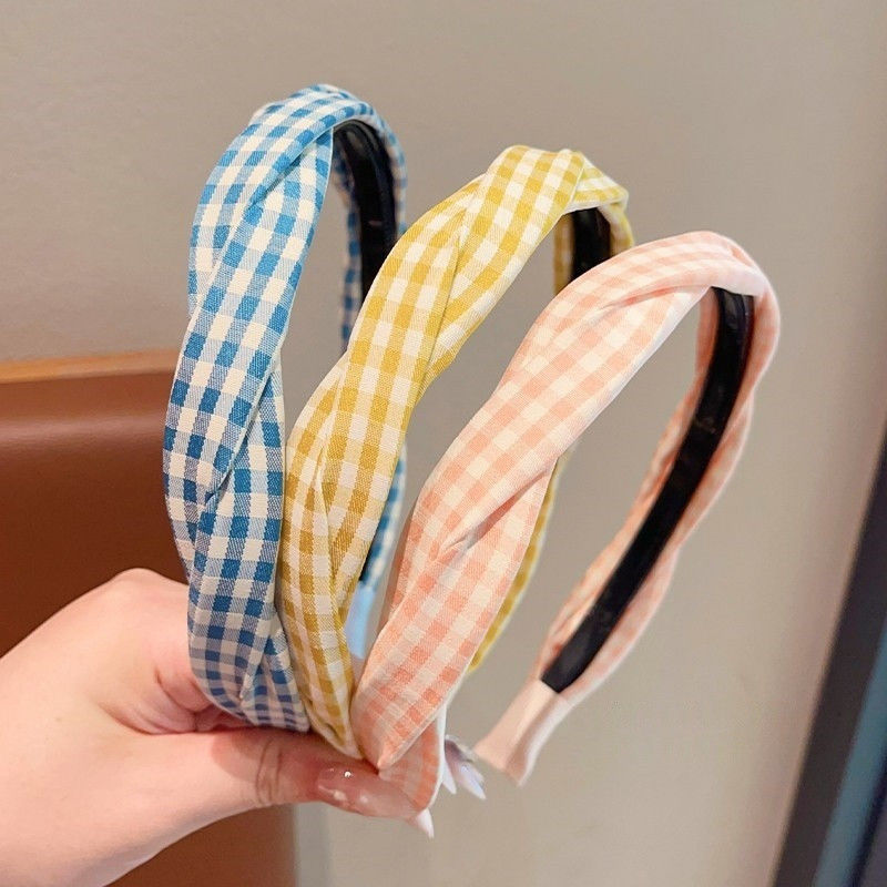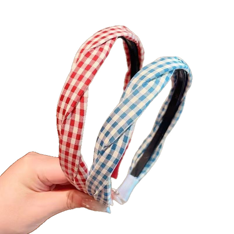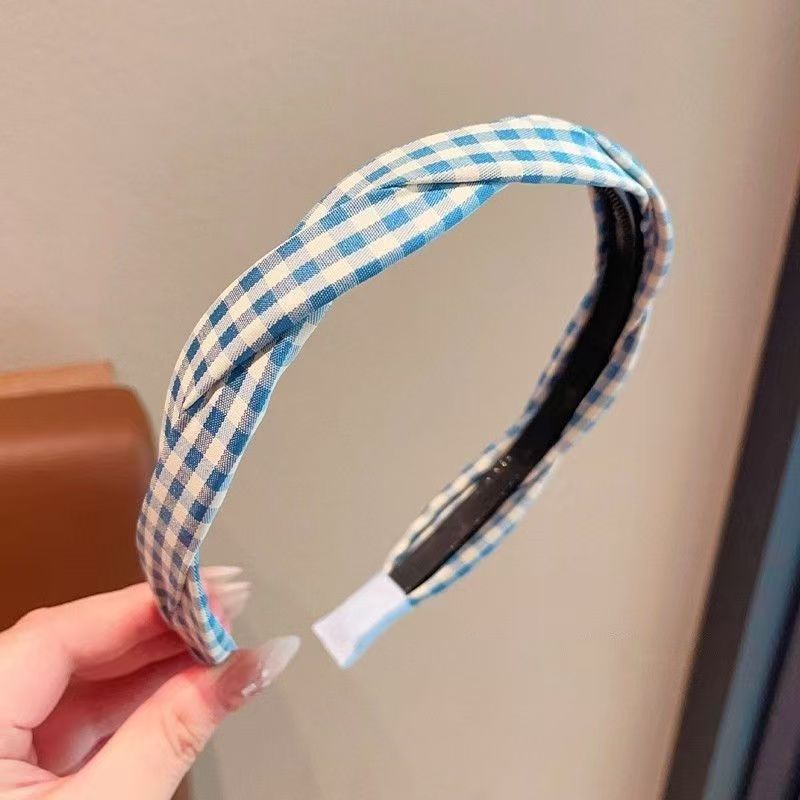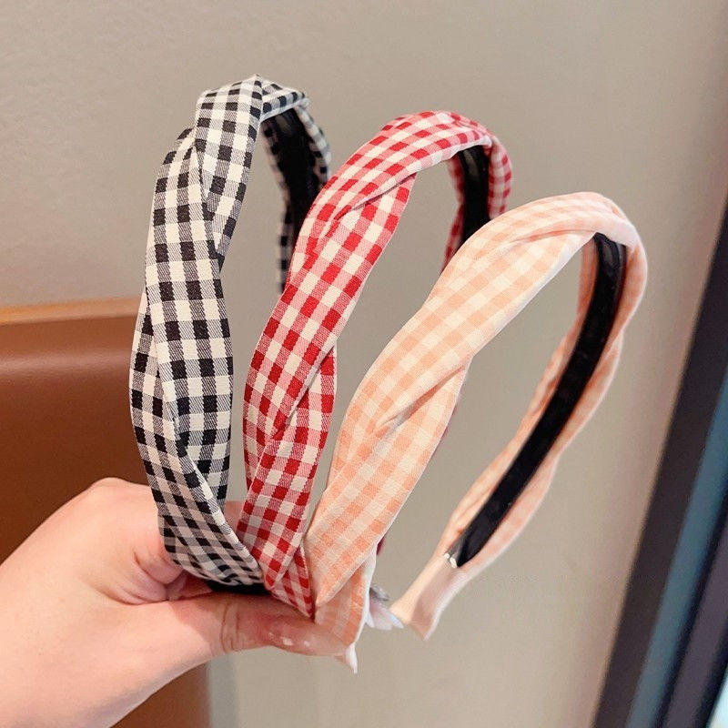 新款百搭布艺格纹麻花交叉带齿发箍洗脸防滑头箍少女感压碎发发饰