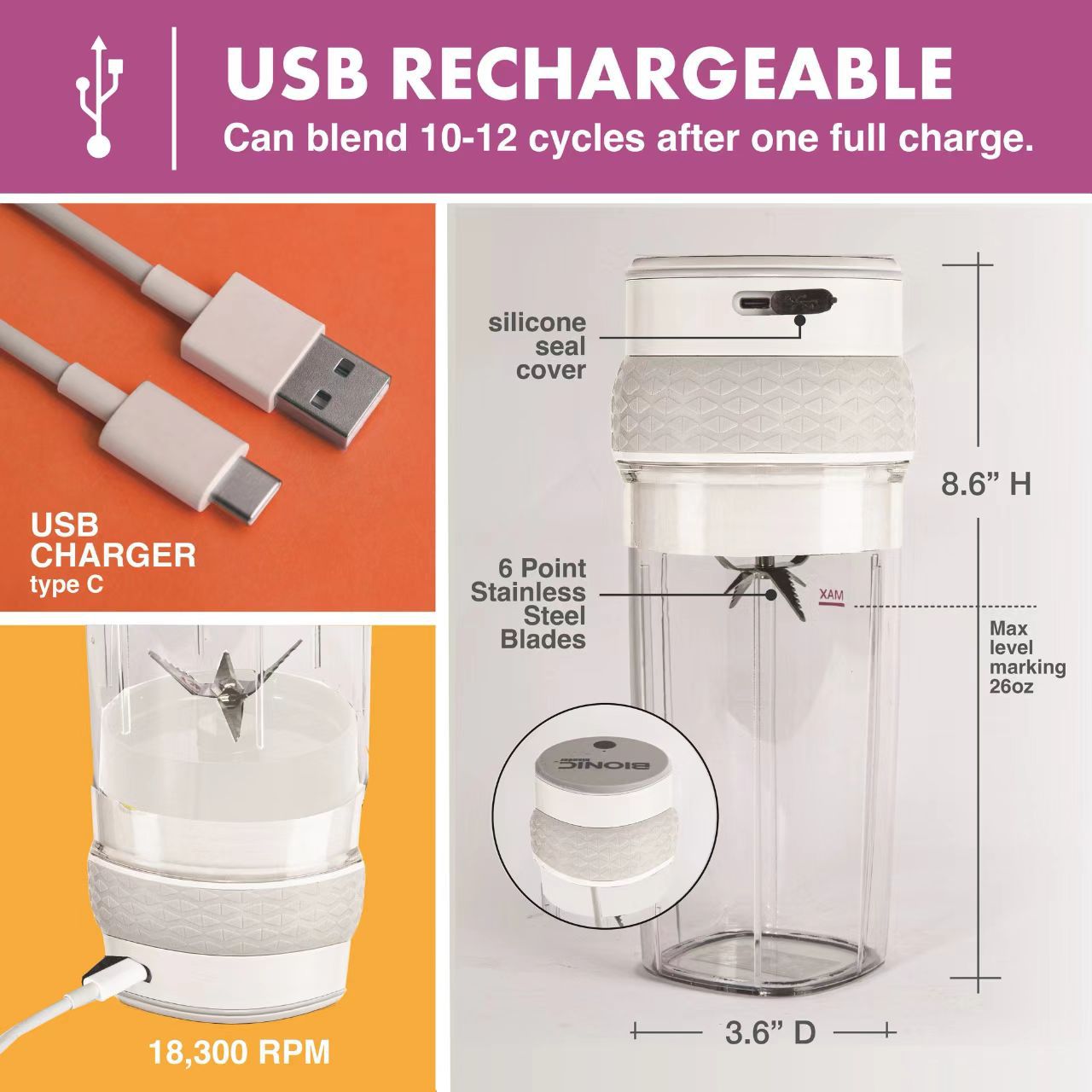 亚马逊 跨境 便携缤纷果汁杯新款榨汁机便携式充电小型辅食碎冰家