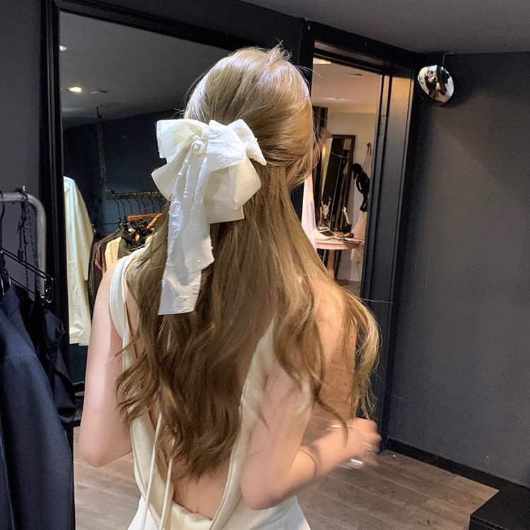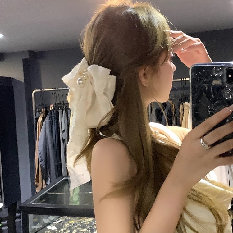 珍珠蝴蝶结发夹女高级感优雅后脑勺夹子头饰