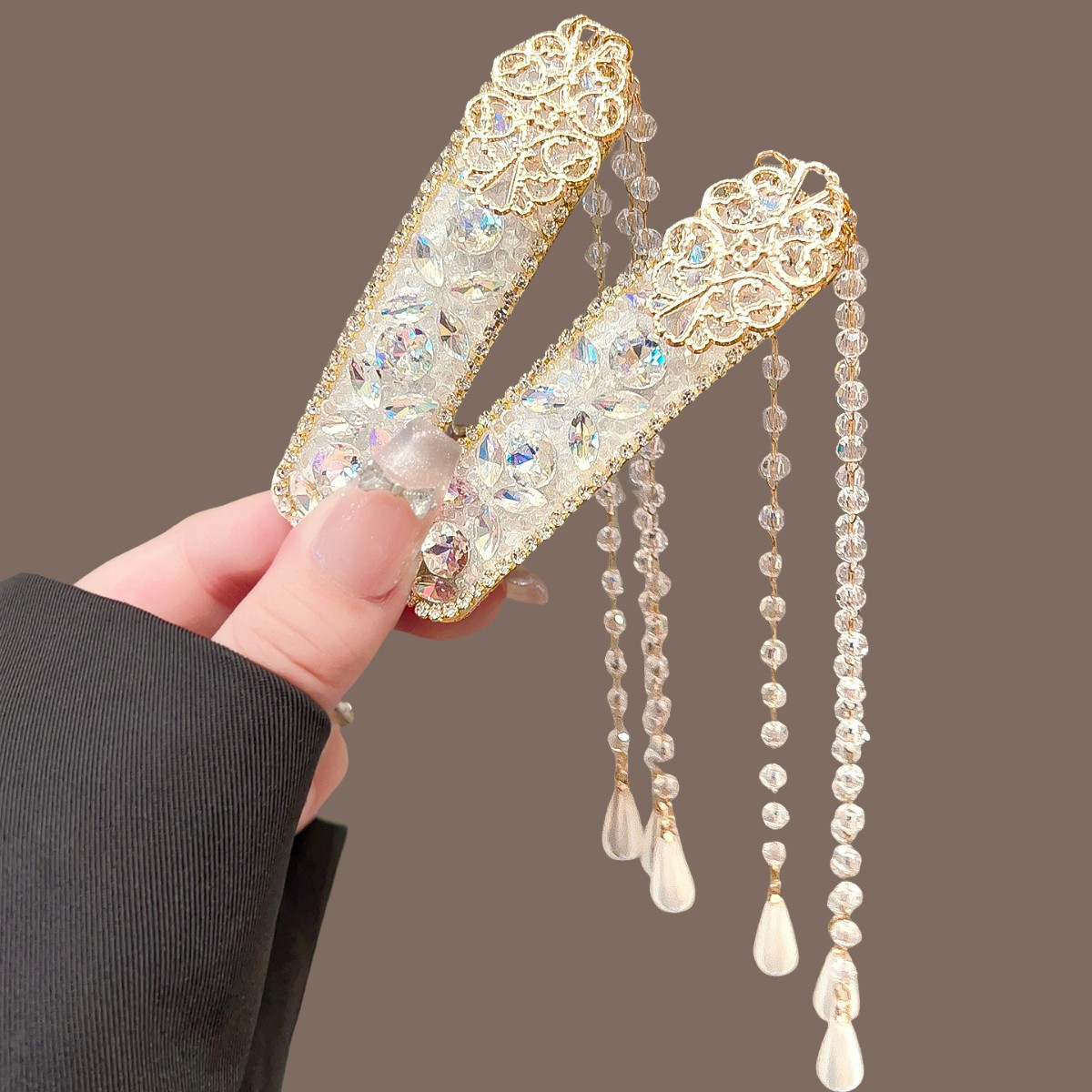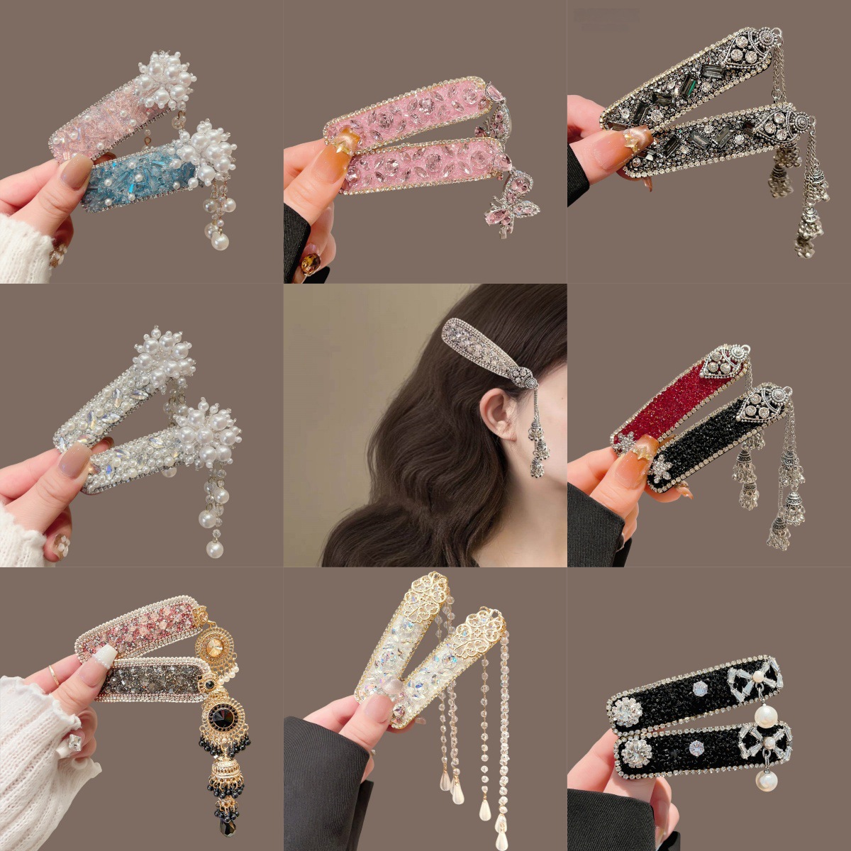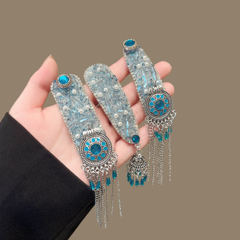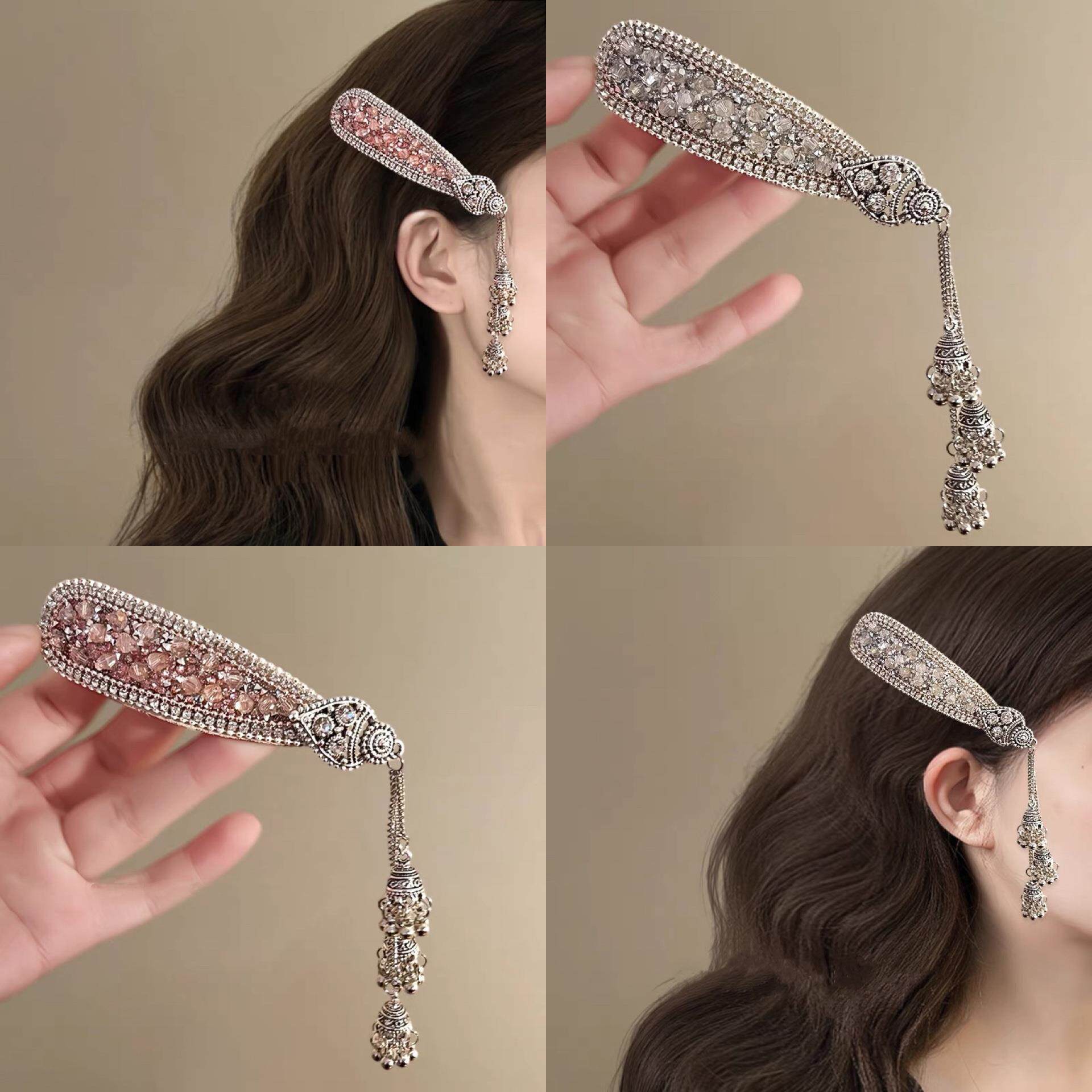 民族风闪钻流苏bb夹重工发夹女高级感水晶碎发夹新款气质发卡发饰