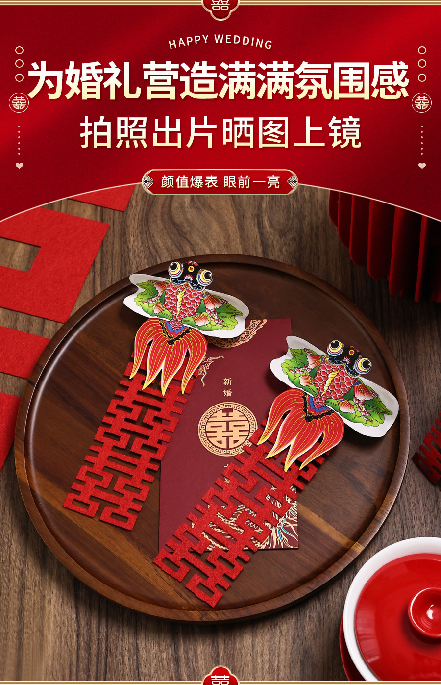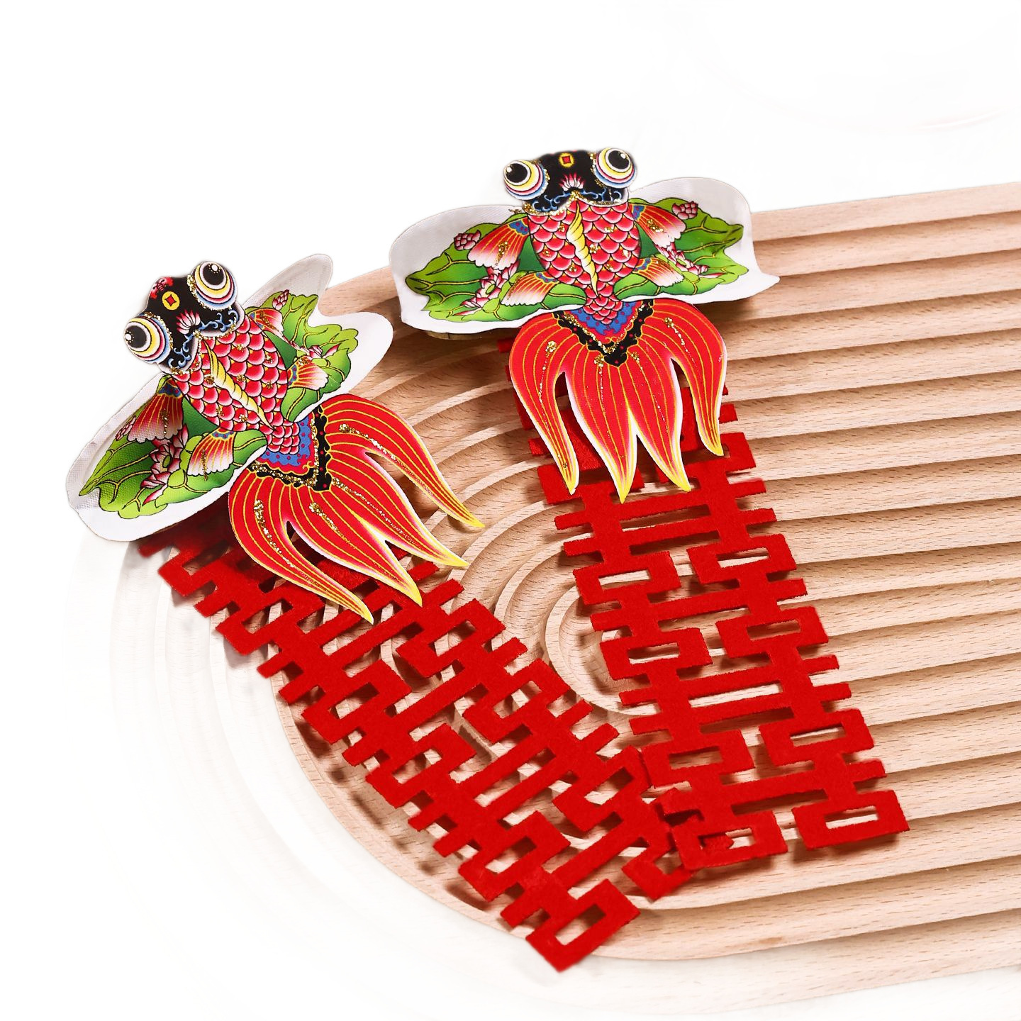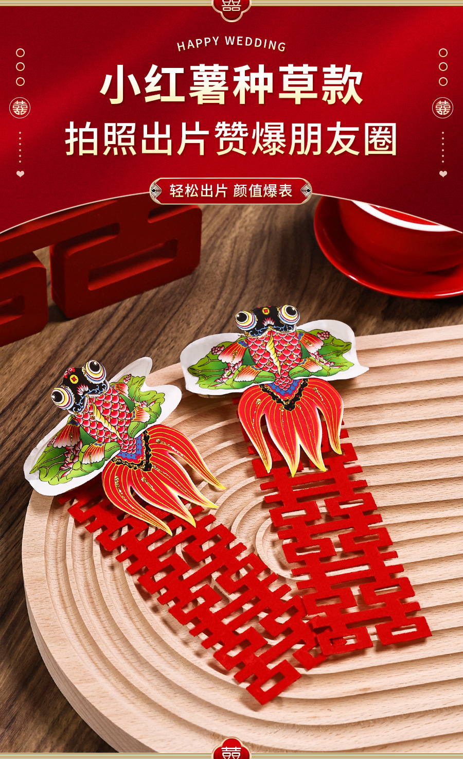 订婚喜宴新中式拍照道具婚房布置金鱼长条喜结婚纸鸢风筝摆件摆台
