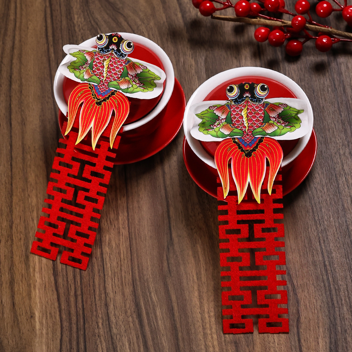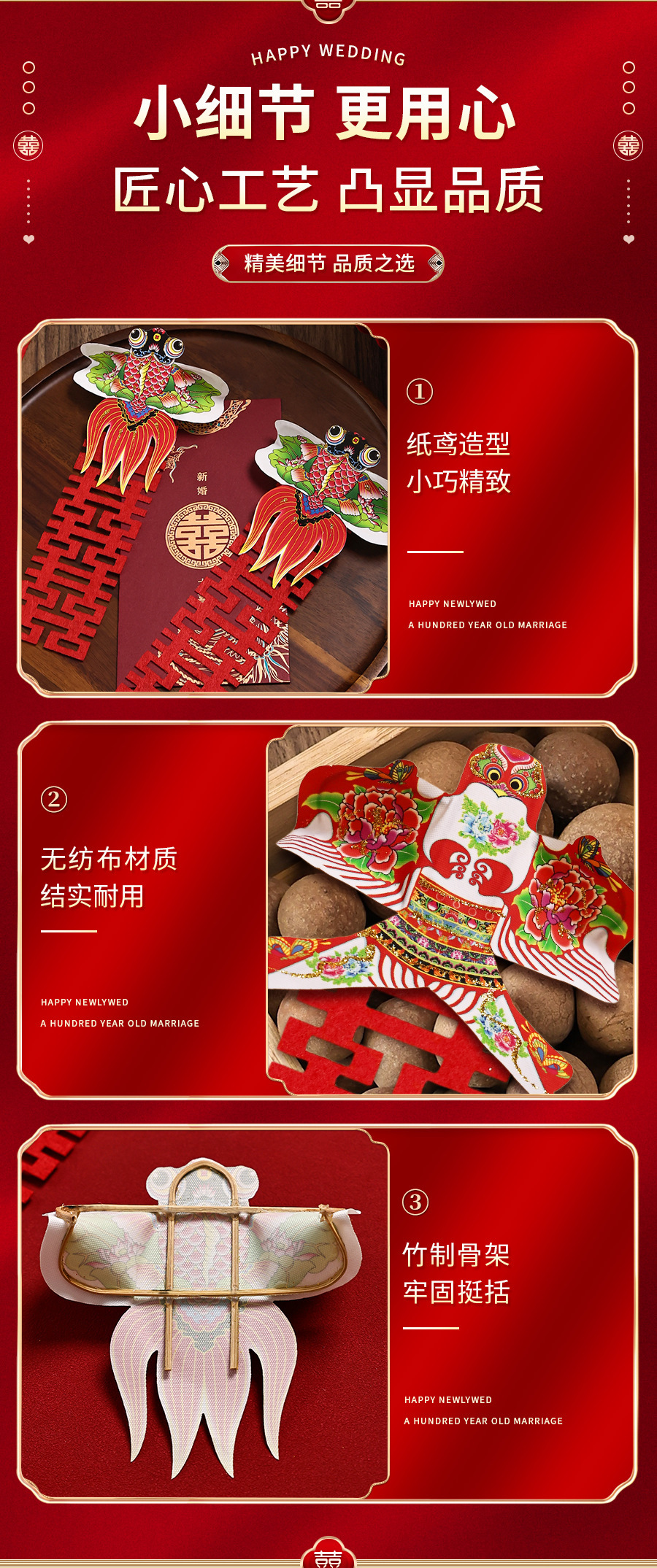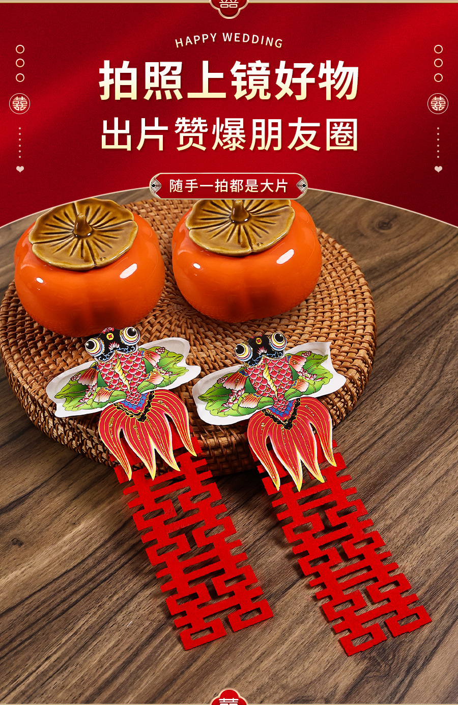 订婚喜宴新中式拍照道具婚房布置金鱼长条喜结婚纸鸢风筝摆件摆台