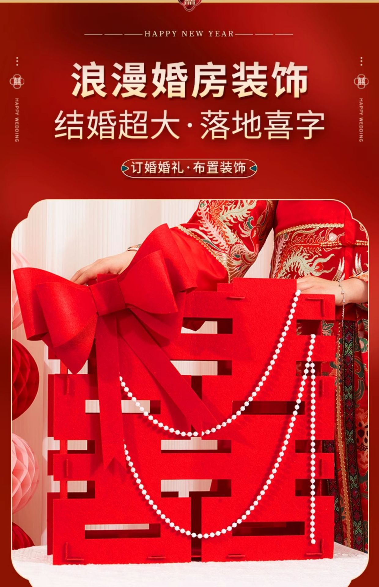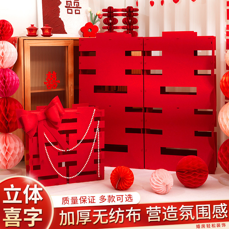 超大立体喜字落地摆件结婚客厅装饰婚礼婚房拍照道具订婚布置盒子