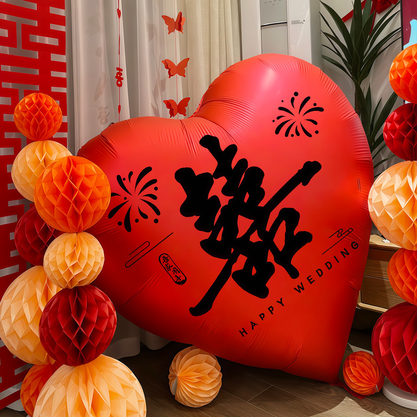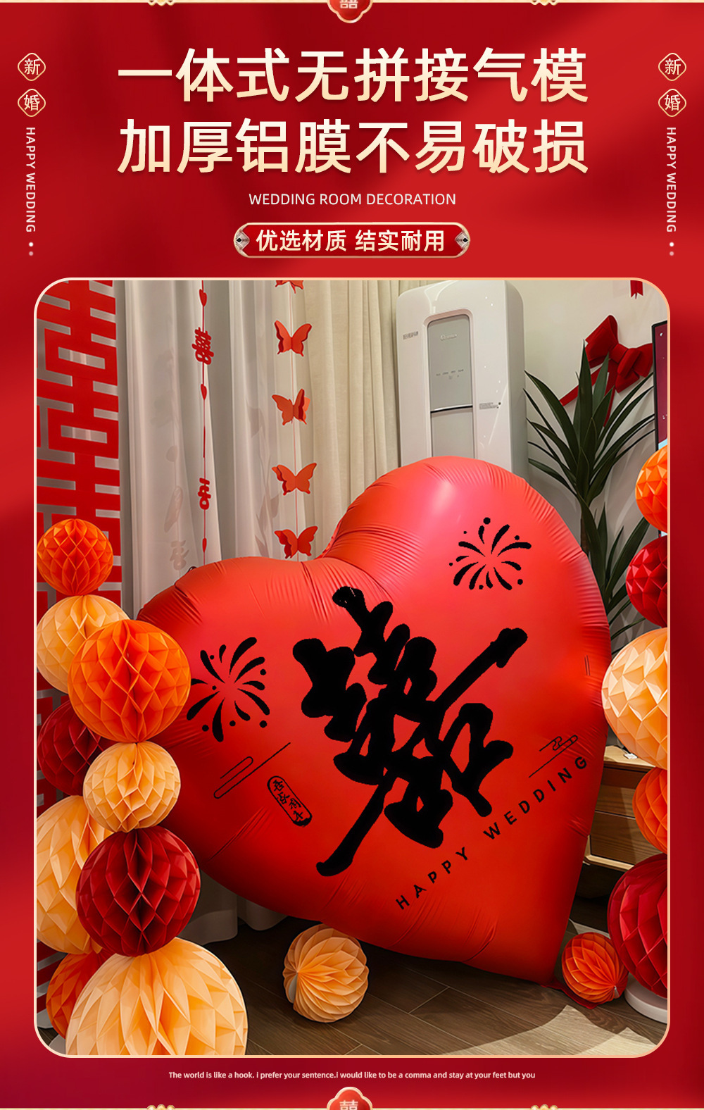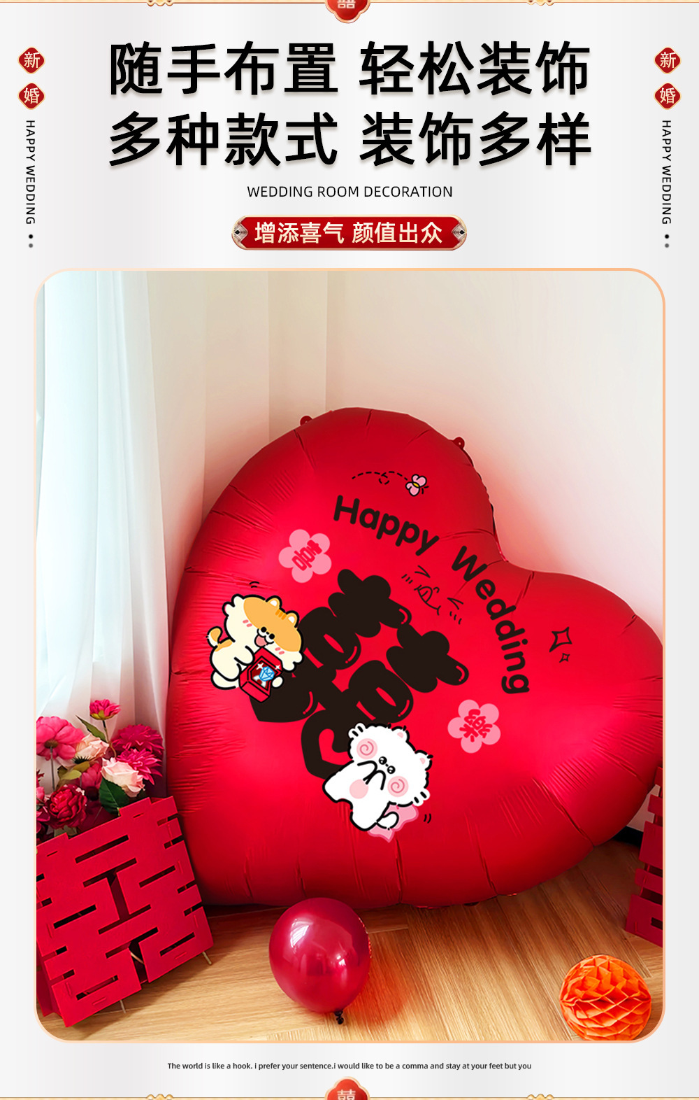 结婚氛围装饰心形红色气球订婚质感拍照道具婚礼超大爱心造型气球