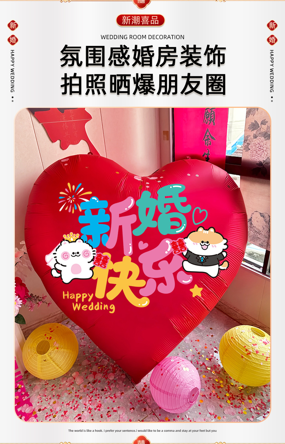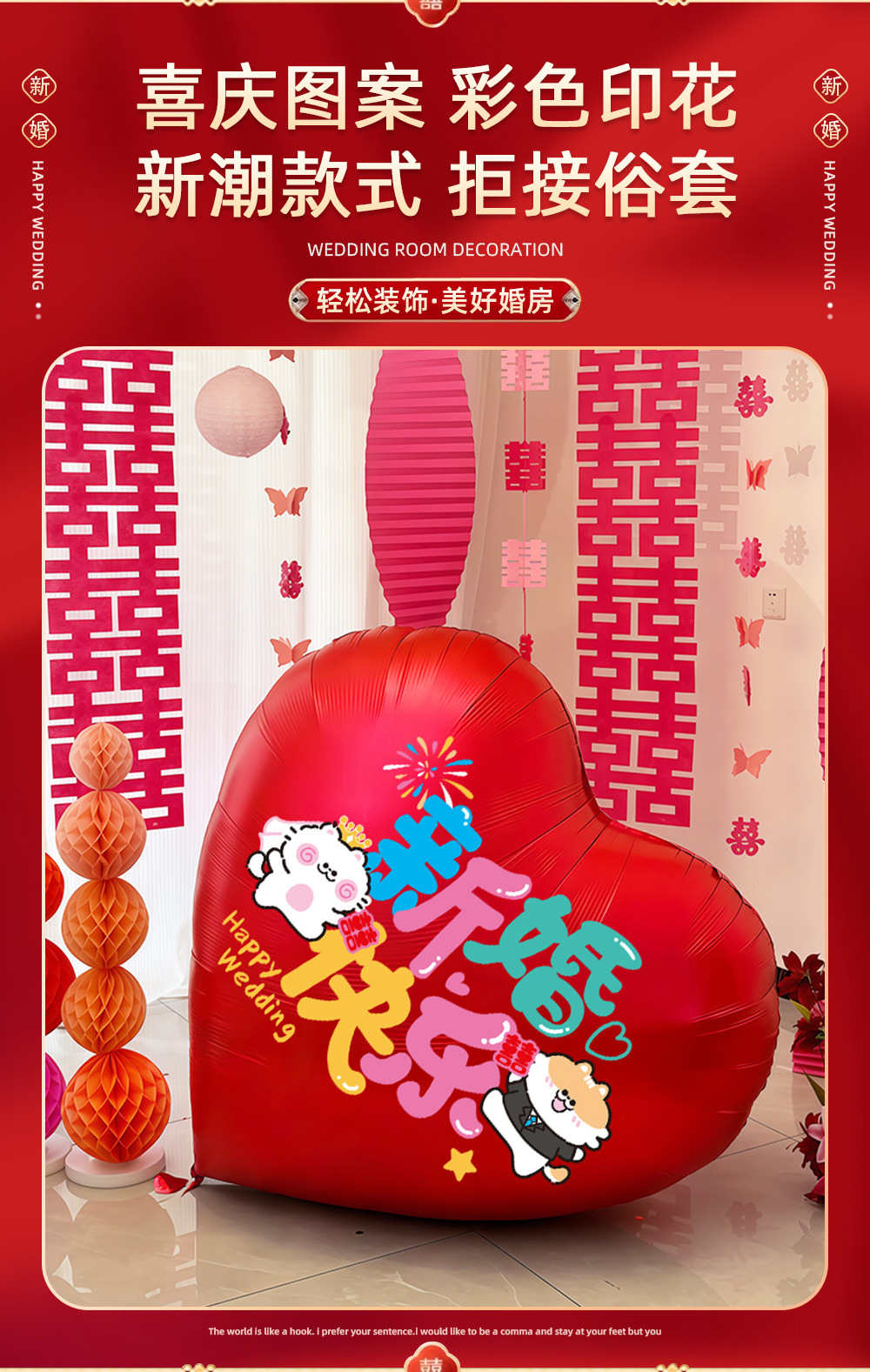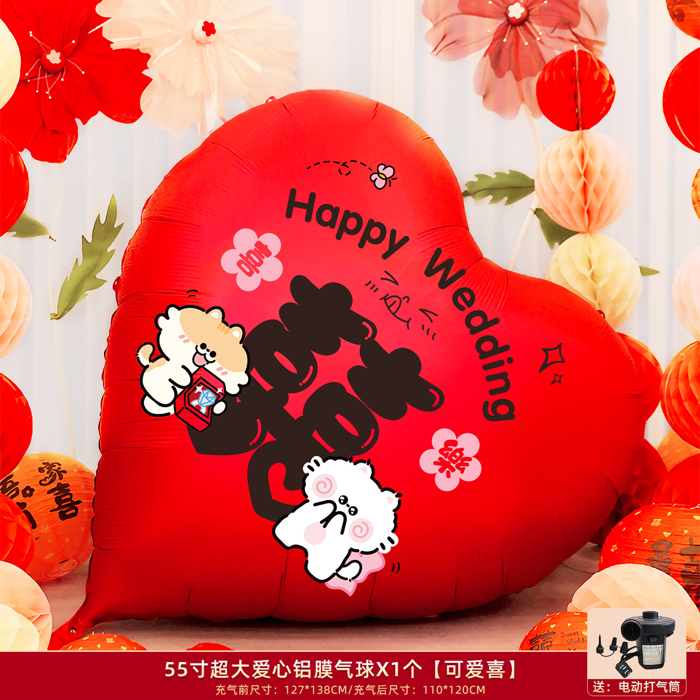 结婚氛围装饰心形红色气球订婚质感拍照道具婚礼超大爱心造型气球