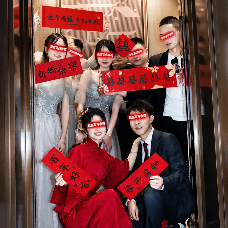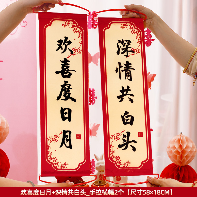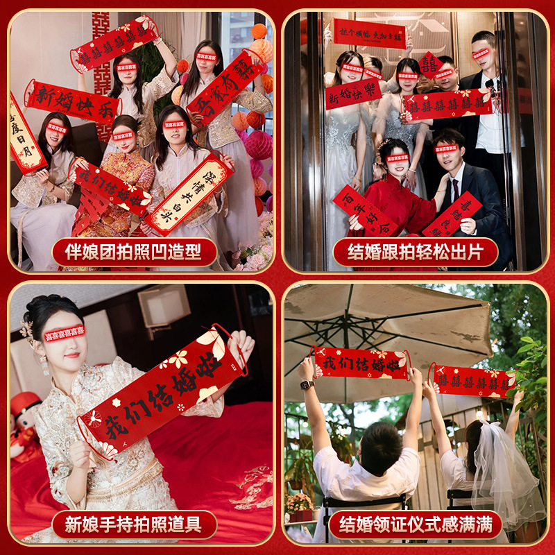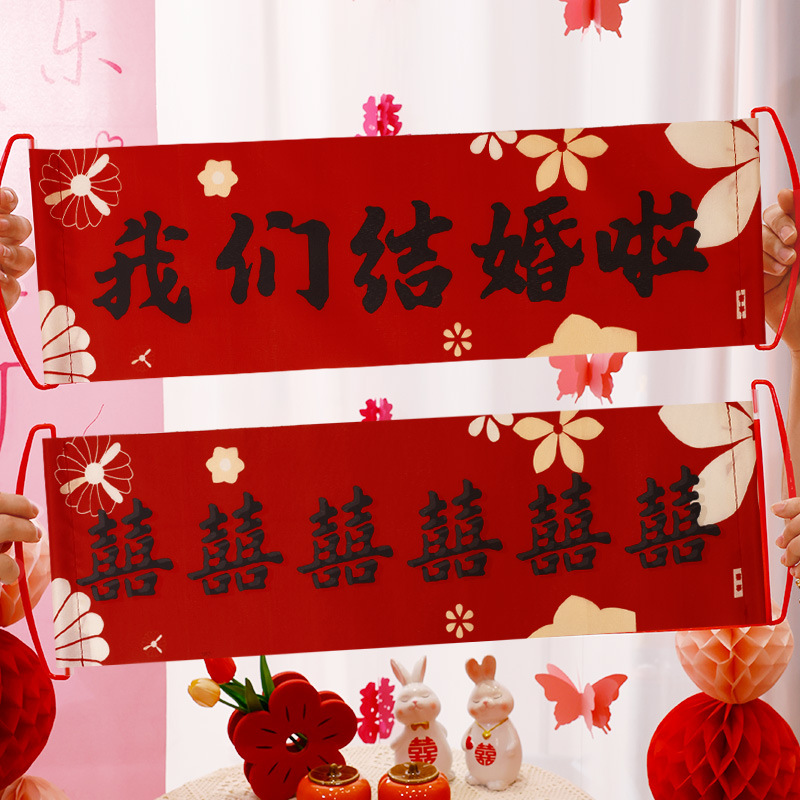 结婚手拉横幅晨袍拍照道具女方登记领证新婚快乐条幅婚礼摆拍装饰