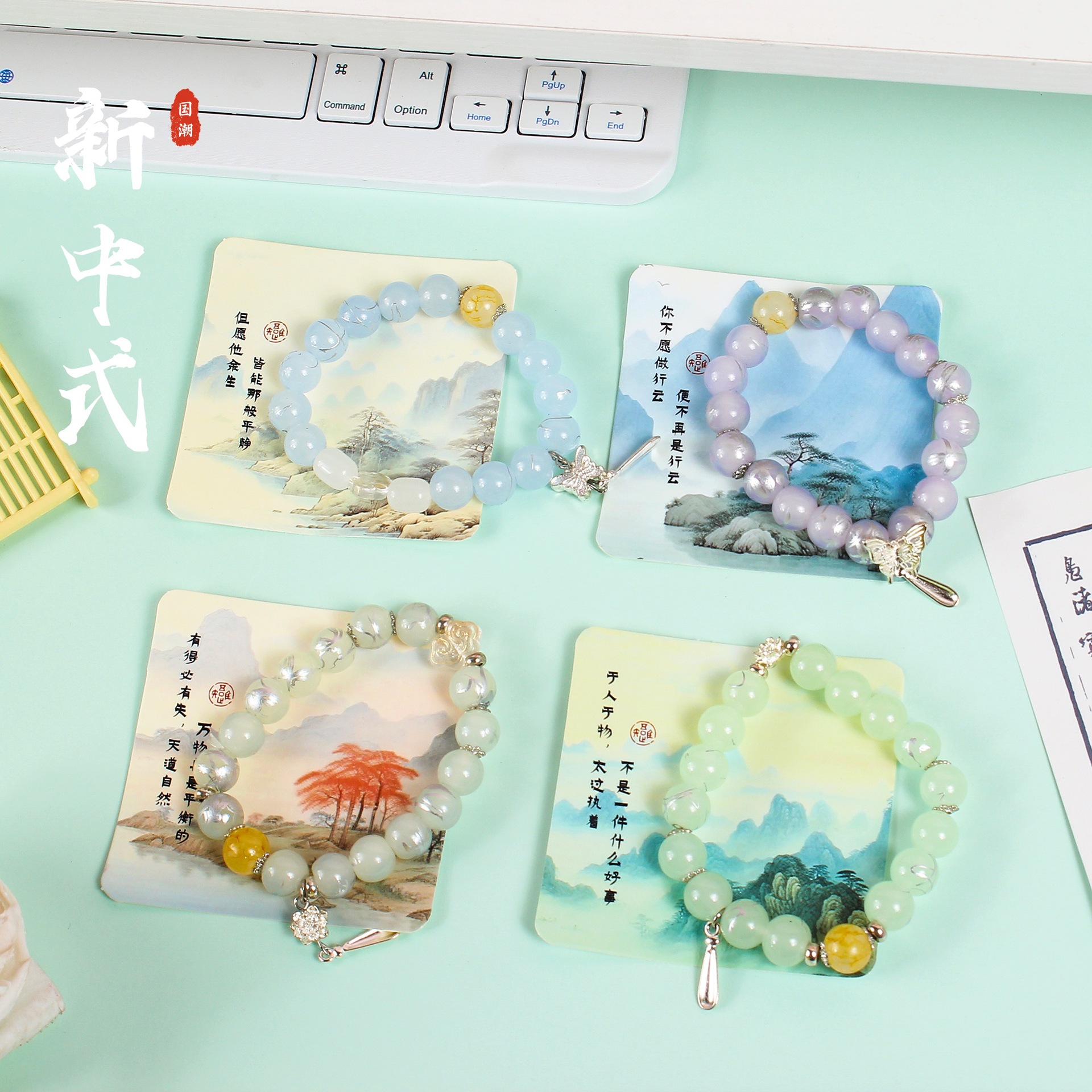 新中式国风手串破茧成蝶水晶琉璃蝴蝶手串高颜值手腕饰品手链