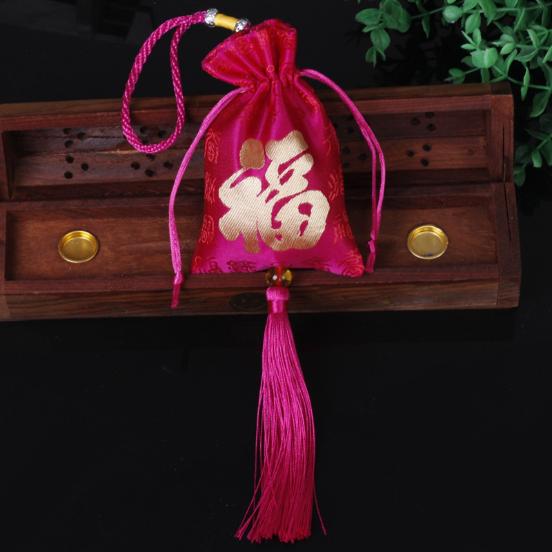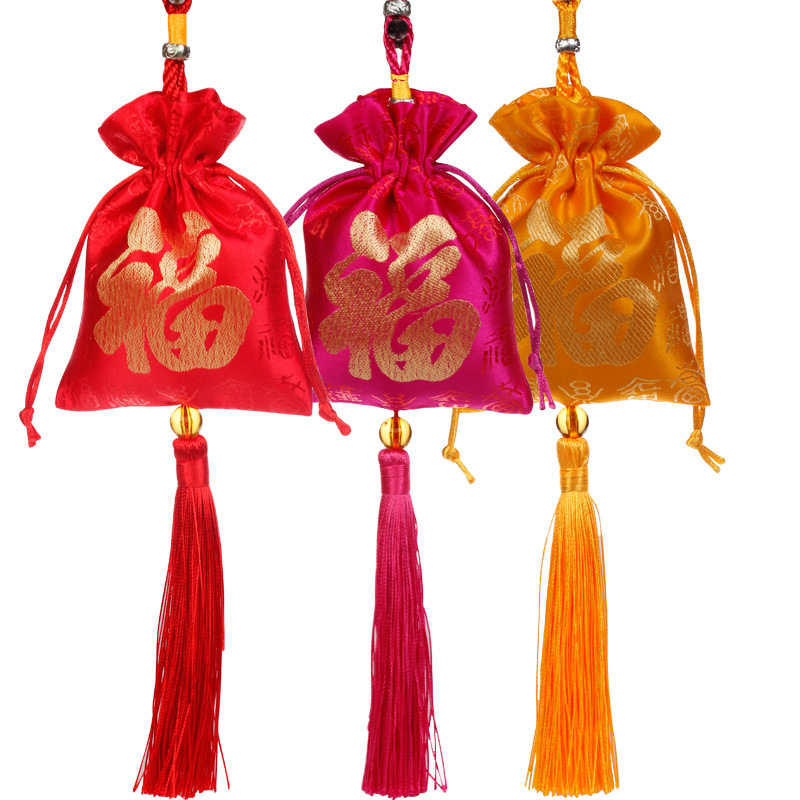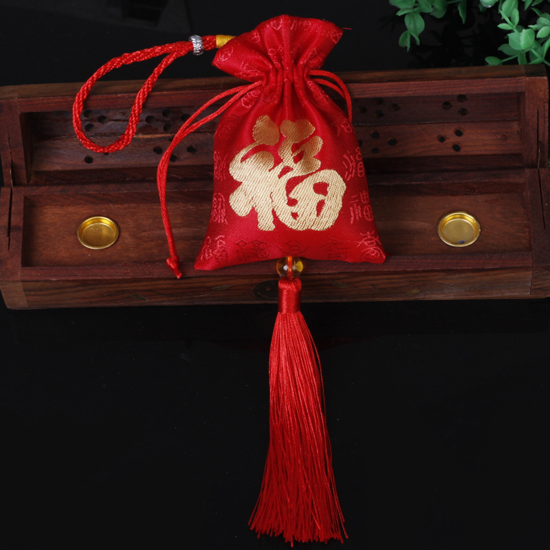端午节香囊空袋百福挂饰红色刺绣福袋挂件香袋流苏批发9*12