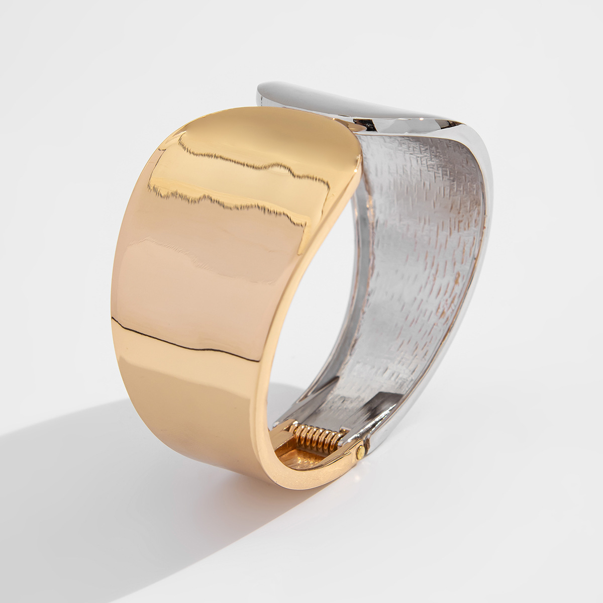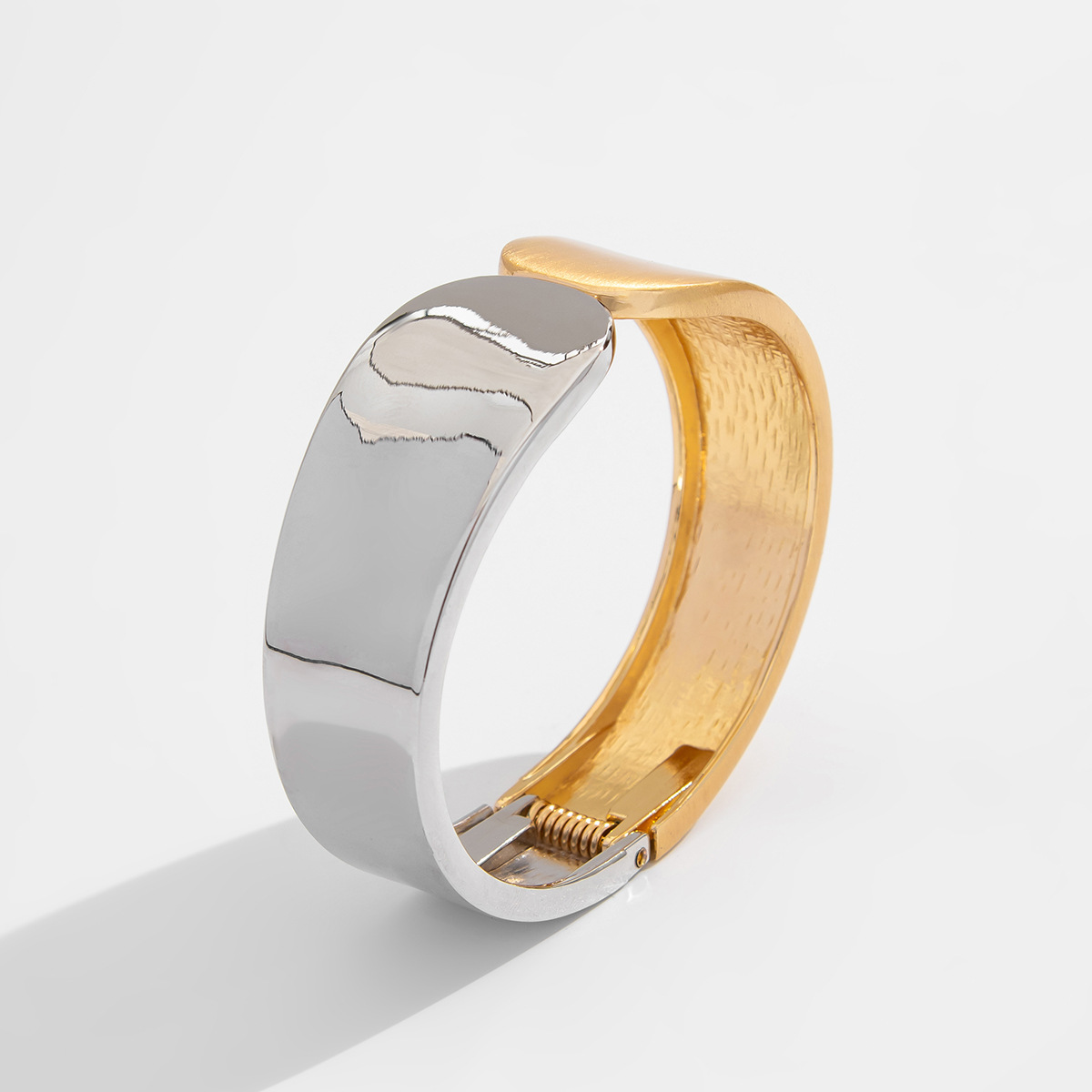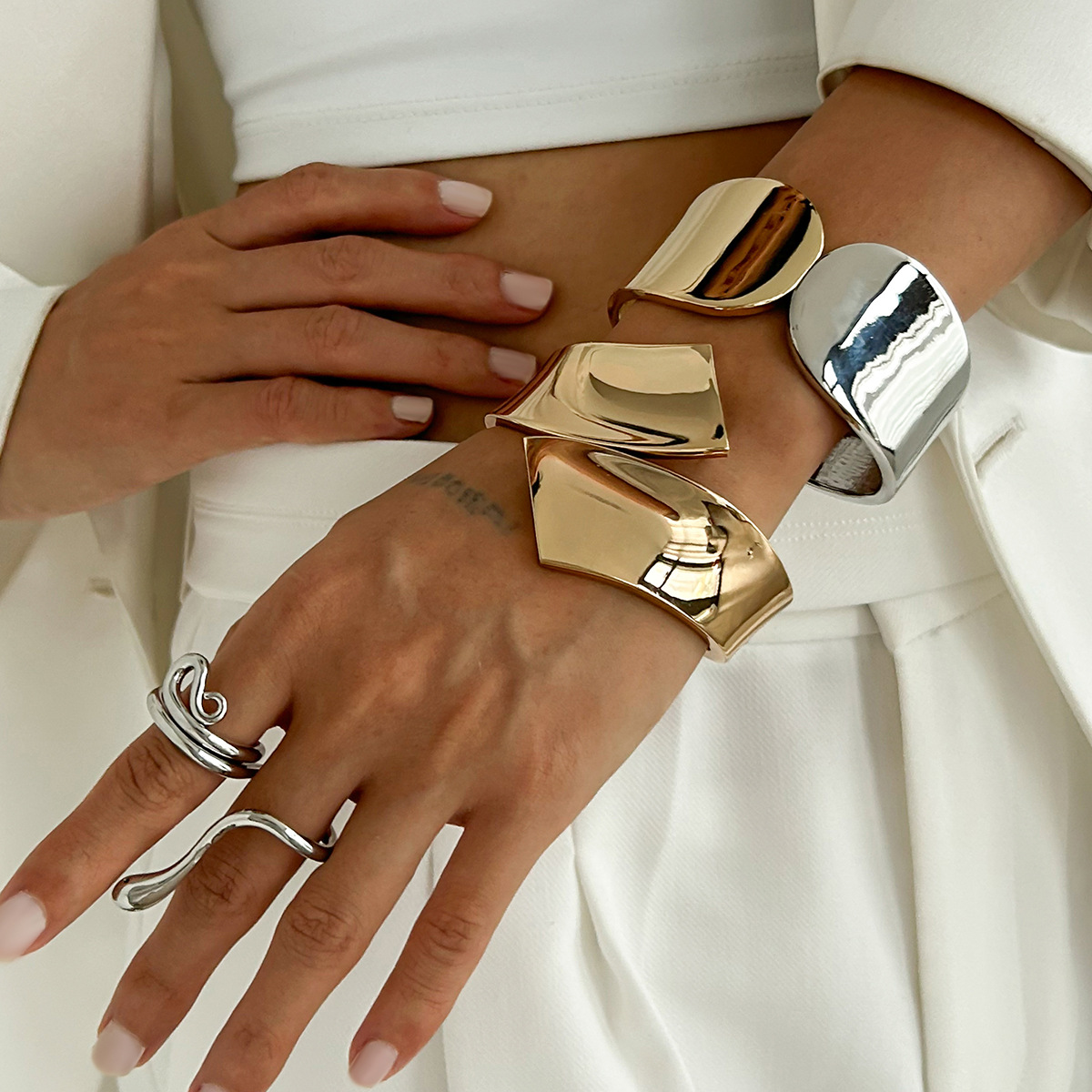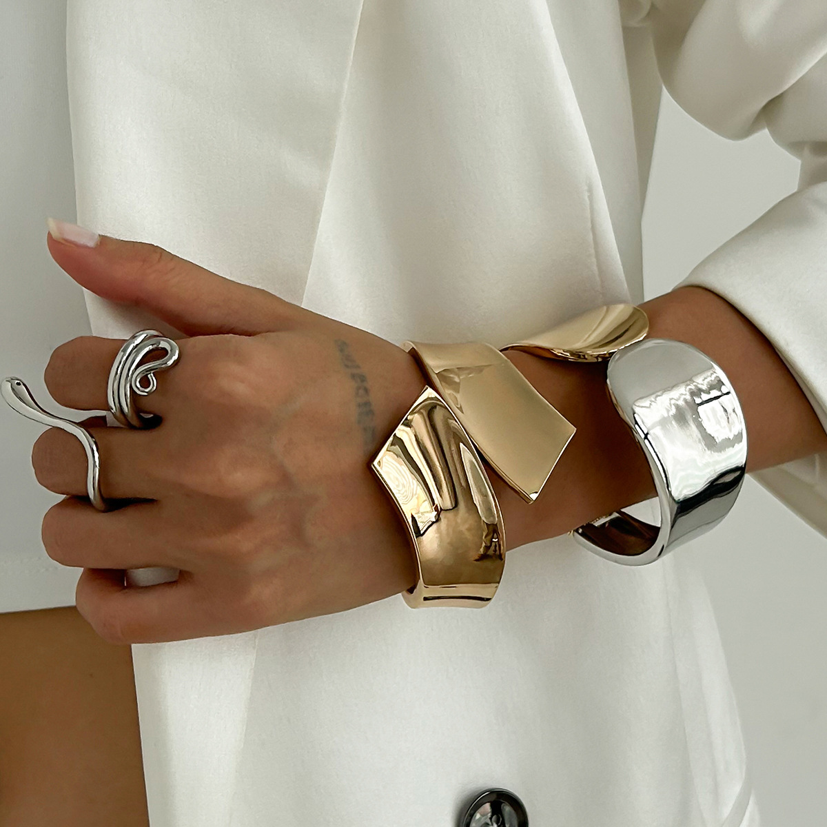 欧美跨境饰品 创意撞色ins几何开口手镯女 时尚合金光面缠绕手环