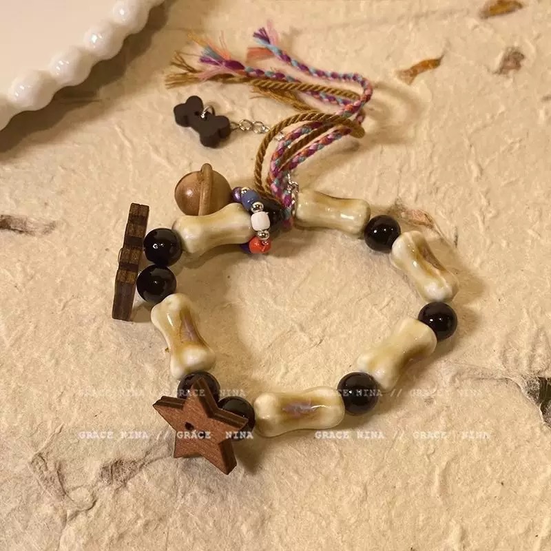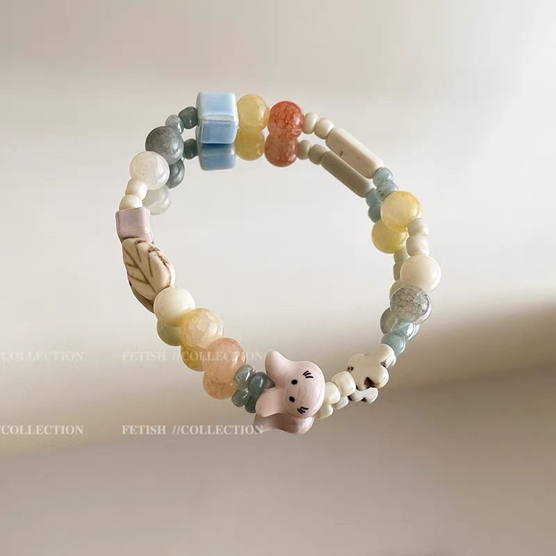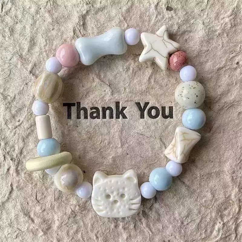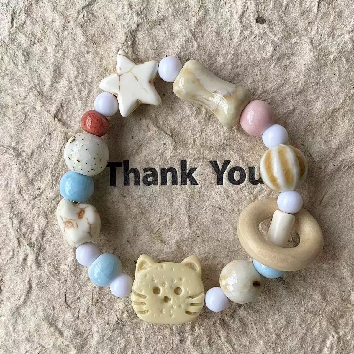 厂家直销~卡通可爱景德镇陶瓷手串饼干猫咪小众百搭学生闺蜜批发