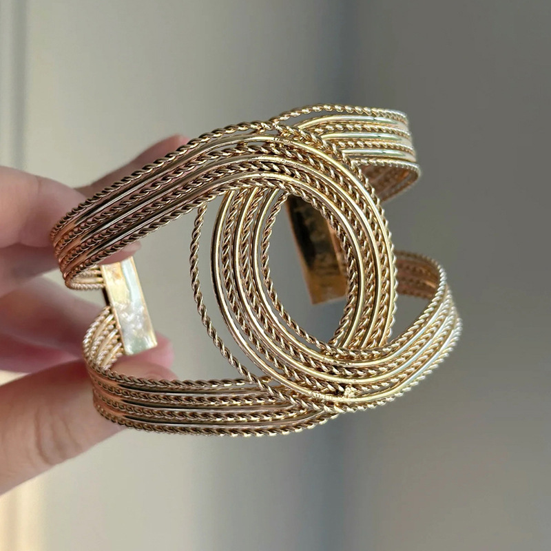 欧美金属圆形开口手镯小众时尚简约设计手环个性百搭气质手饰批发