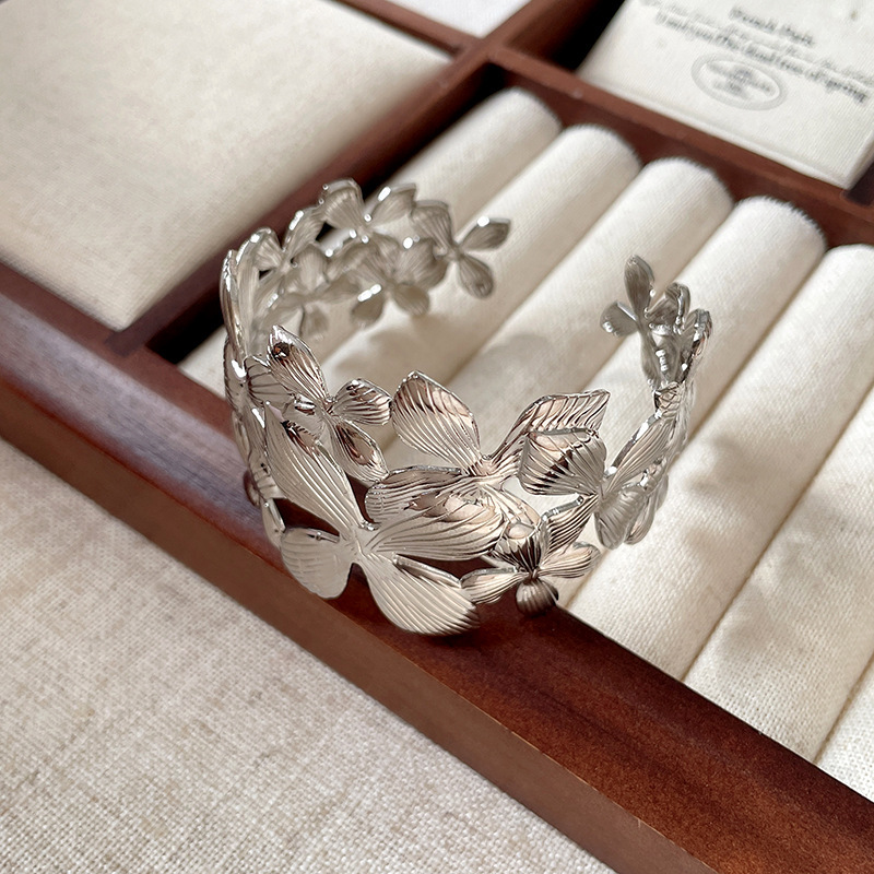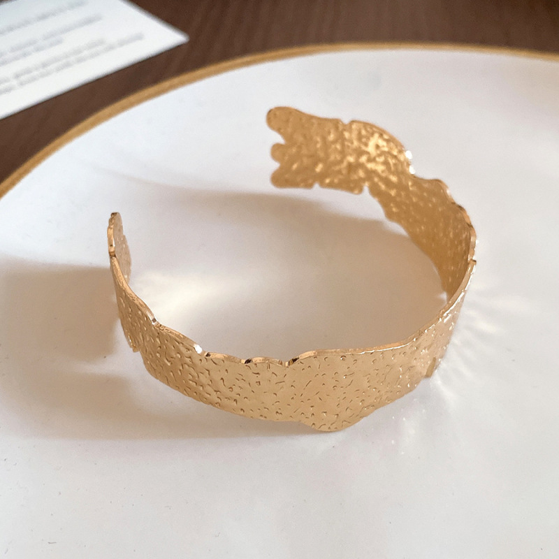 不锈钢纹路几何开口手镯轻奢高级感手环跨境重工时尚通勤手饰批发