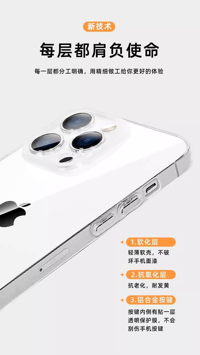 超薄透明金属按键拜耳软壳适用iPhone17promax手机壳16华为小米15