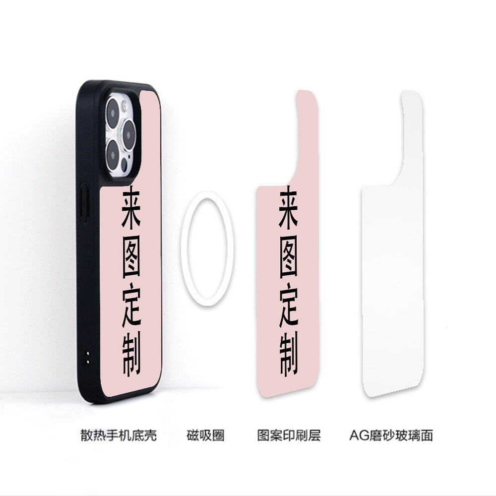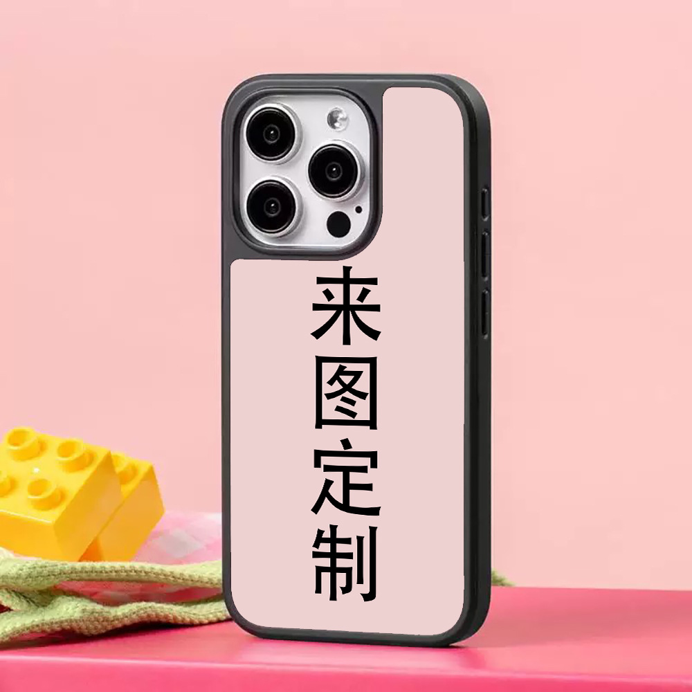 来图定 制简约黑框磨砂玻璃适用苹果16pro手机壳15pro磁吸magsafe