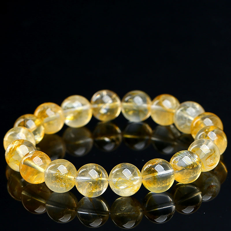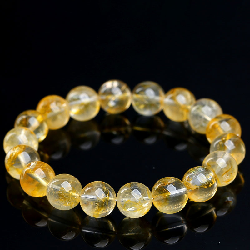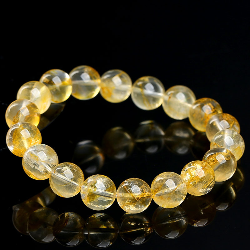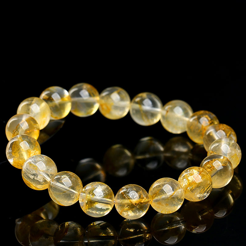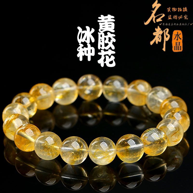 名都水晶 天然冰种黄胶花手链 时尚俏色黄胶花圆珠手串散珠批发