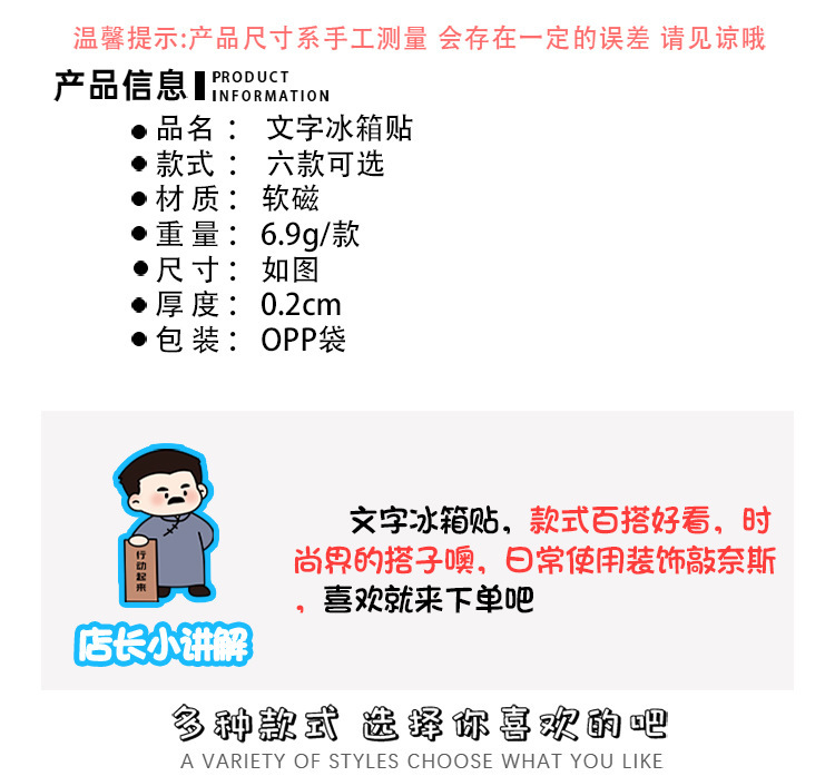励志文字磁性冰箱贴卡通装饰贴高颜值创意磁吸冰箱装饰小礼品批发