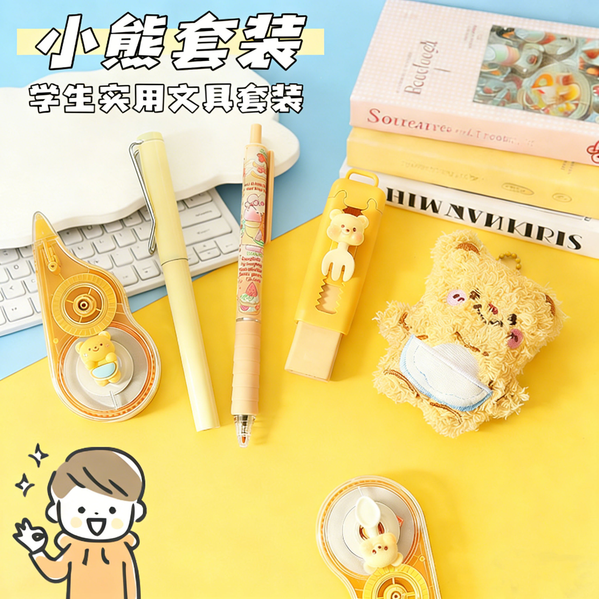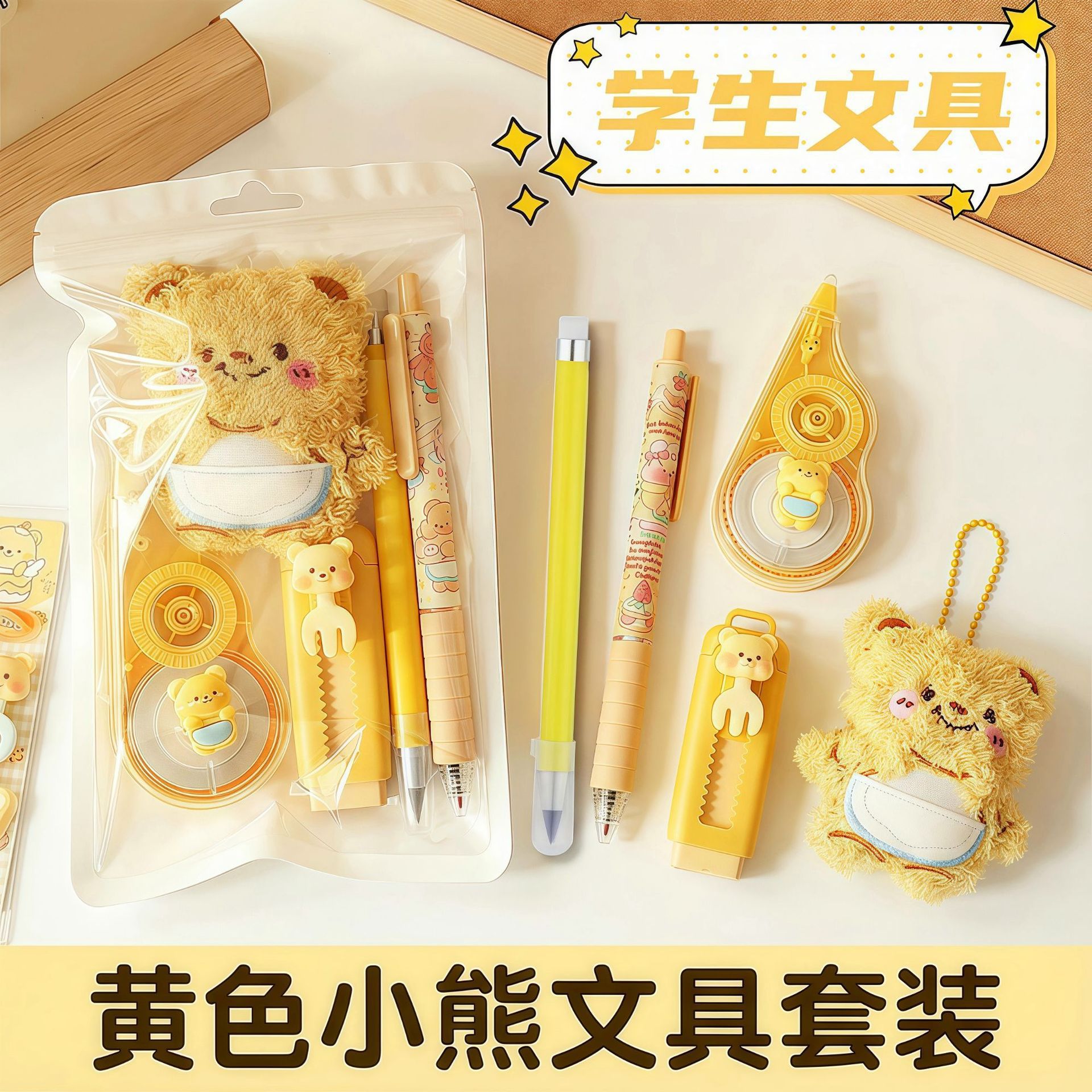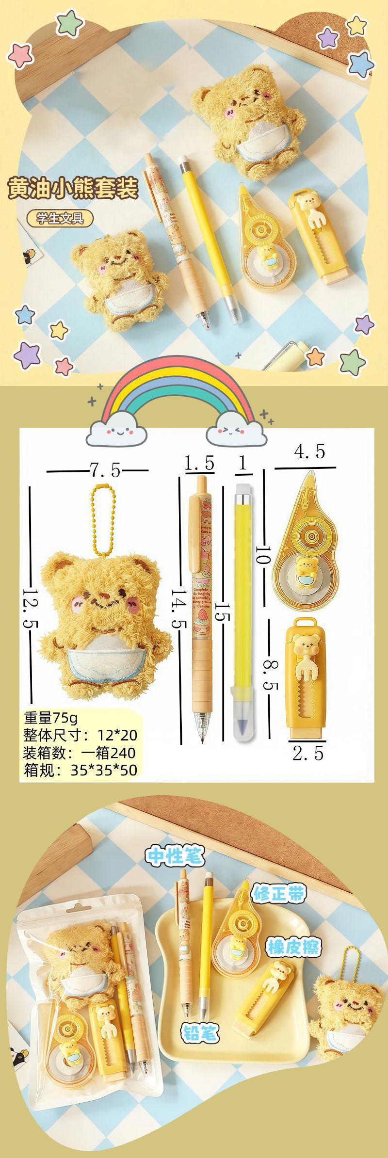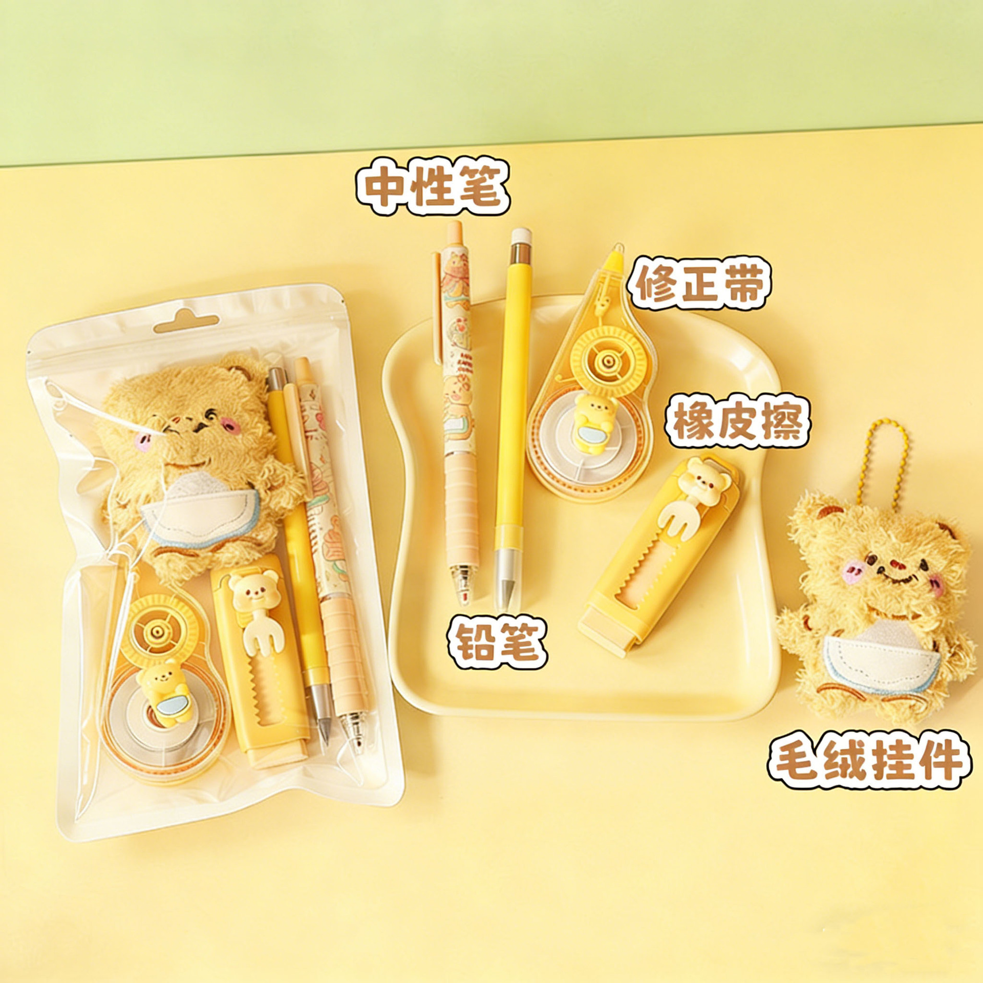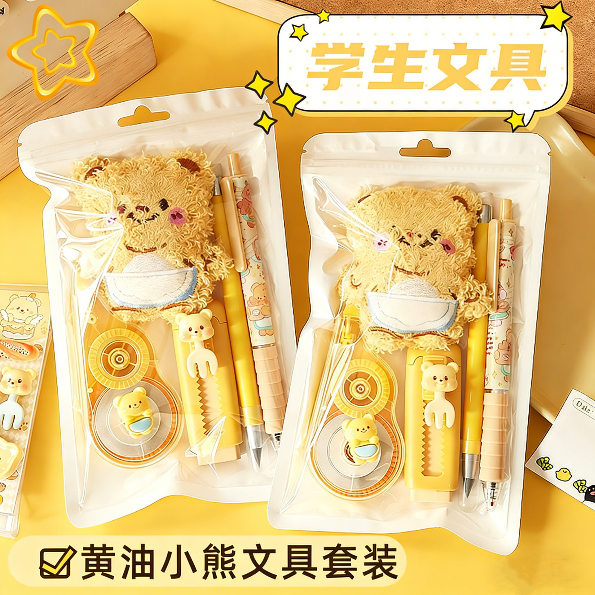 黄油小熊文具套装学习用品大礼包跨境热销学生伴手礼六一礼物批发