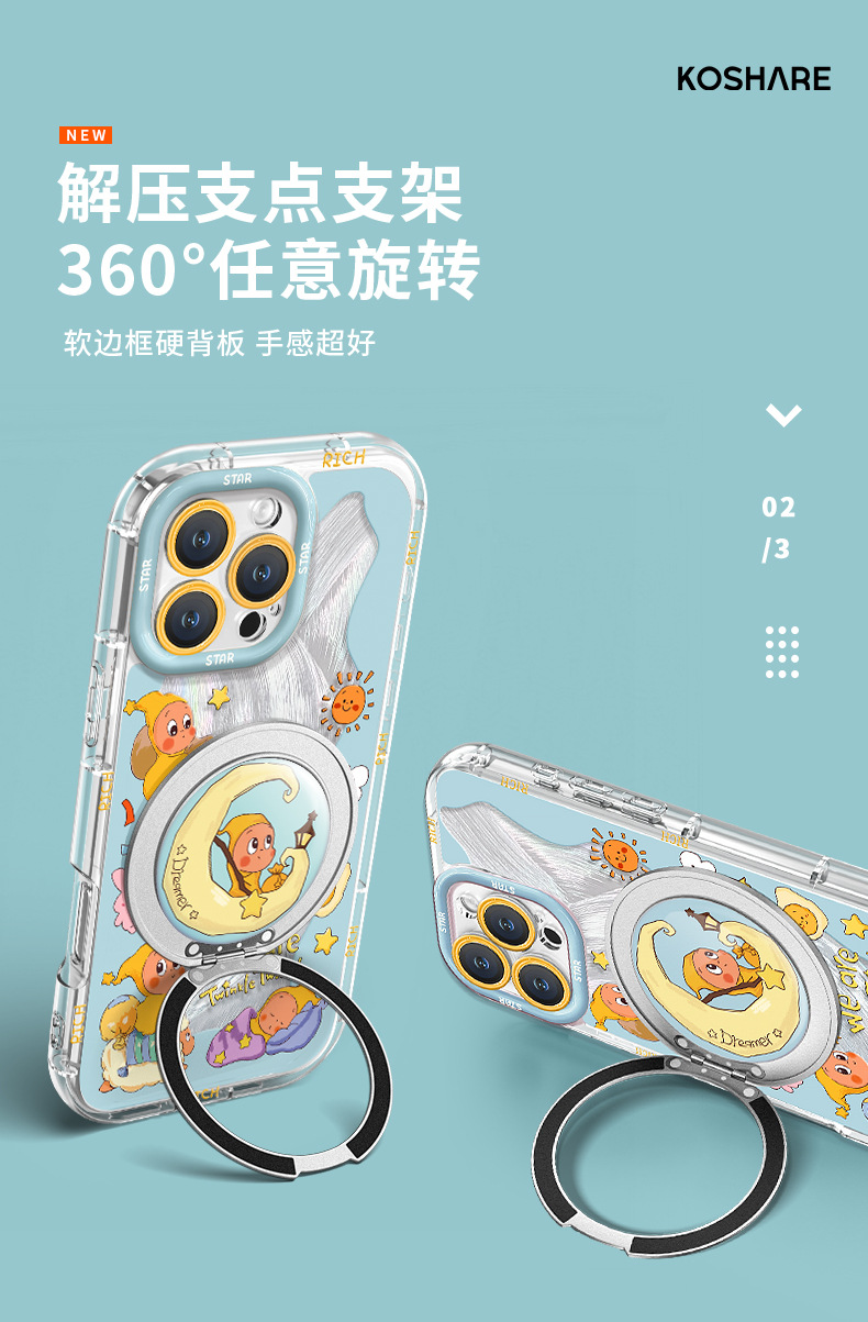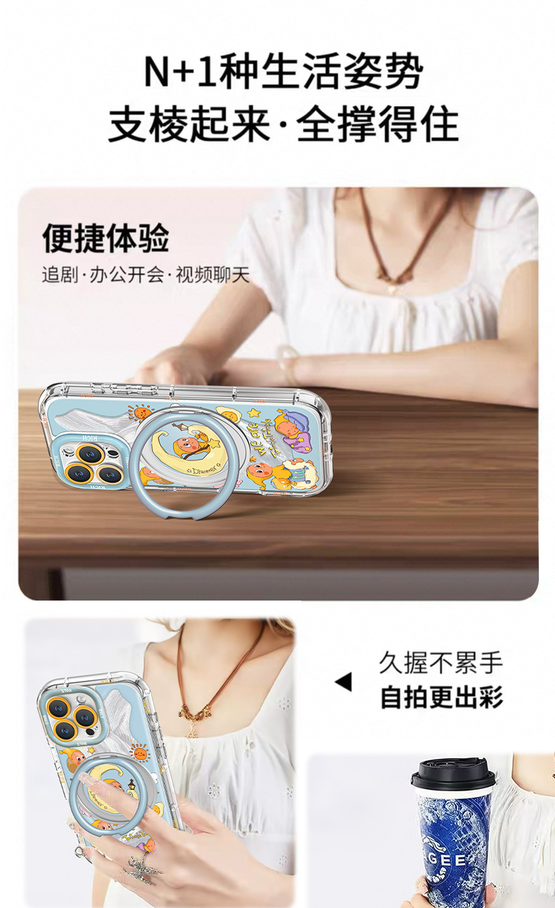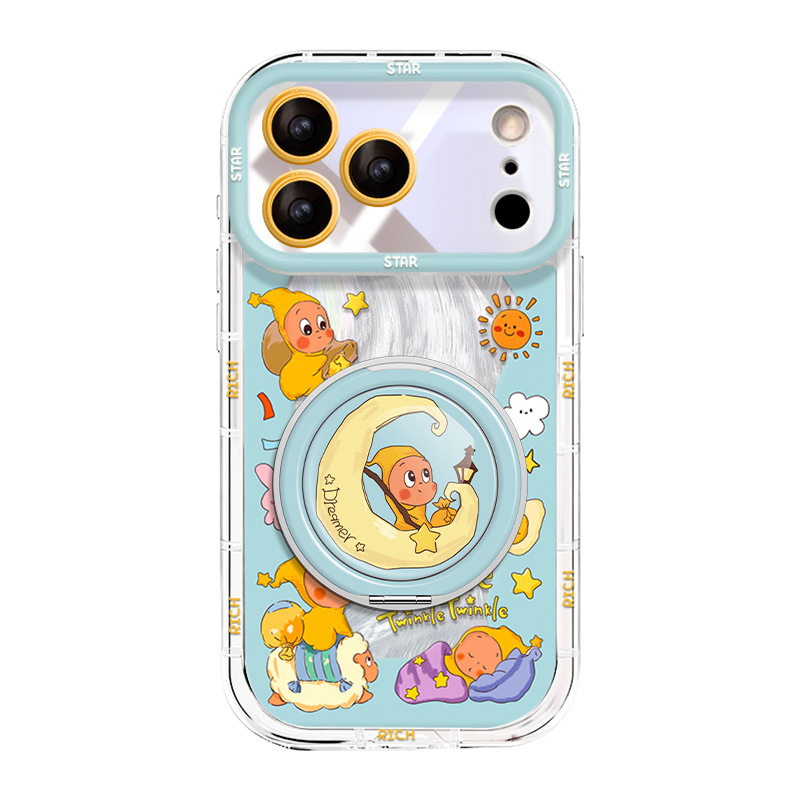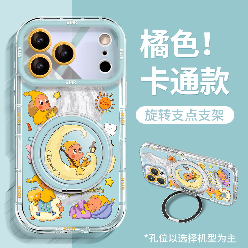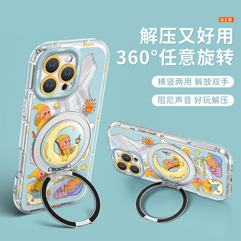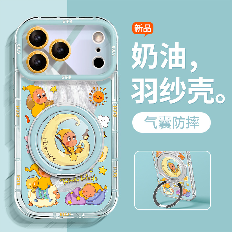 可爱卡通适用苹果17promax手机壳iphone15羽纱16旋转支架14华为13