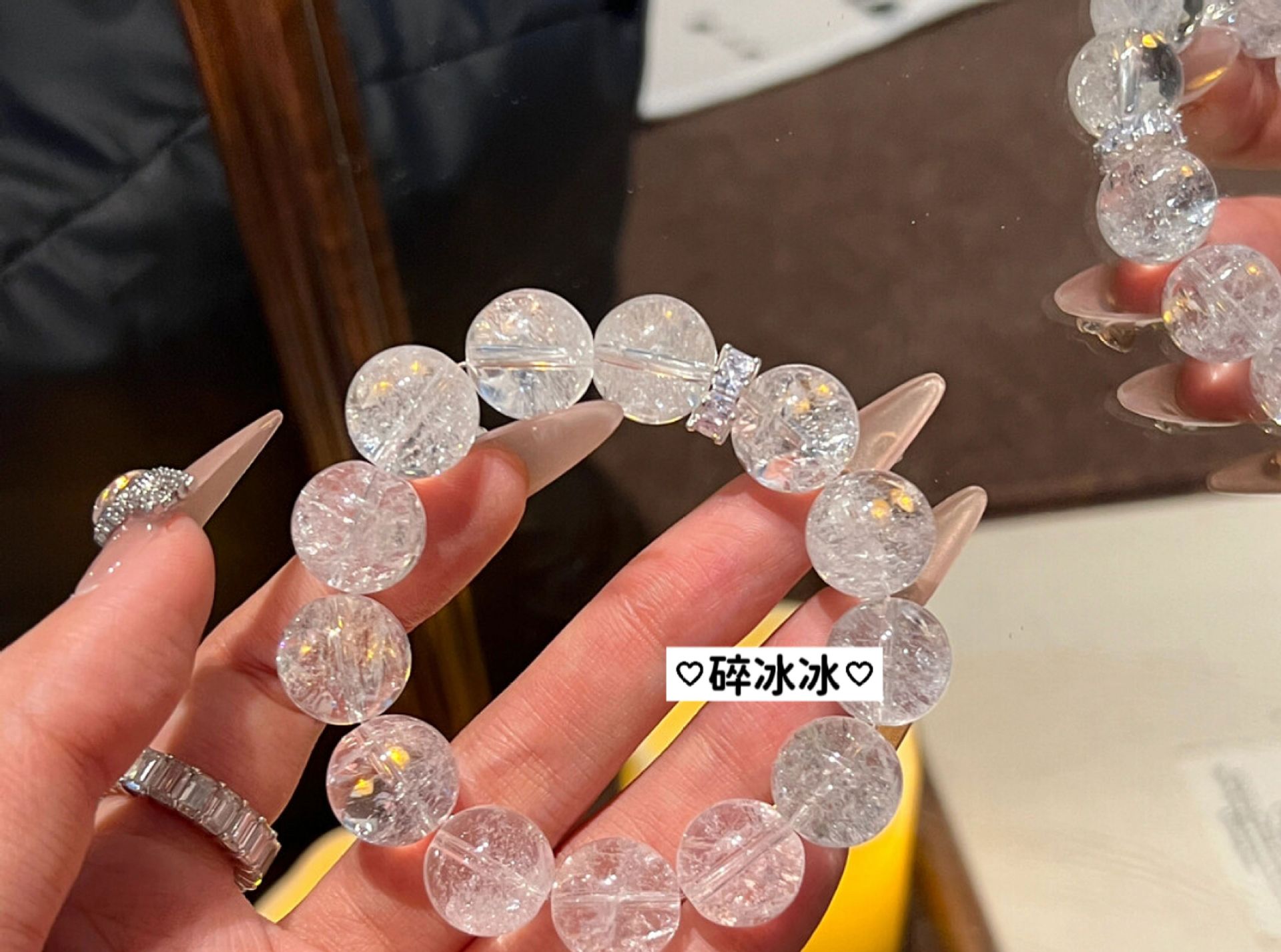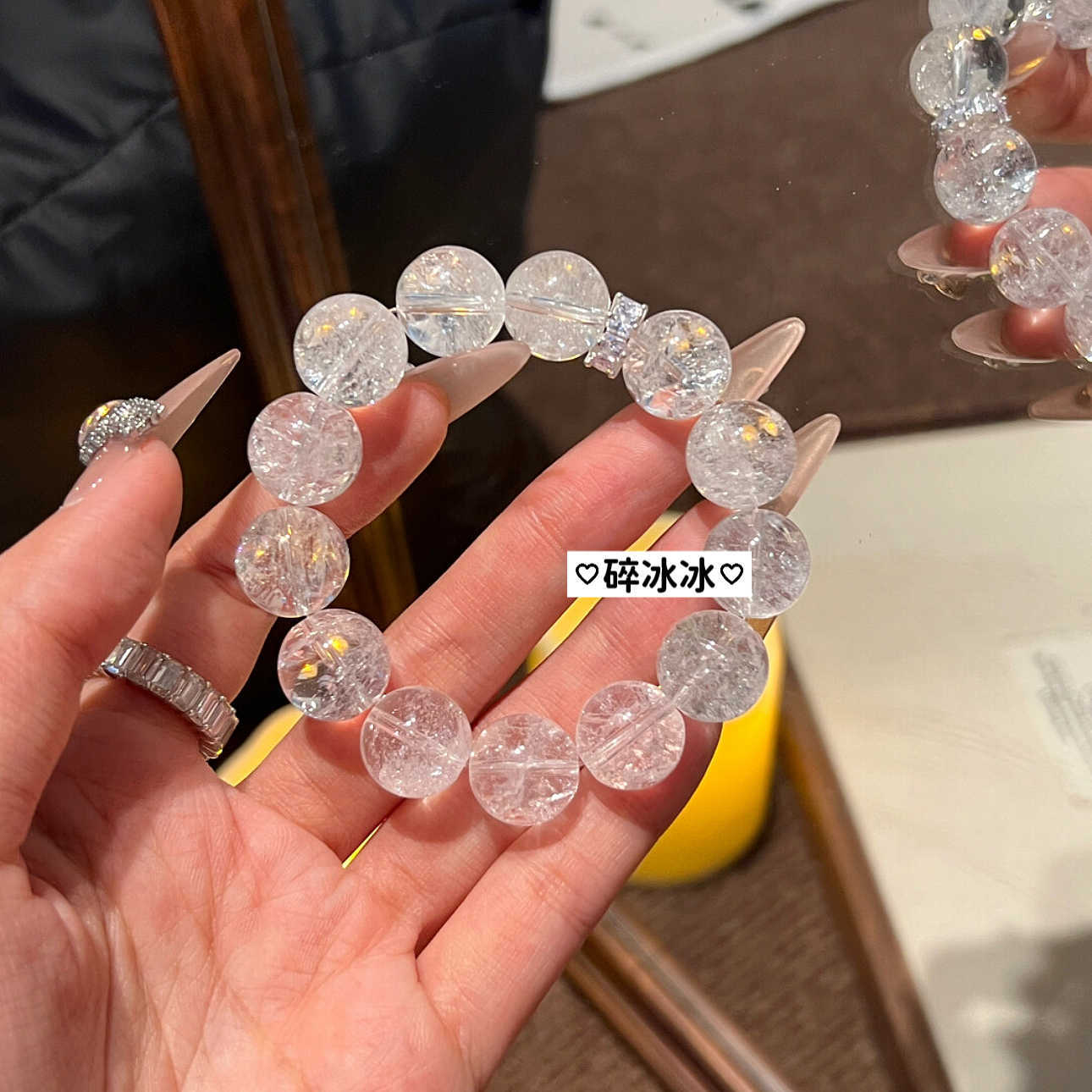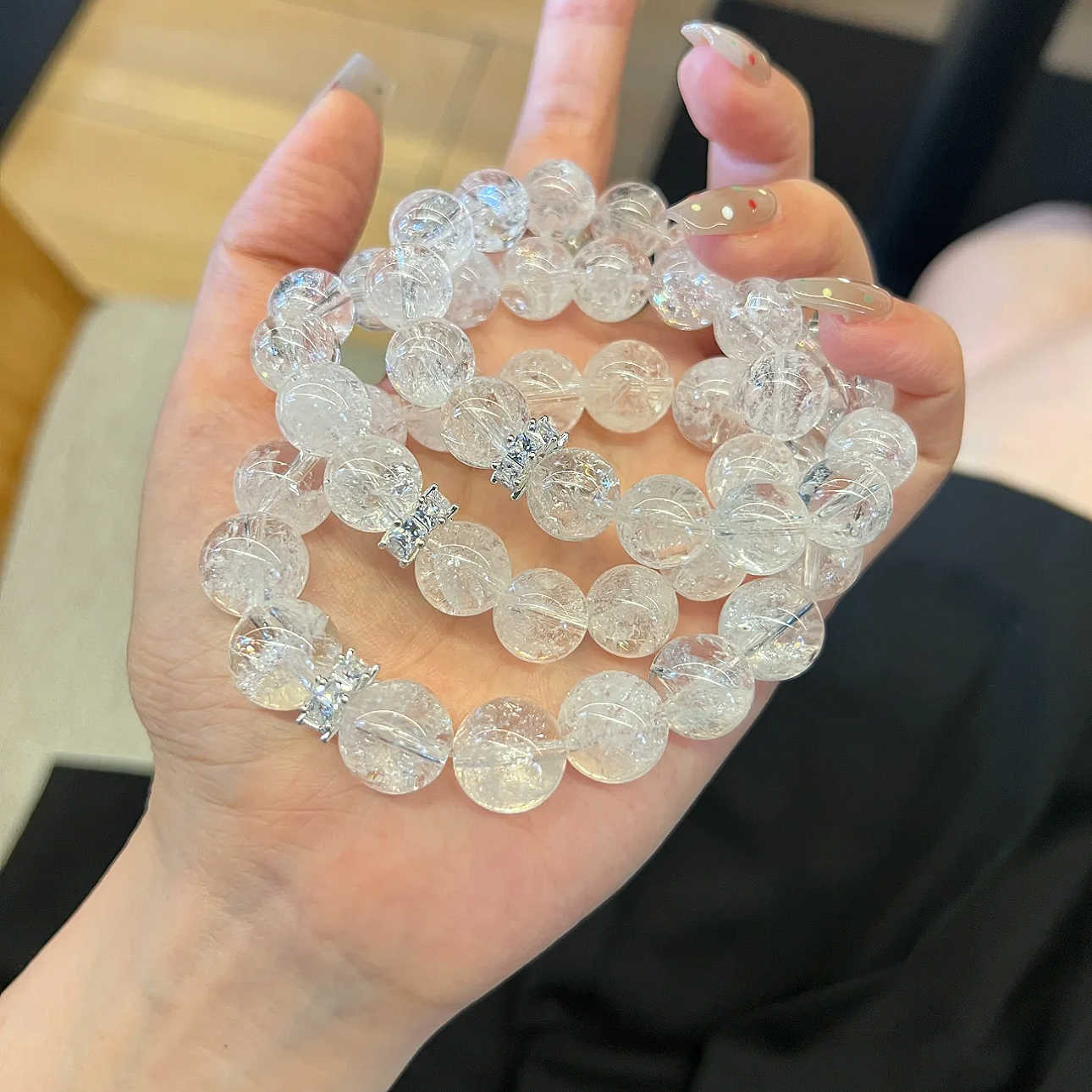 碎冰冰手串女高级感仿白水晶白阿赛斯特莱手链碎冰冰diy散珠圆珠