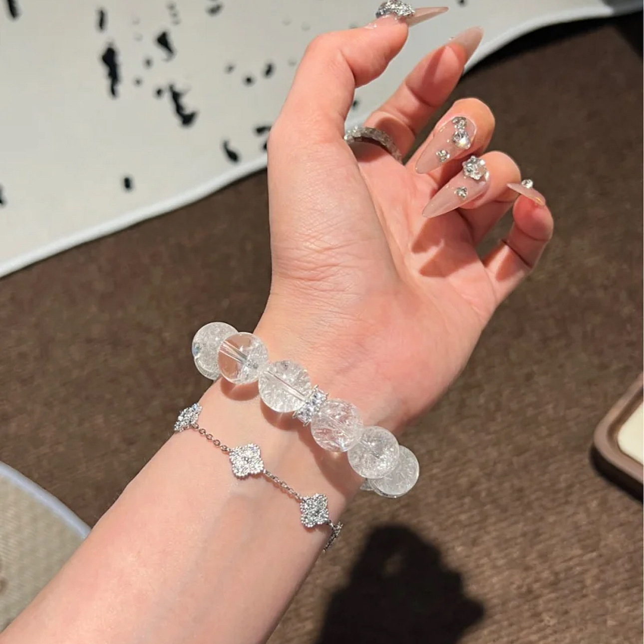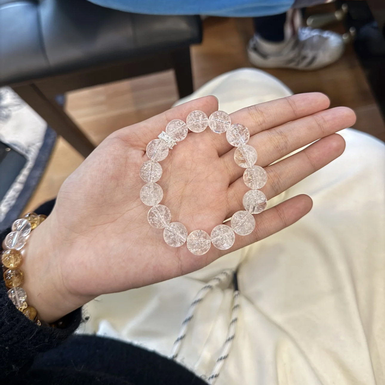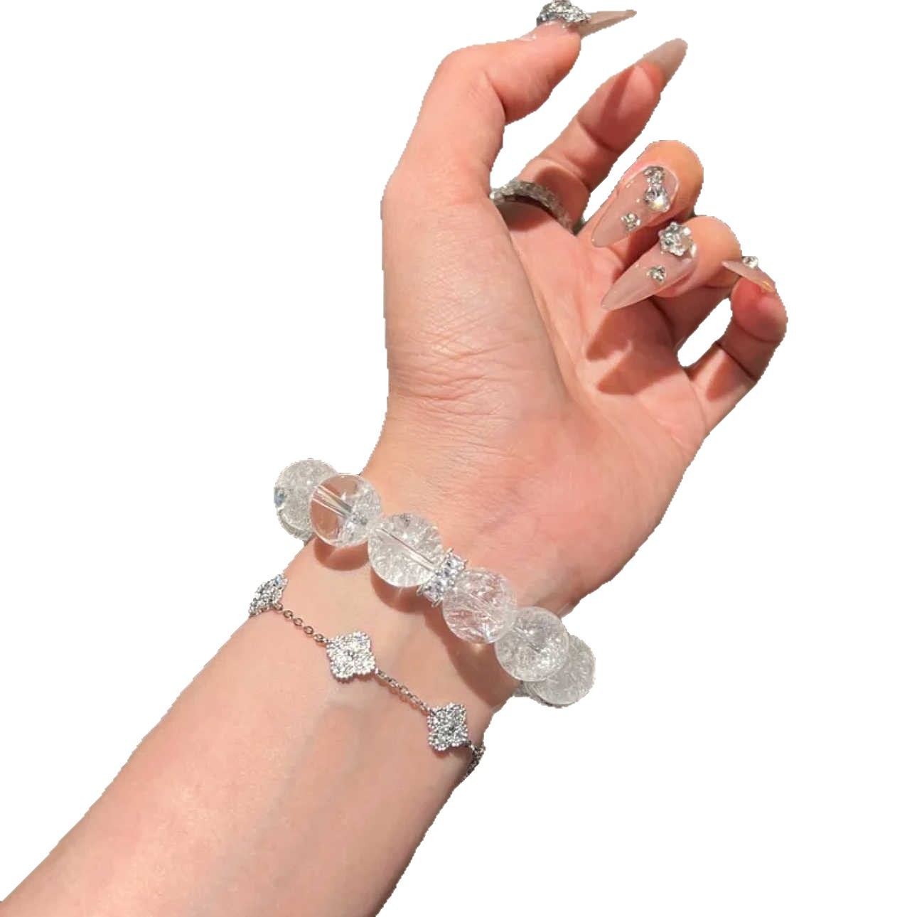 碎冰冰手串女高级感仿白水晶白阿赛斯特莱手链碎冰冰diy散珠圆珠