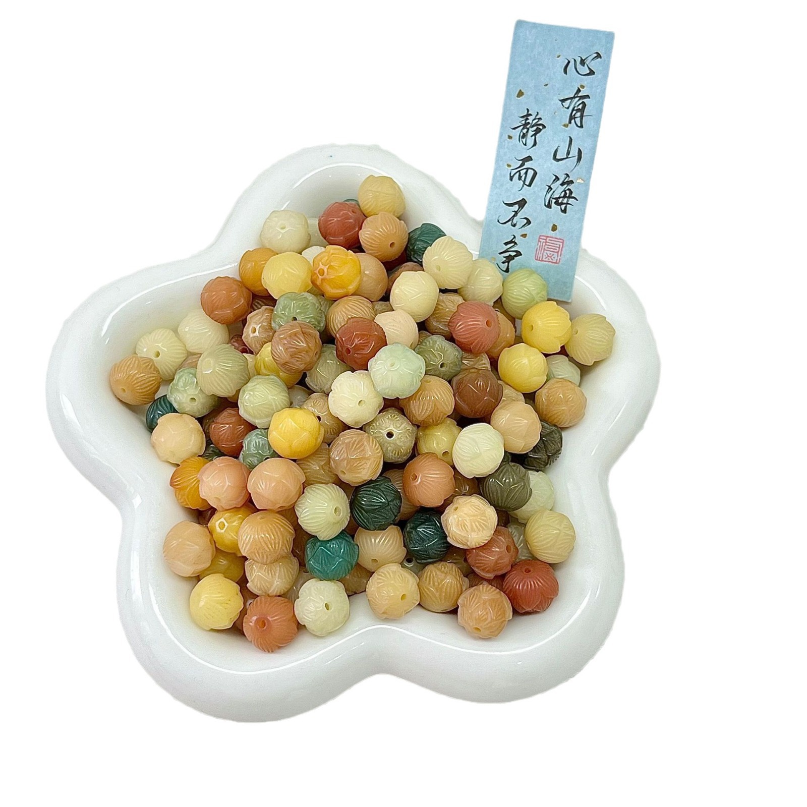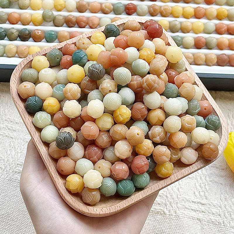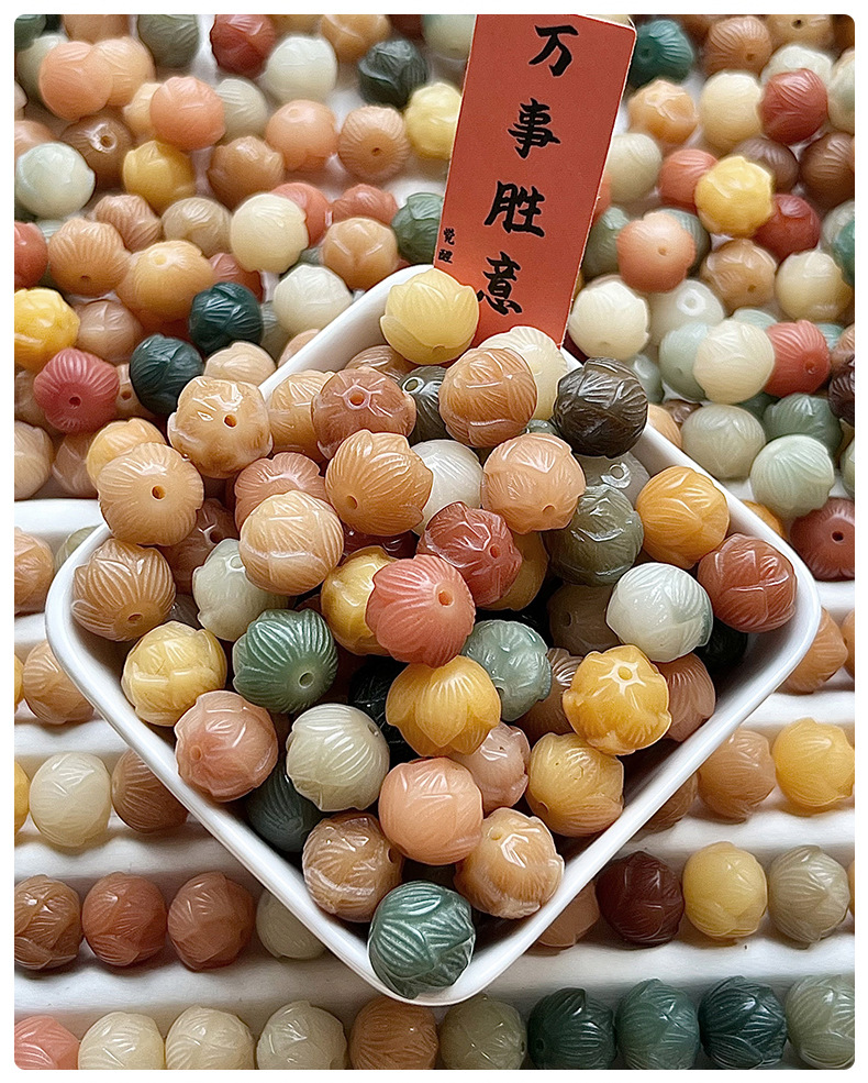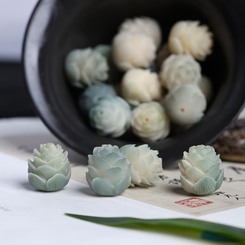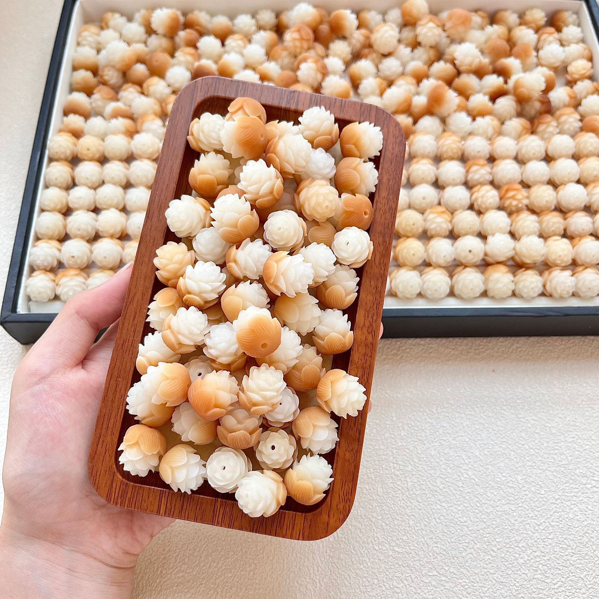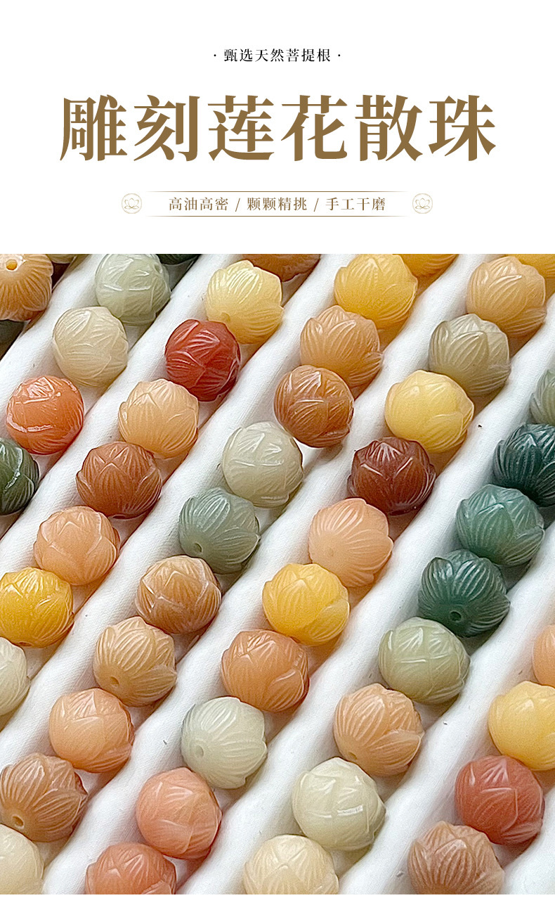 天然白玉菩提根雕刻莲花散珠按斤批发文玩佛珠念珠手串diy配饰