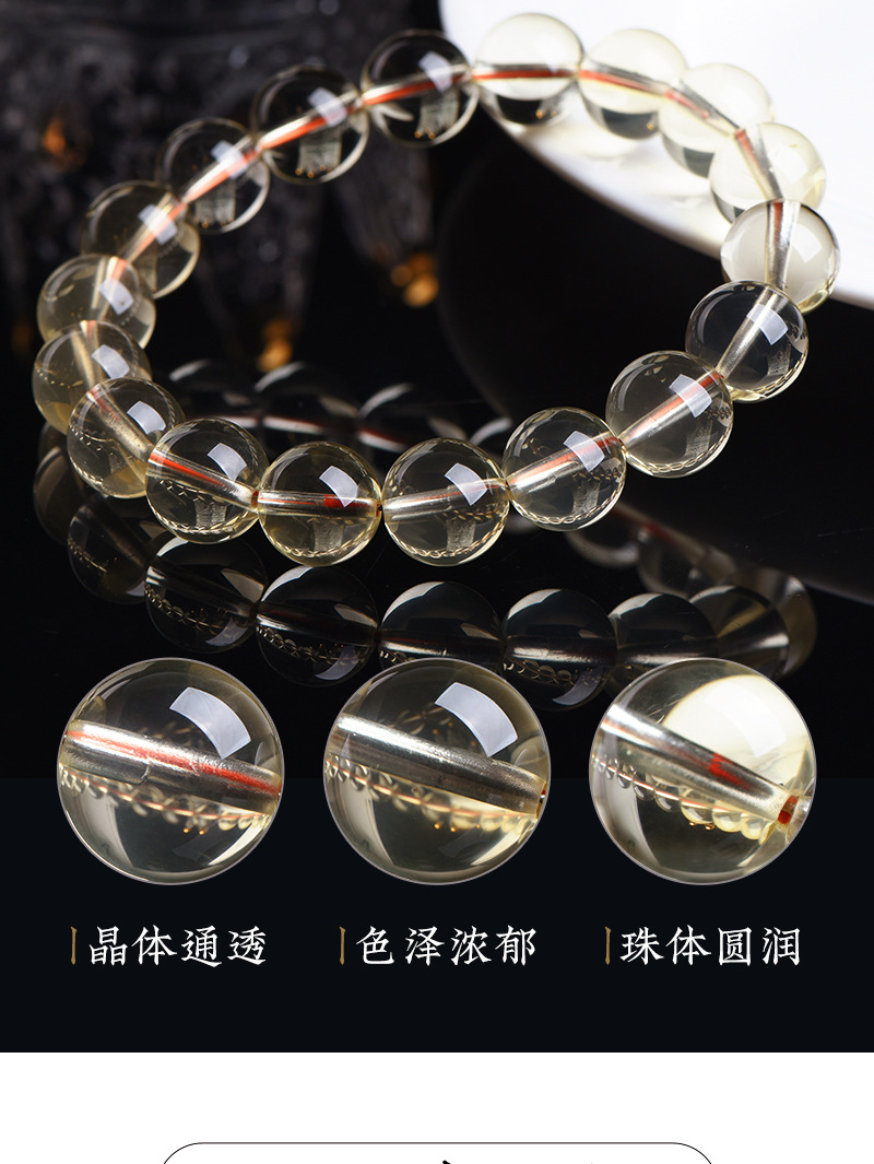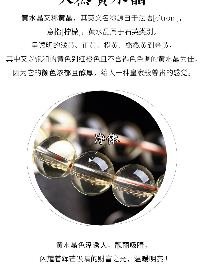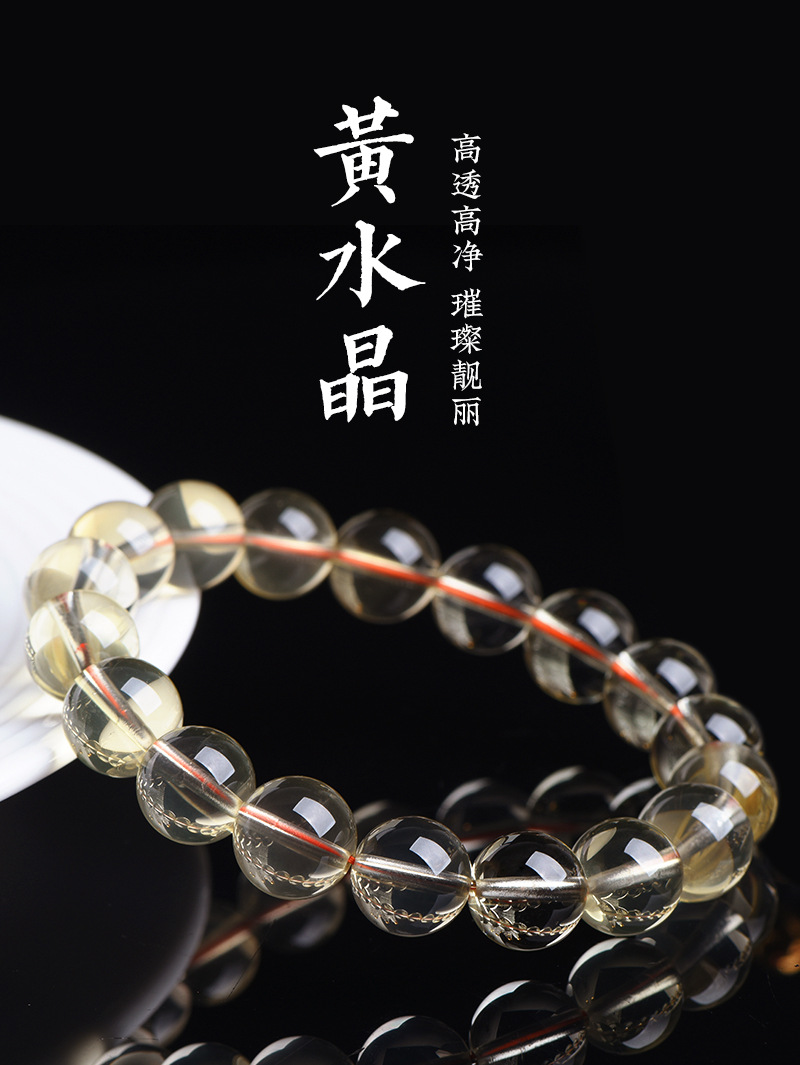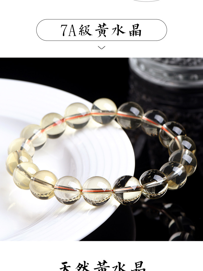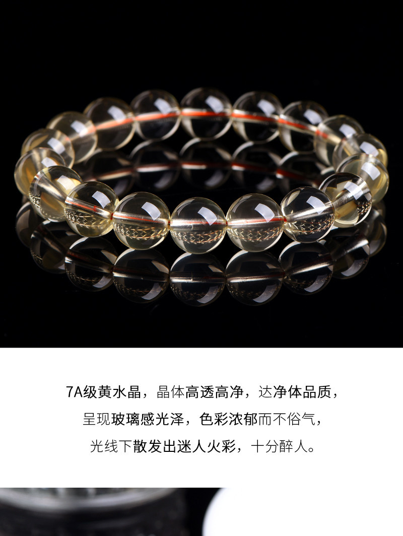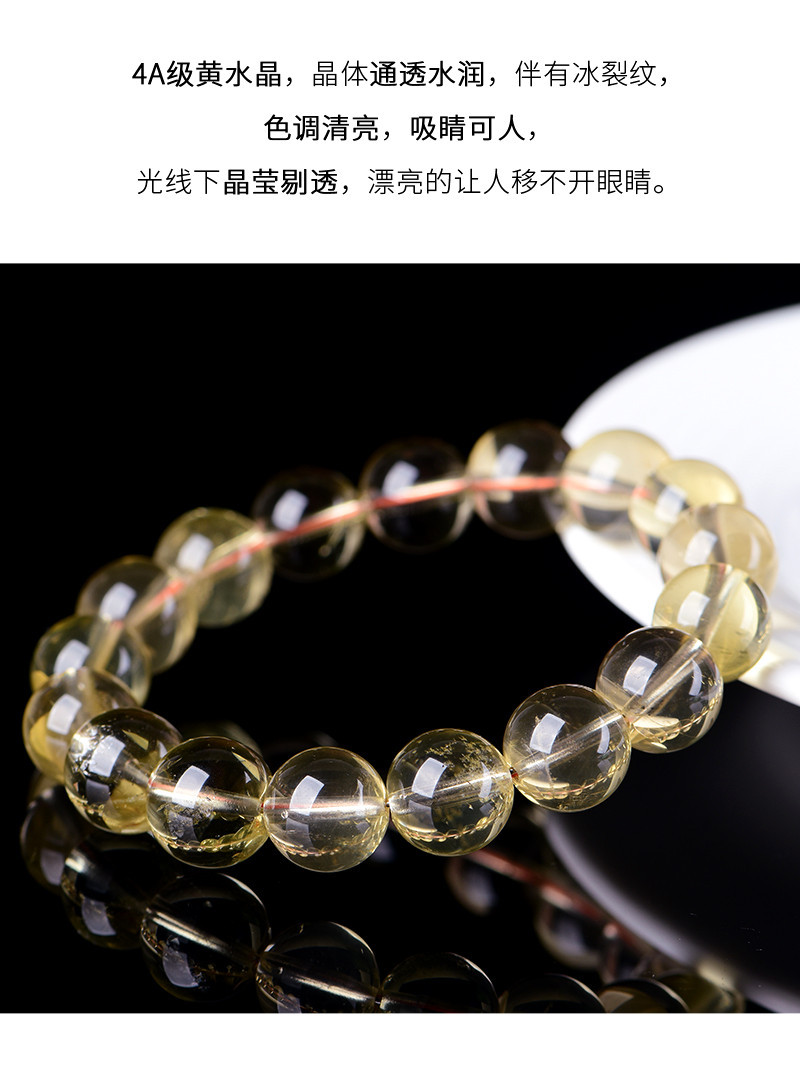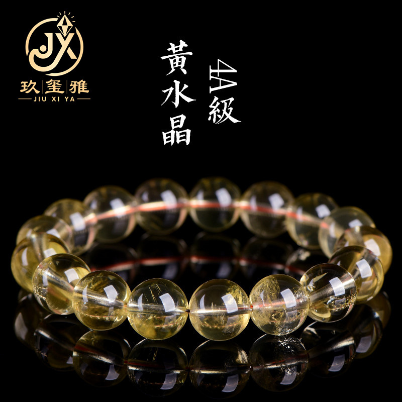 玖玺雅水晶 天然7A级黄水晶散珠手链 黄水晶圆珠手串 厂家直销