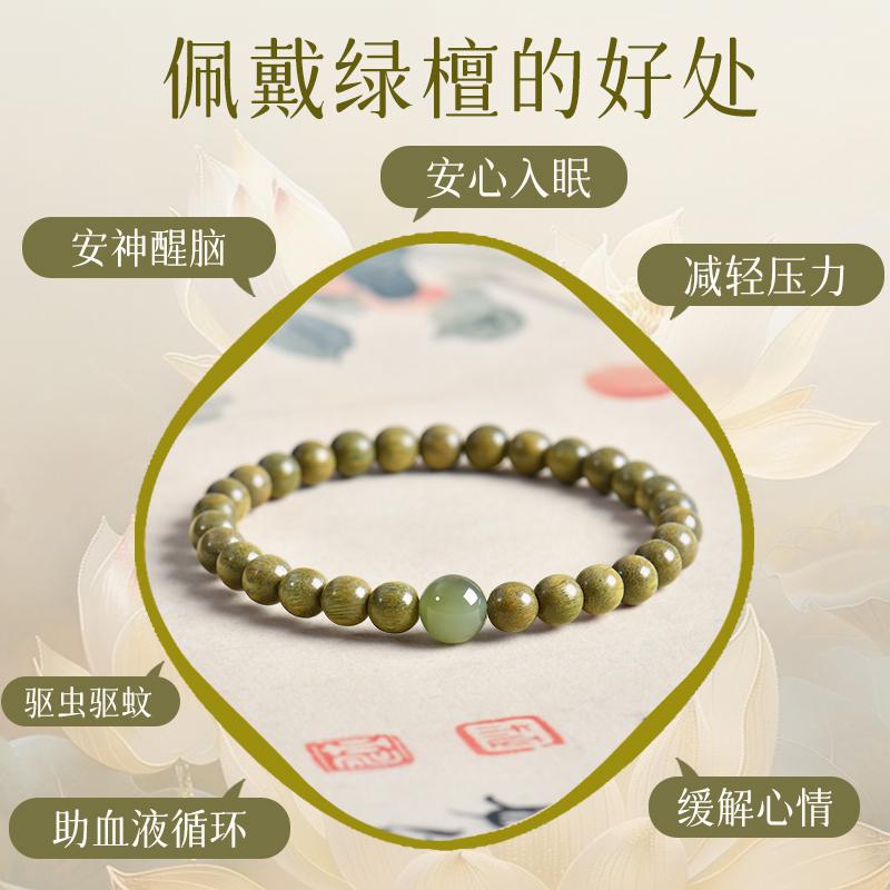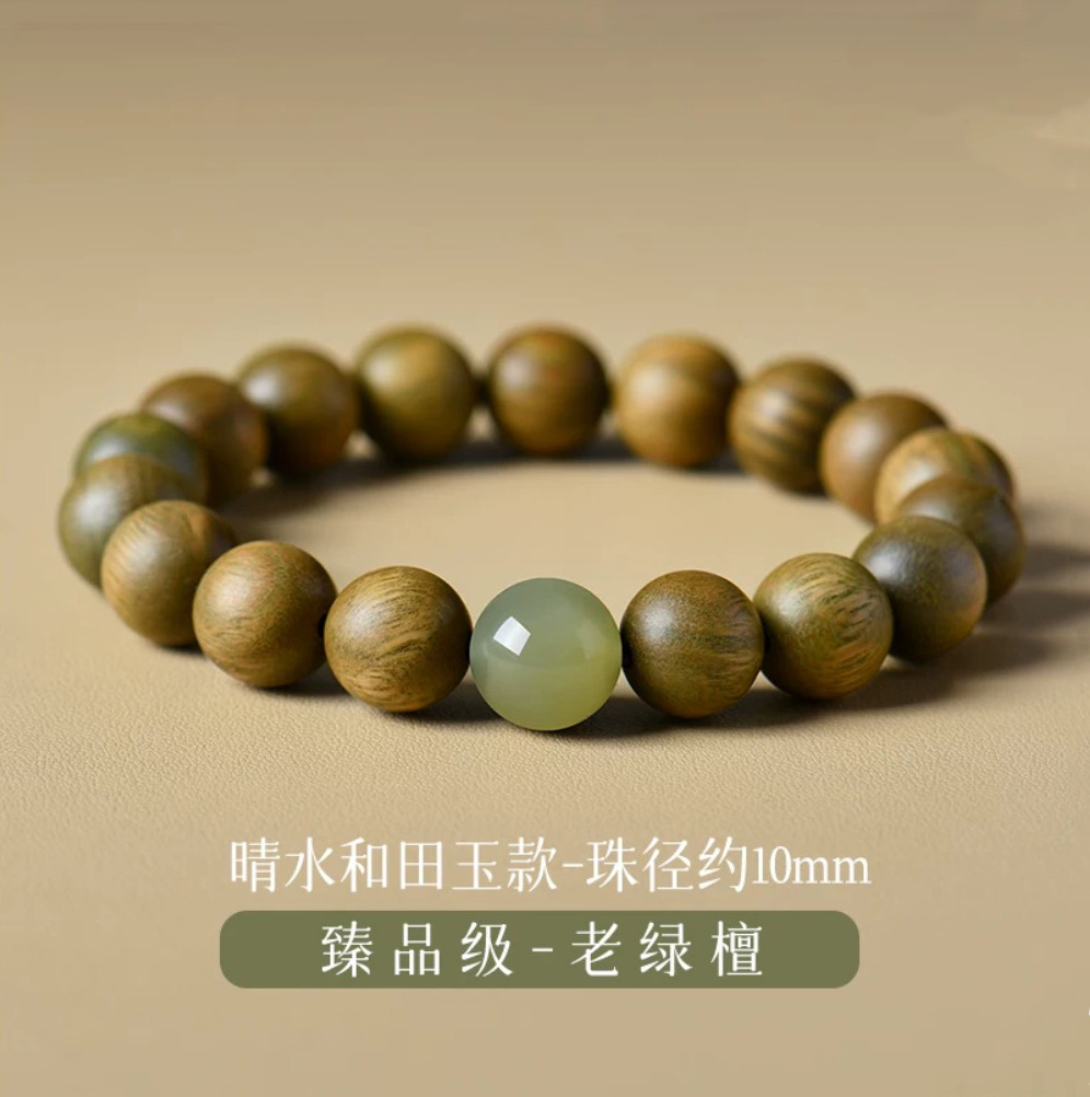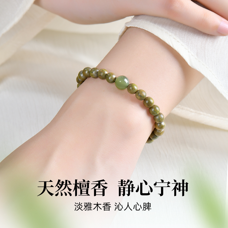 天然绿檀木手串女和田玉转珠檀木手檀香佛珠木质饰品批发绿檀木