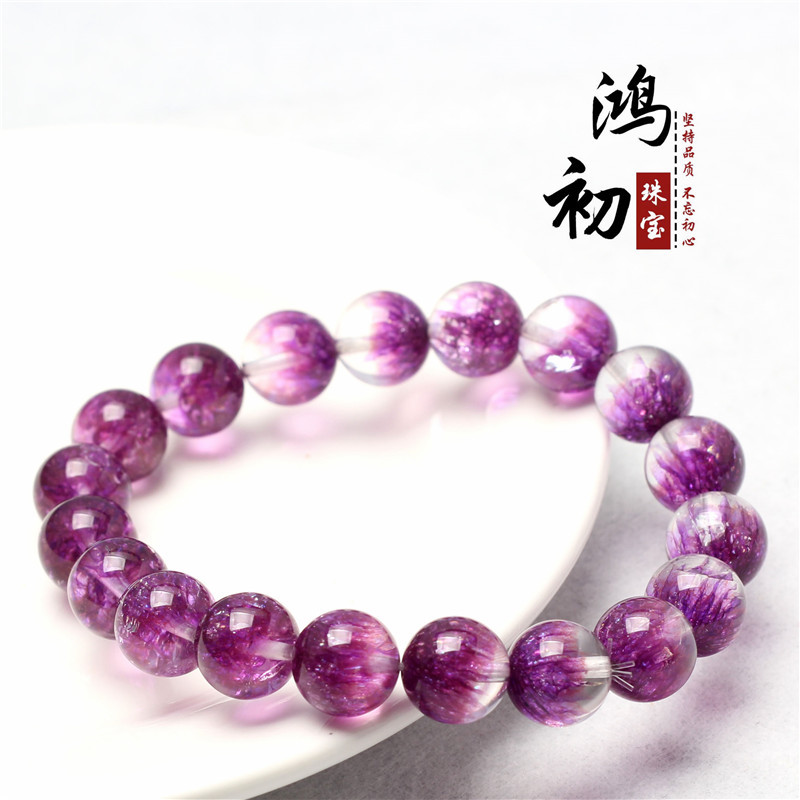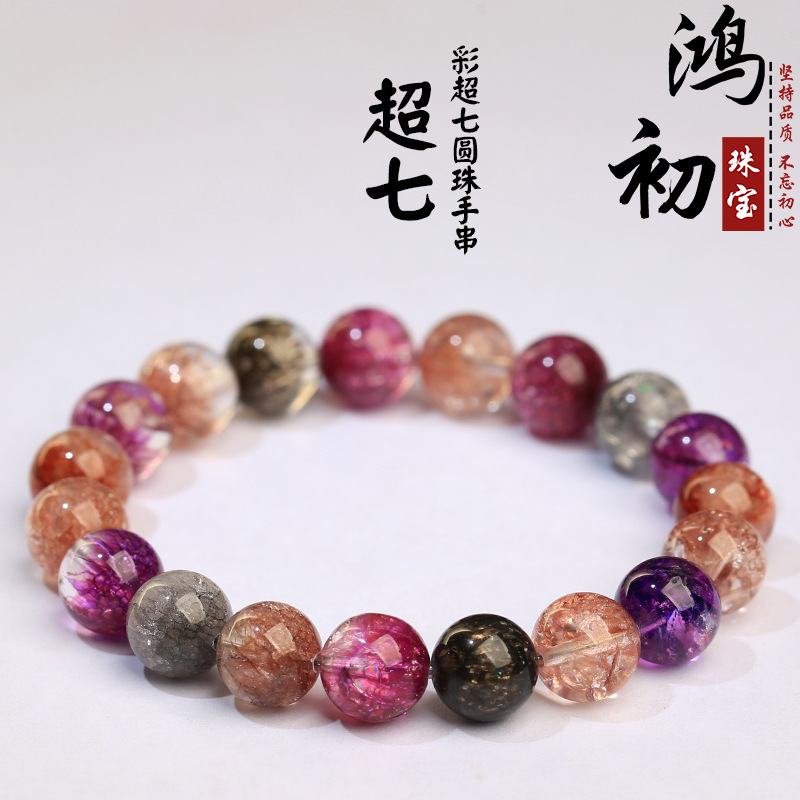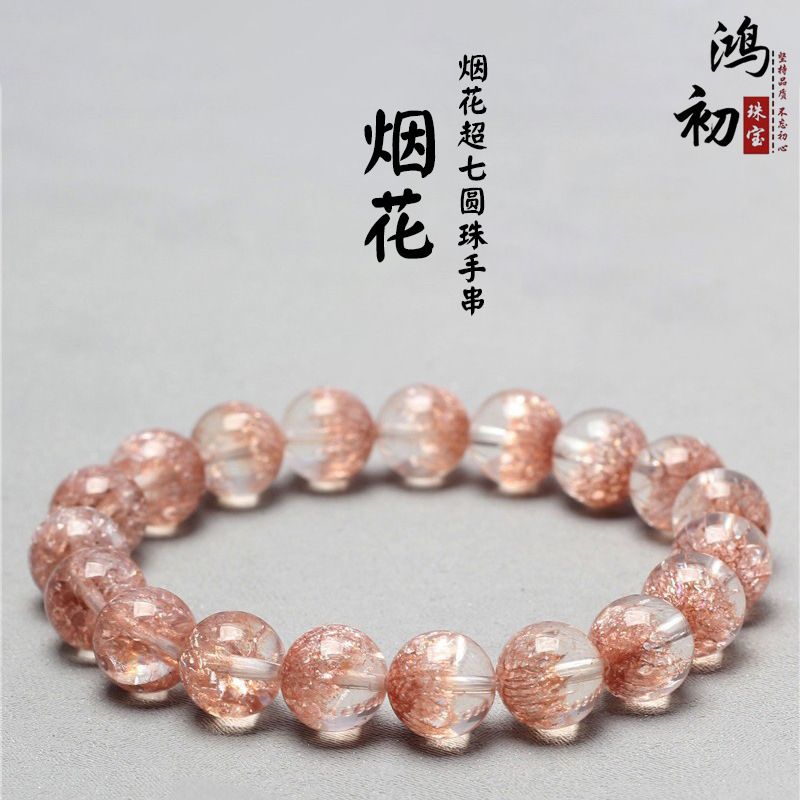 鸿初水晶 聚宝盆超七 烟花聚宝盆超七圆珠手串 多色烟花超七批发