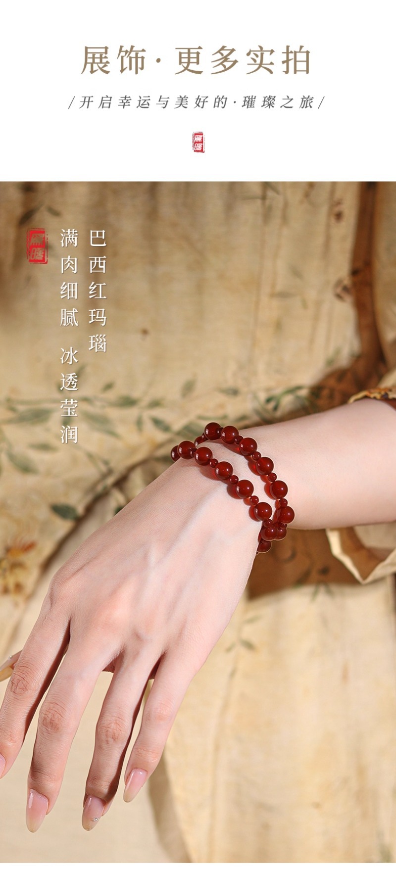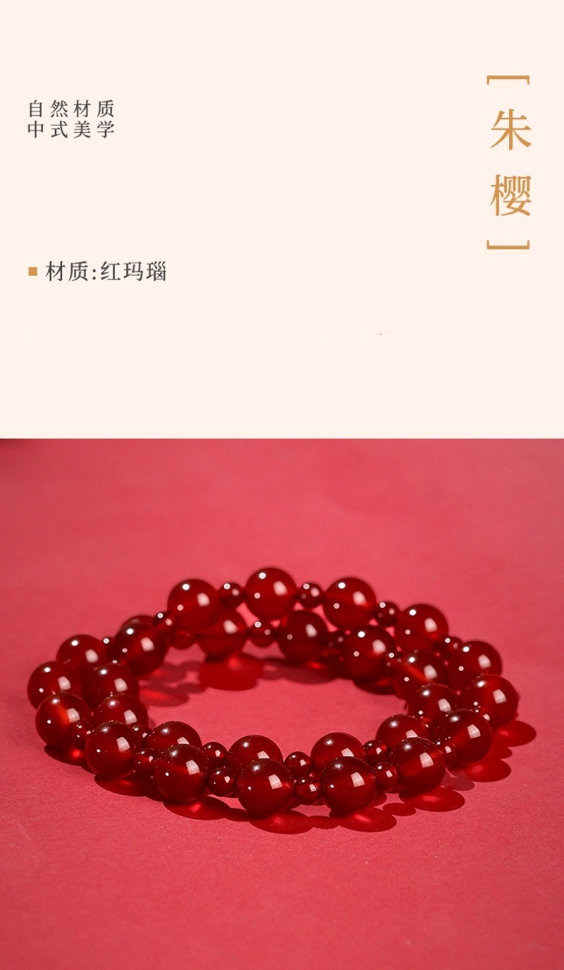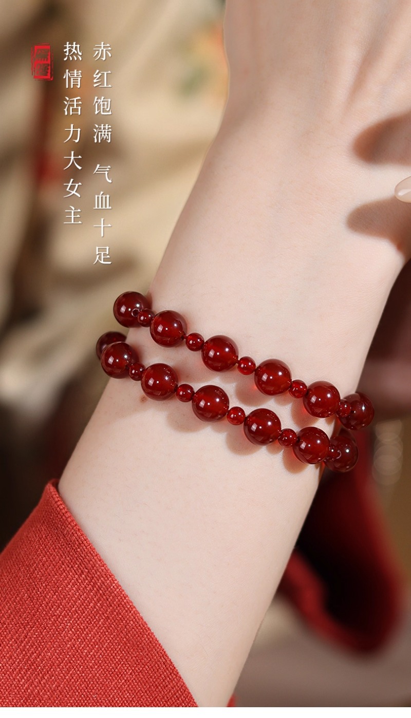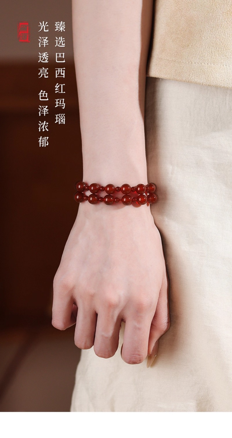 赵露思同款天然红玛瑙手串简约百搭玉髓圆珠许我耀眼许妍手串批发