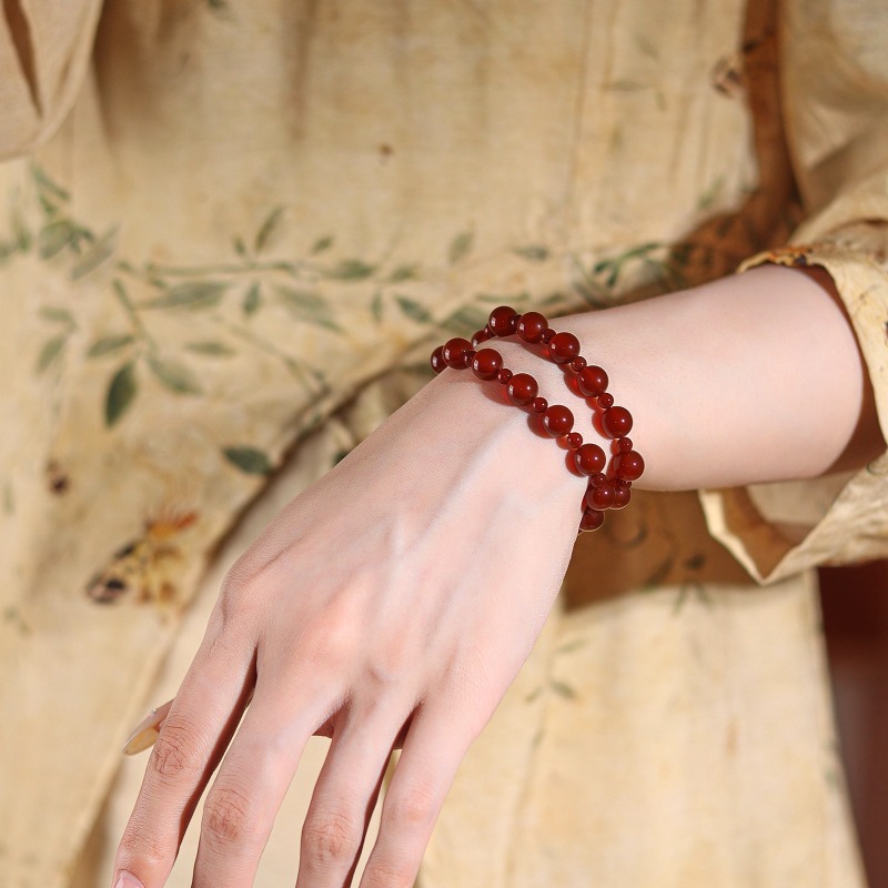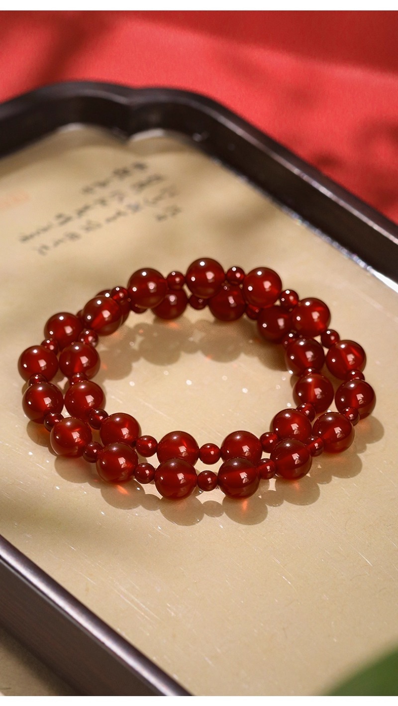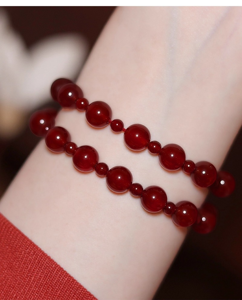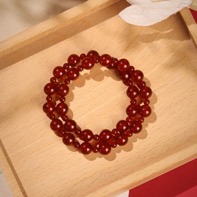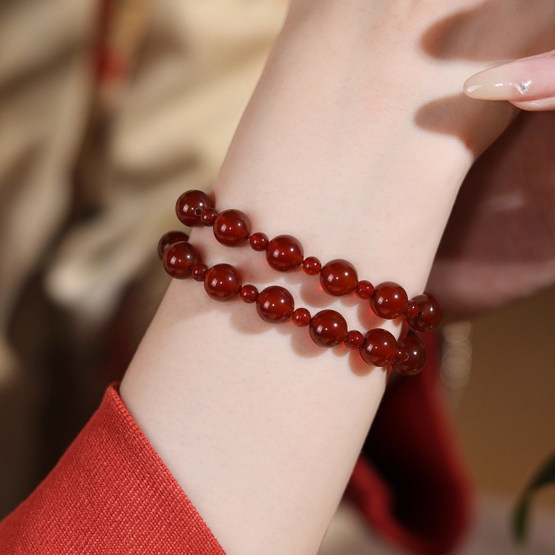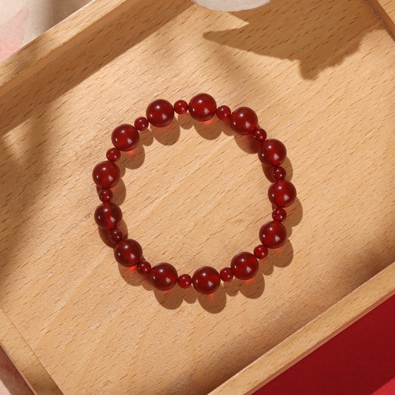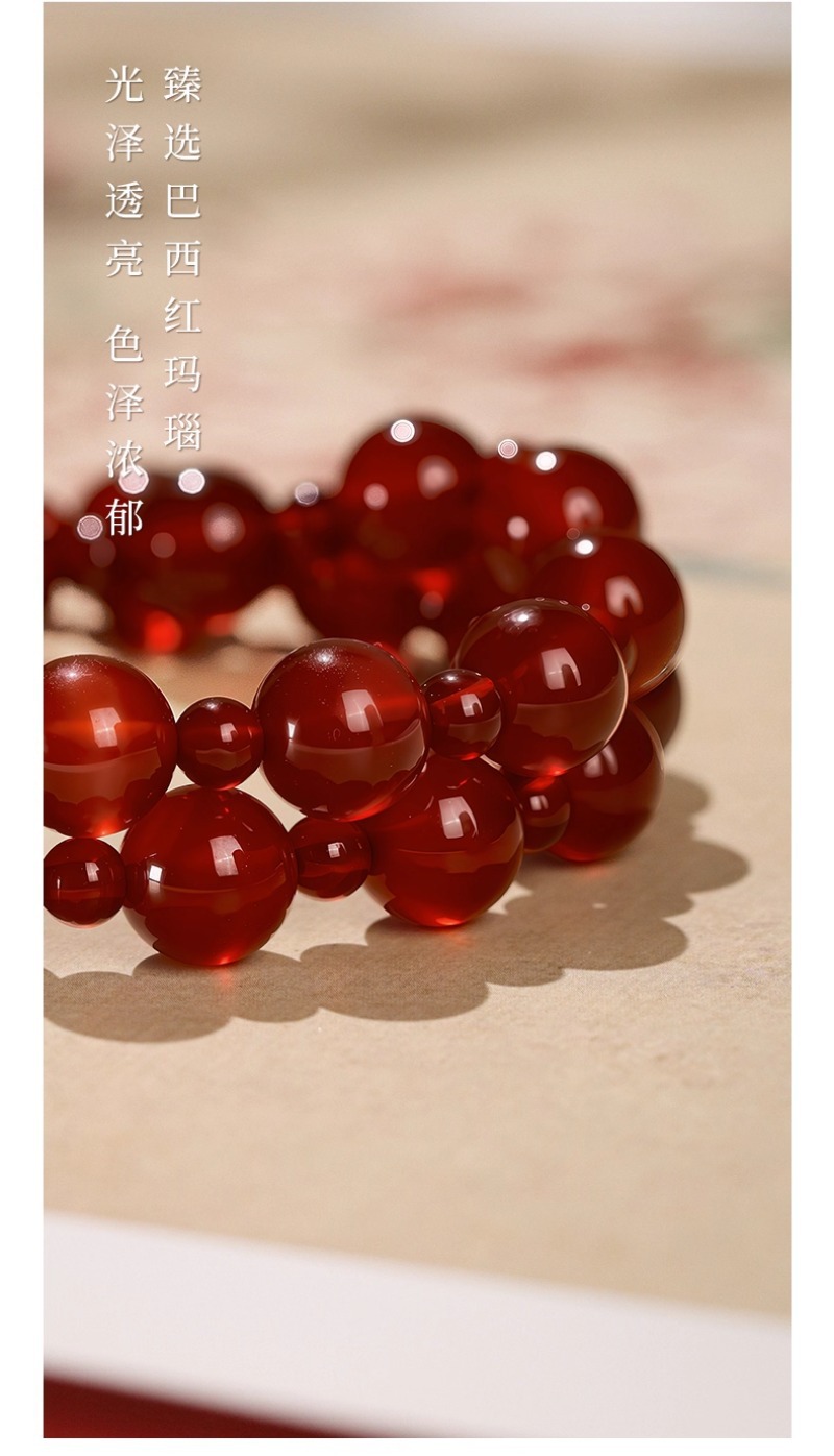 赵露思同款天然红玛瑙手串简约百搭玉髓圆珠许我耀眼许妍手串批发