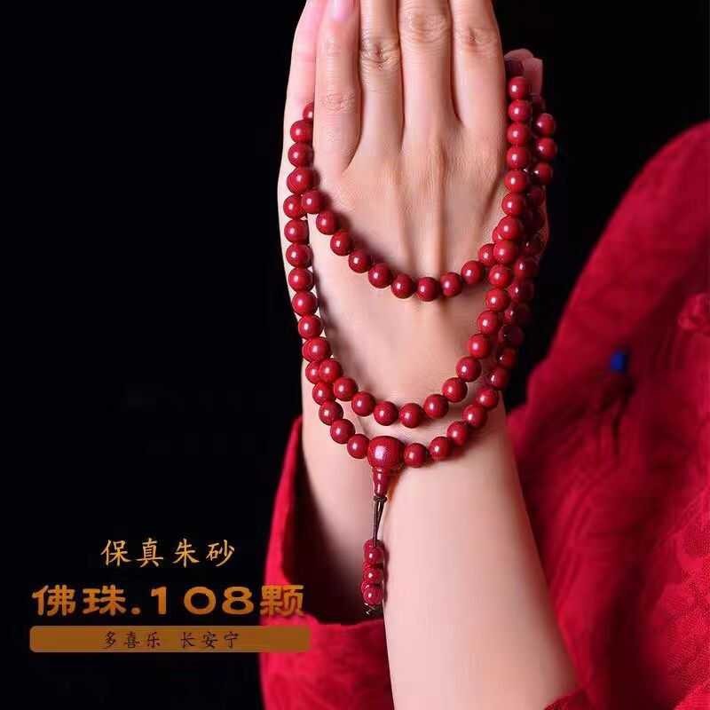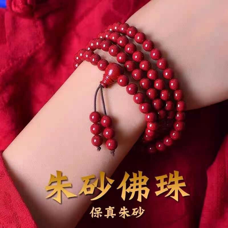 天然朱砂108颗佛珠手串多圈多层紫金砂手链佛珠男女饰品可批发