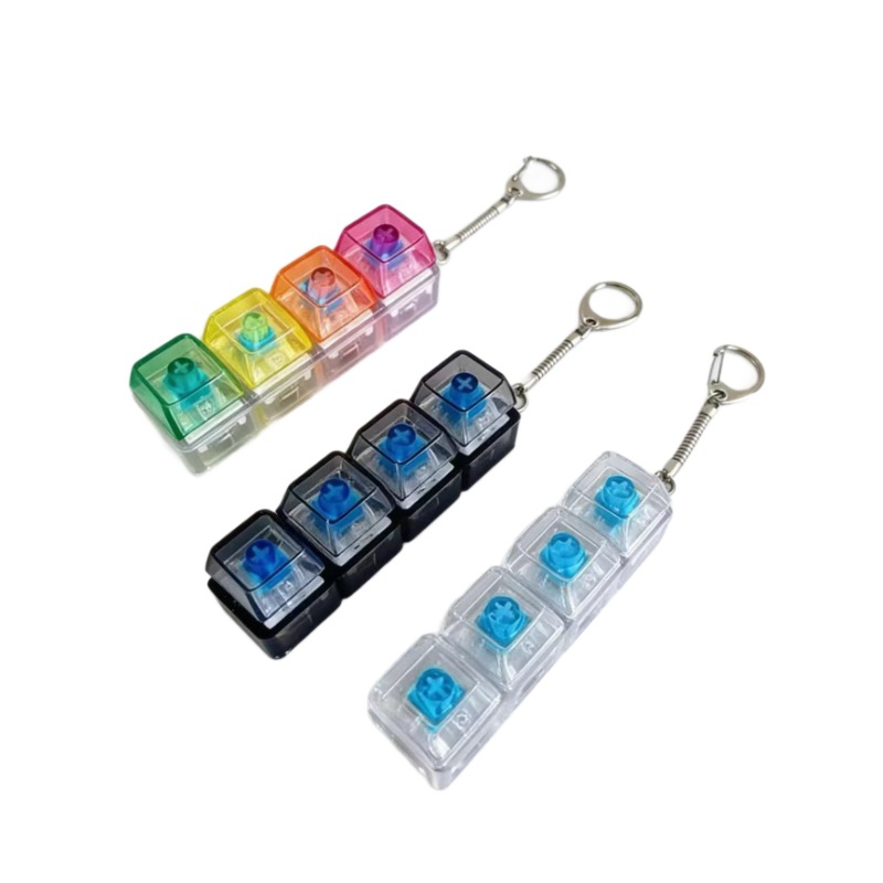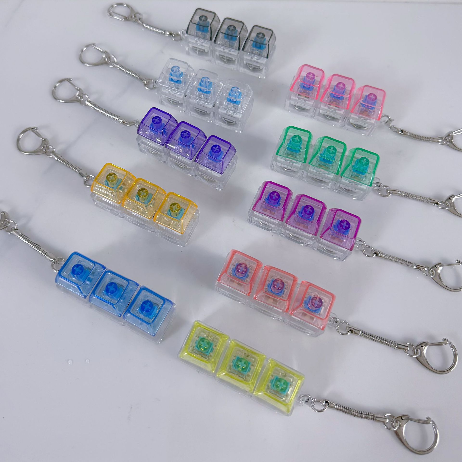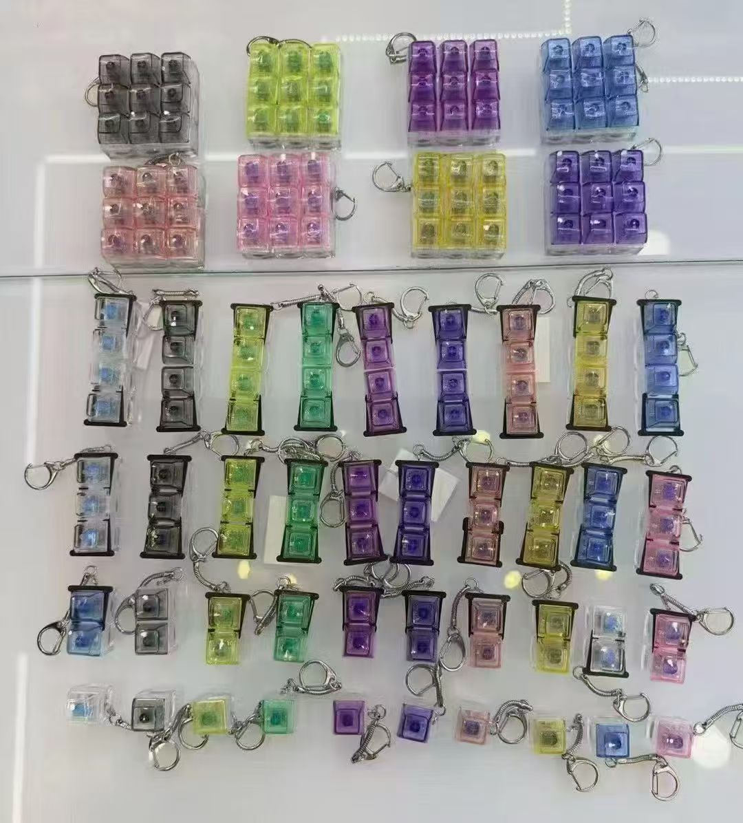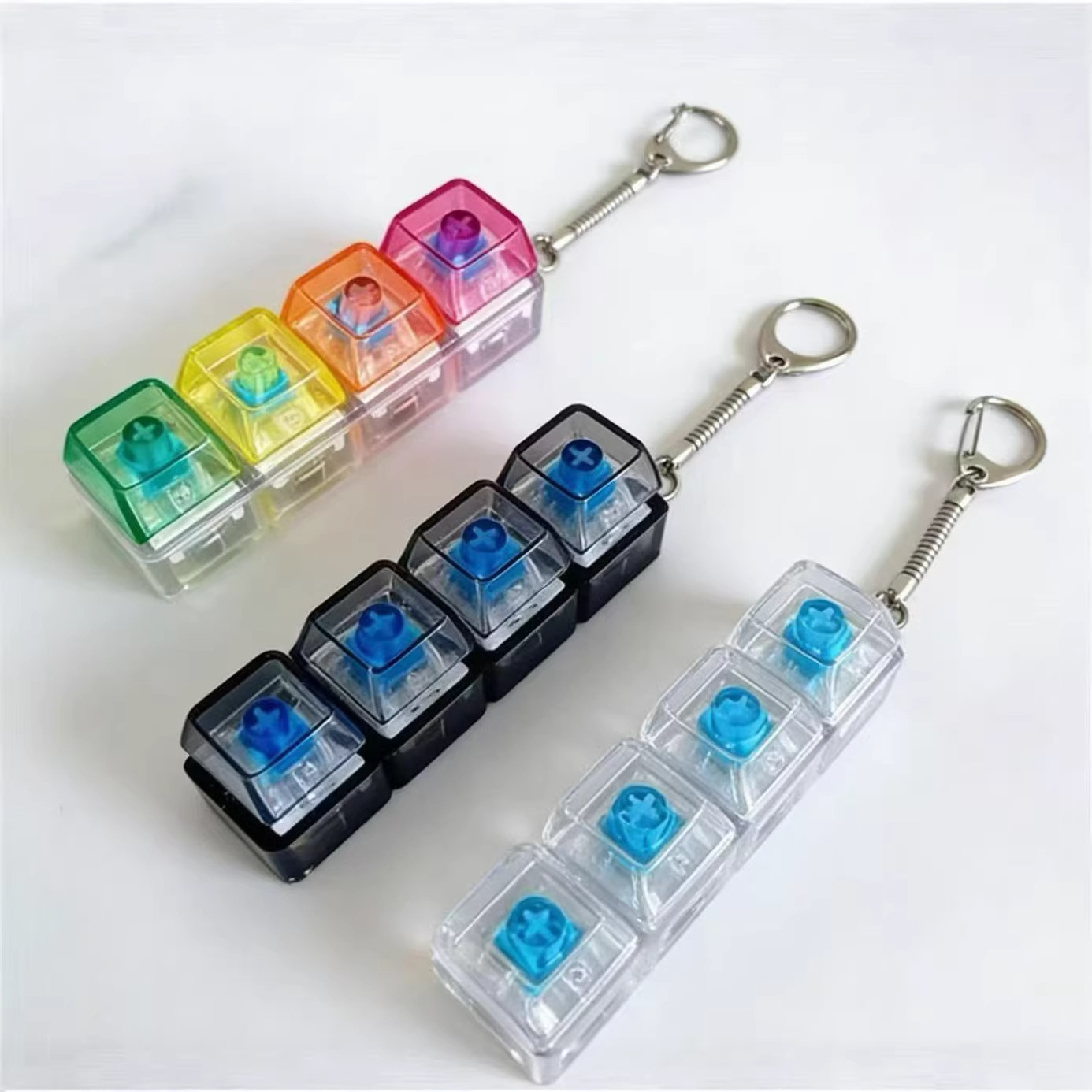 跨境创意按压带灯机械键盘减压神器钥匙扣发泄玩具透明书包挂扣