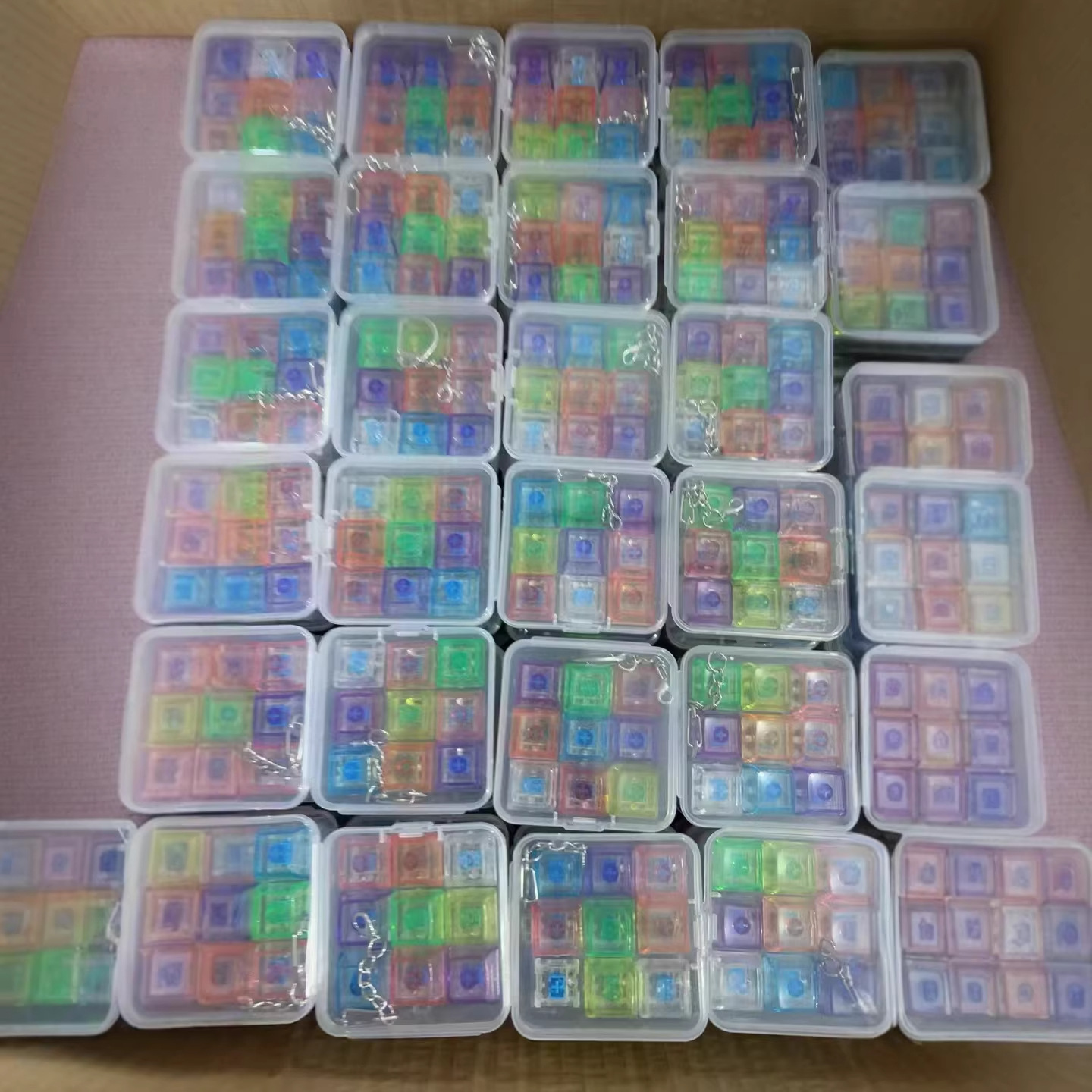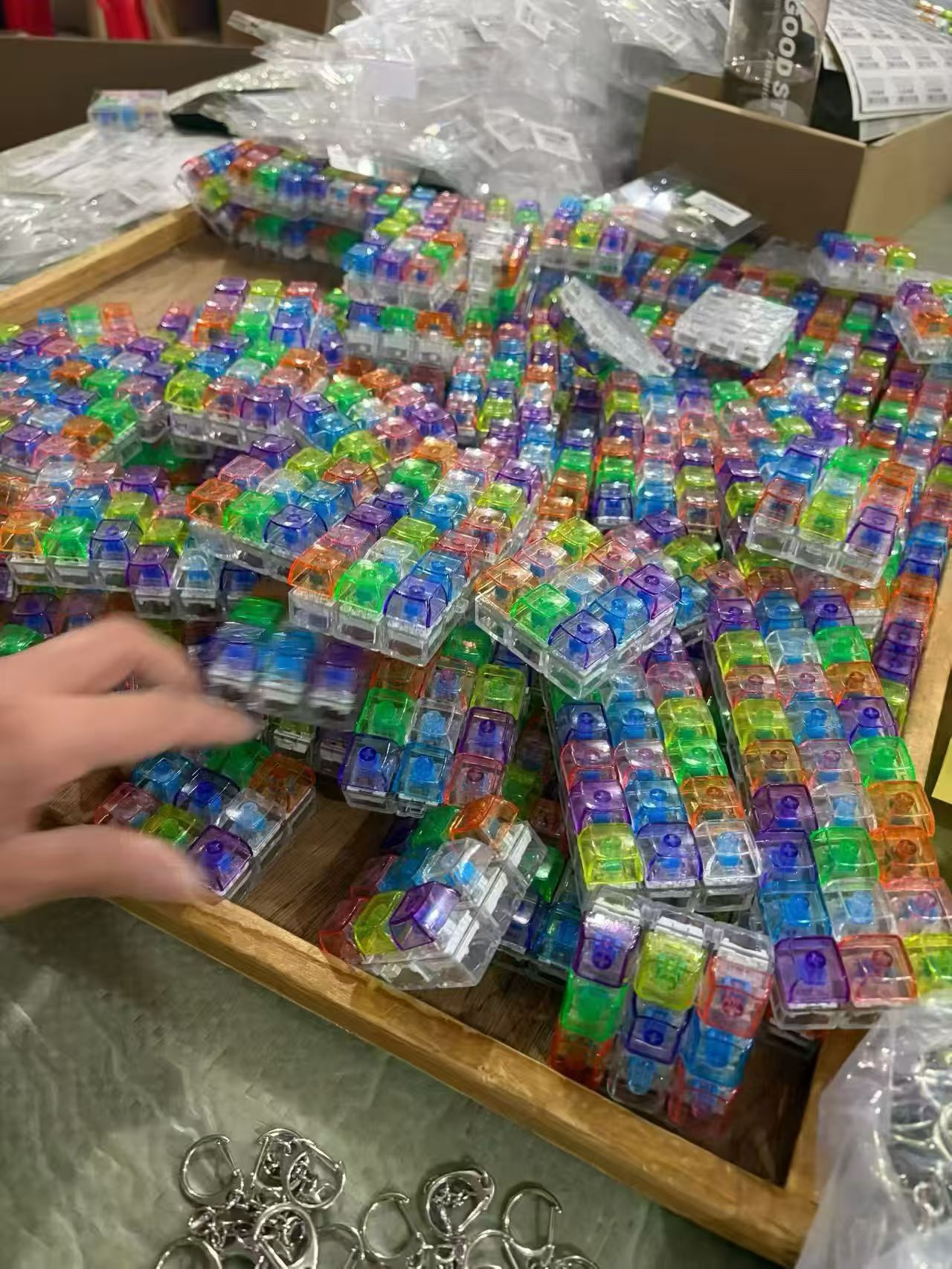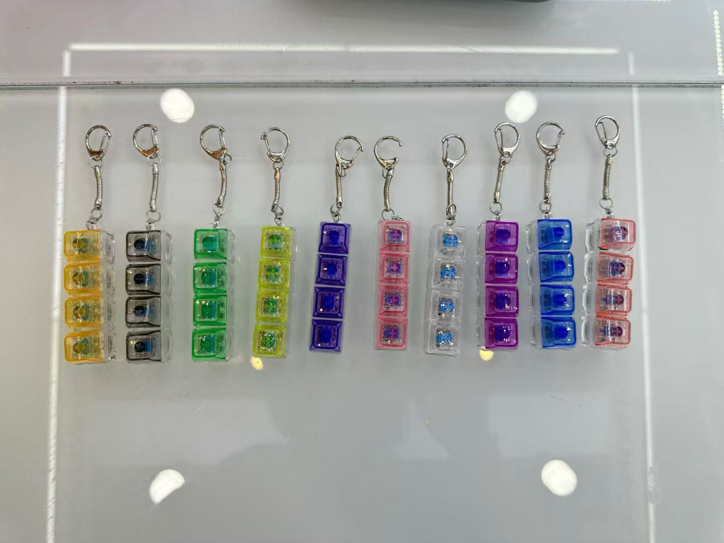 跨境创意按压带灯机械键盘减压神器钥匙扣发泄玩具透明书包挂扣