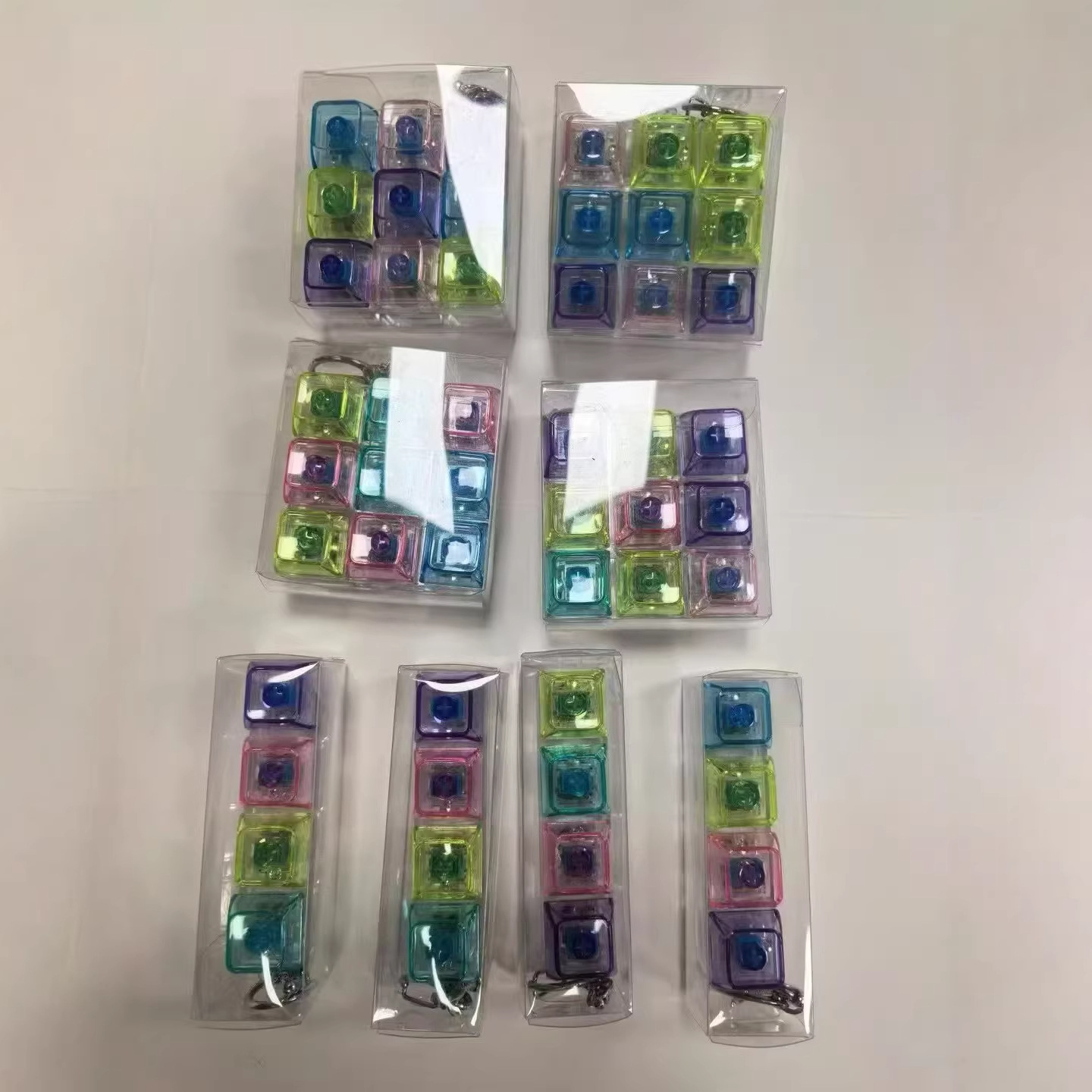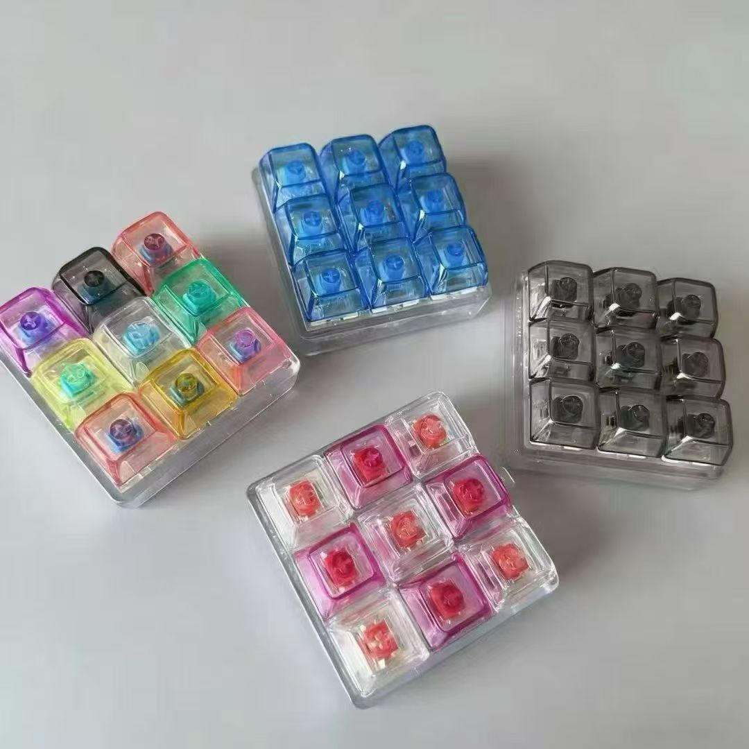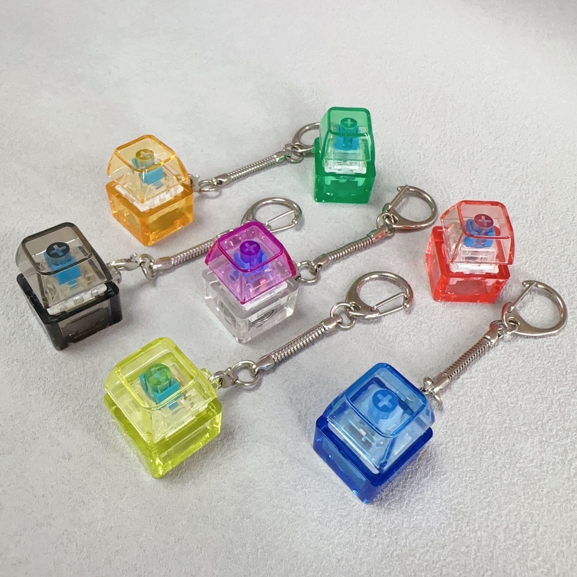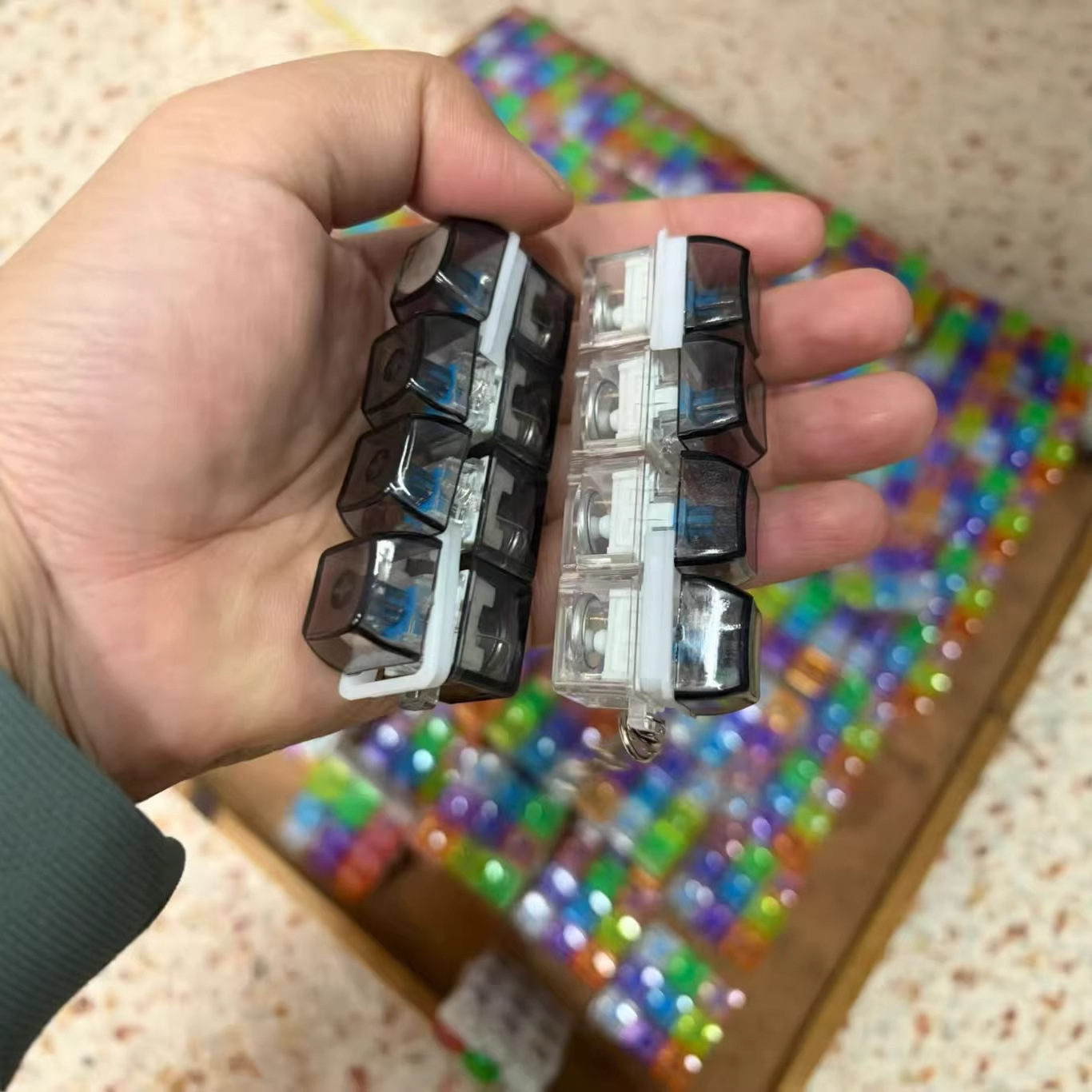 跨境创意按压带灯机械键盘减压神器钥匙扣发泄玩具透明书包挂扣