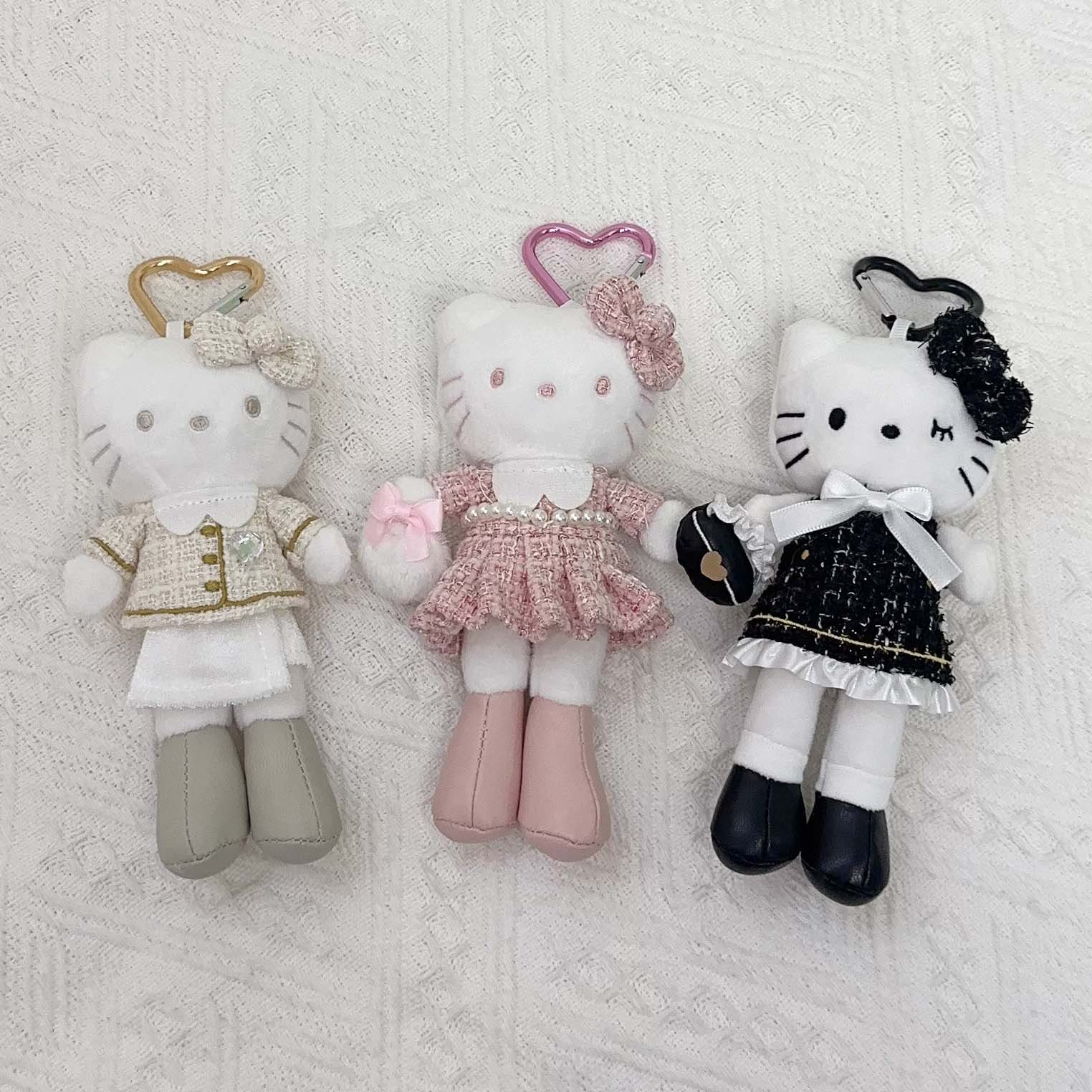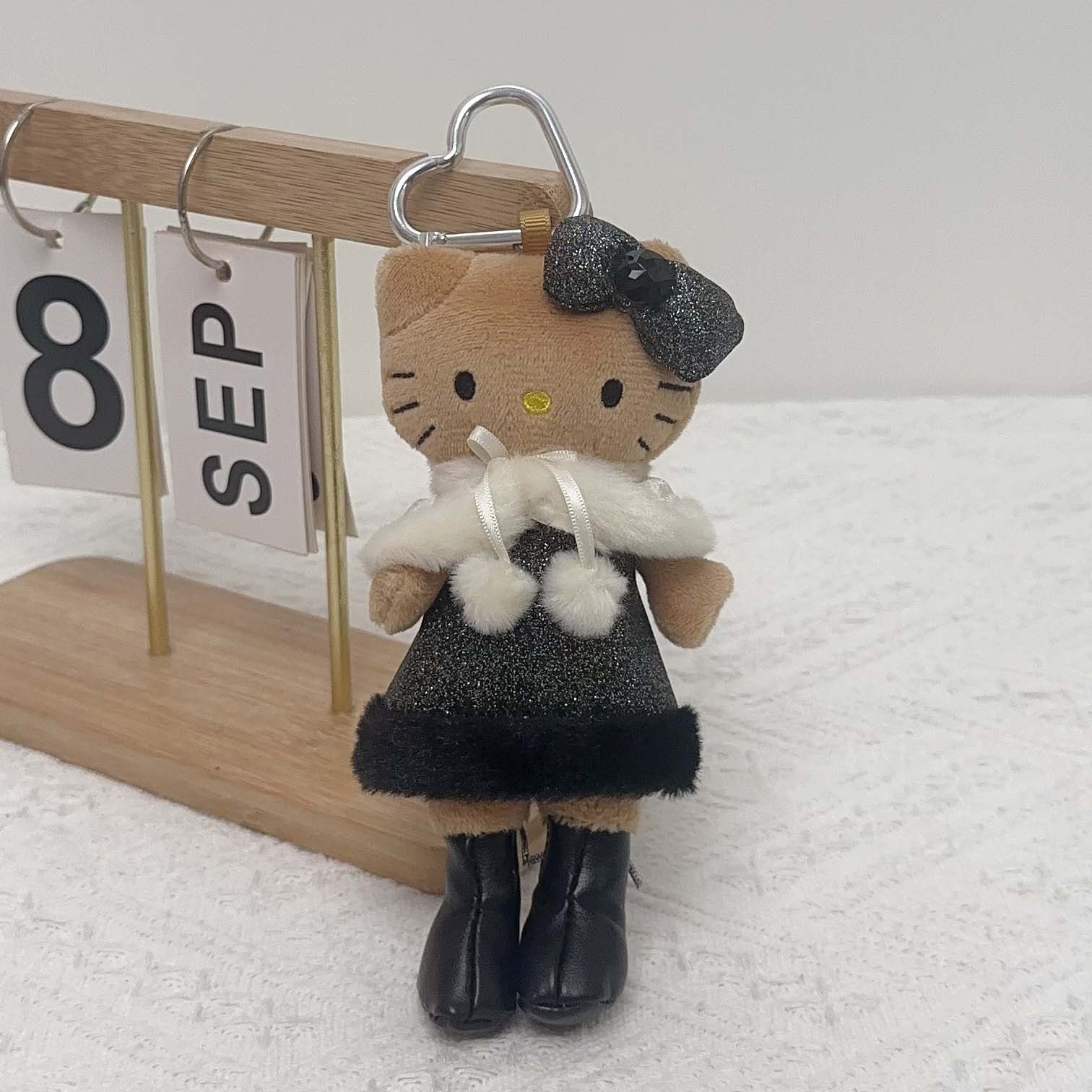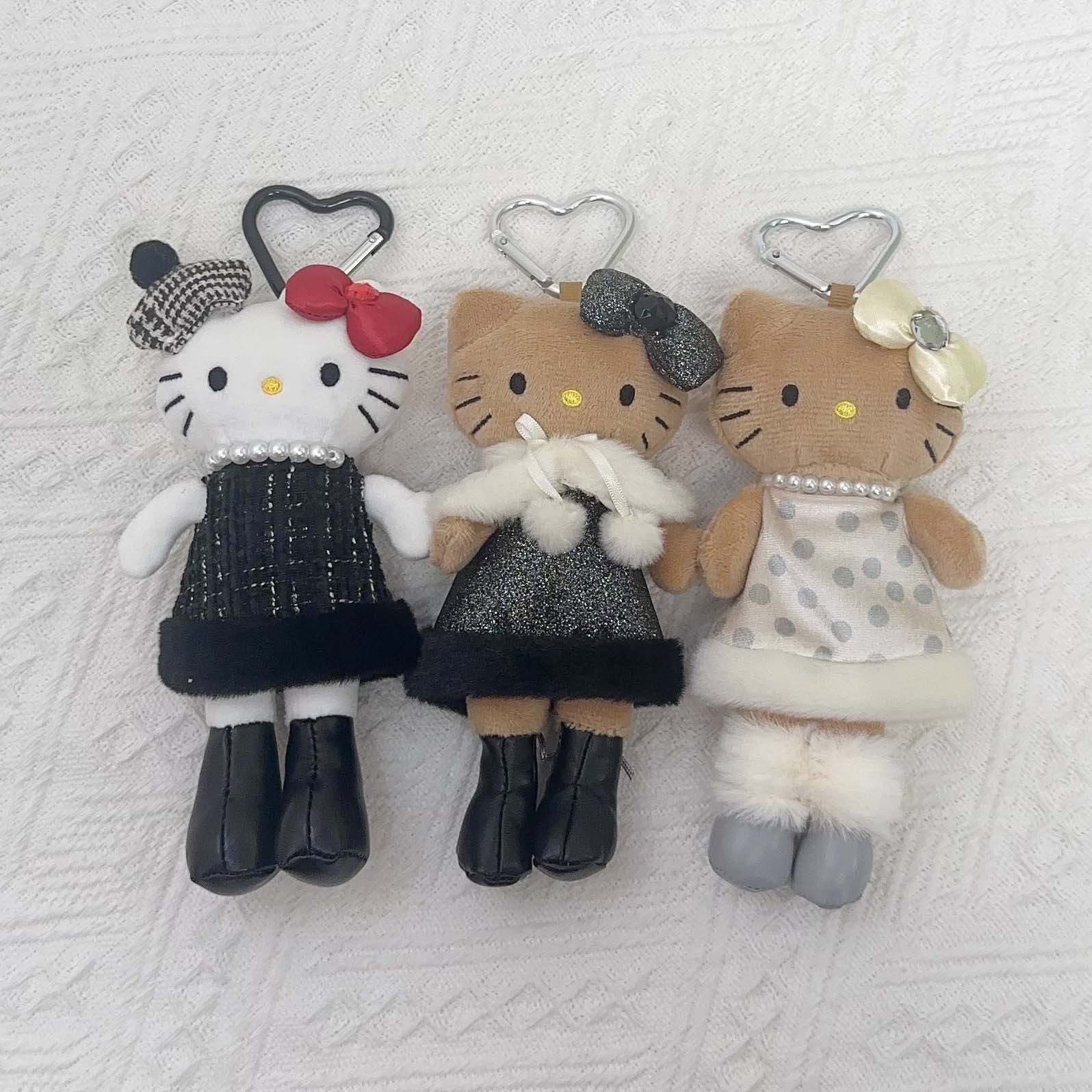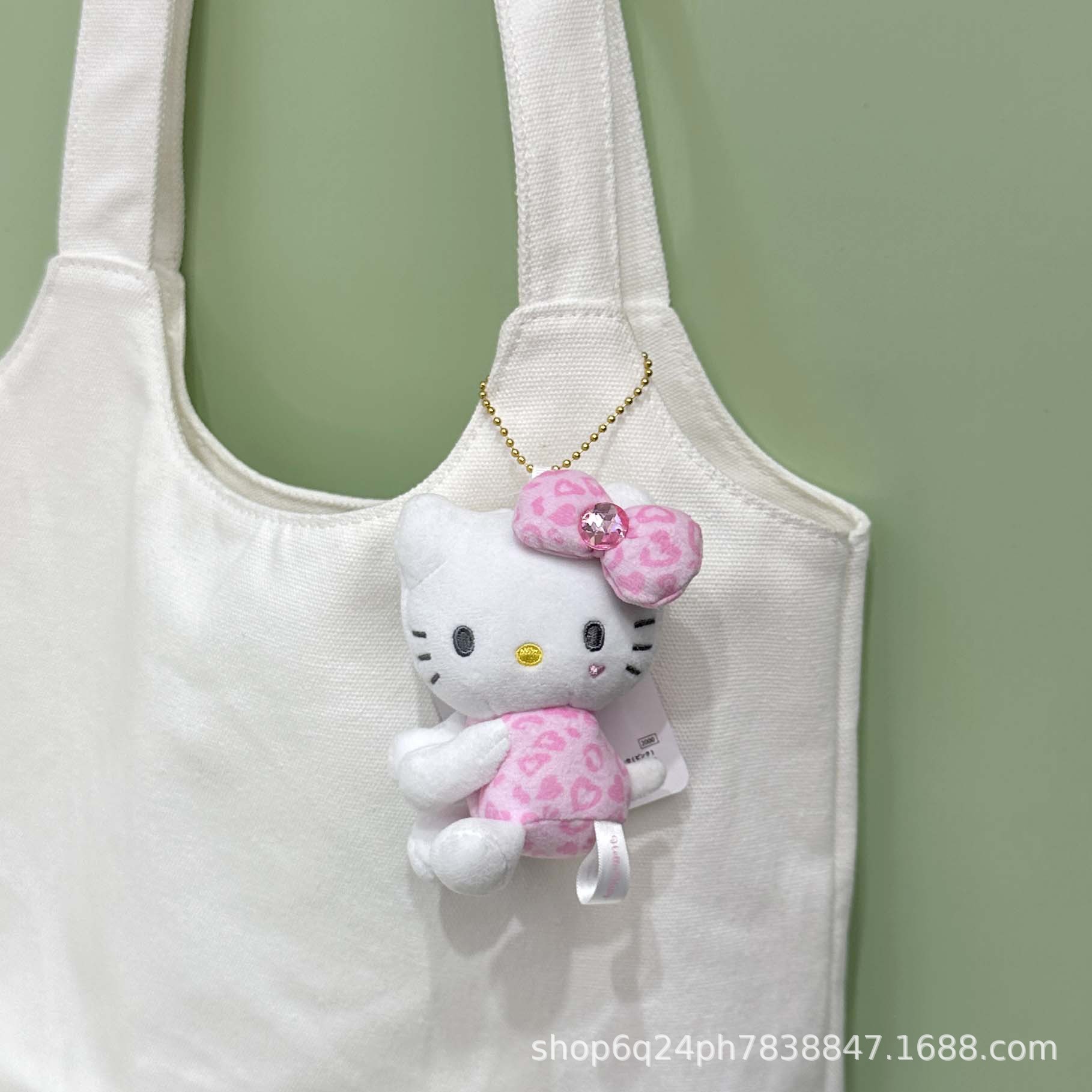 日系长脚Kitty 豹纹黑皮爱心扣毛绒玩具挂件公仔玩偶钥匙扣少女心