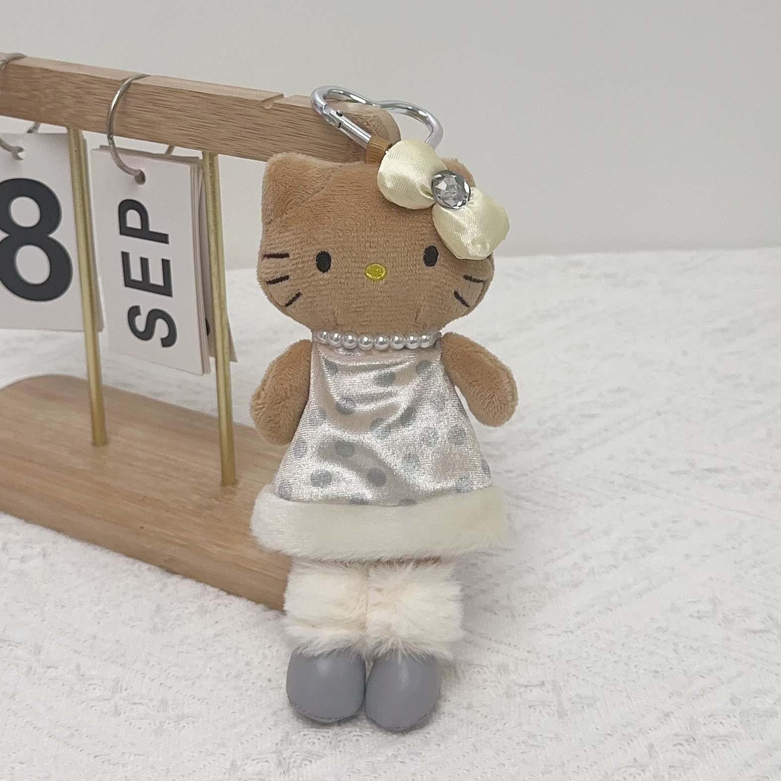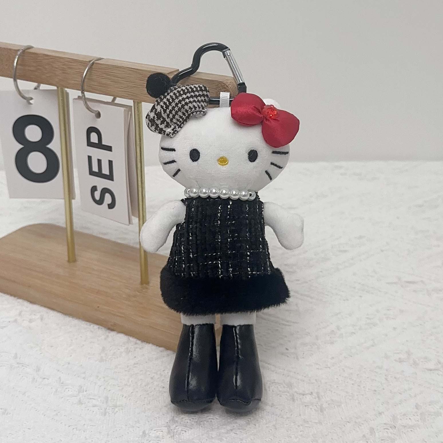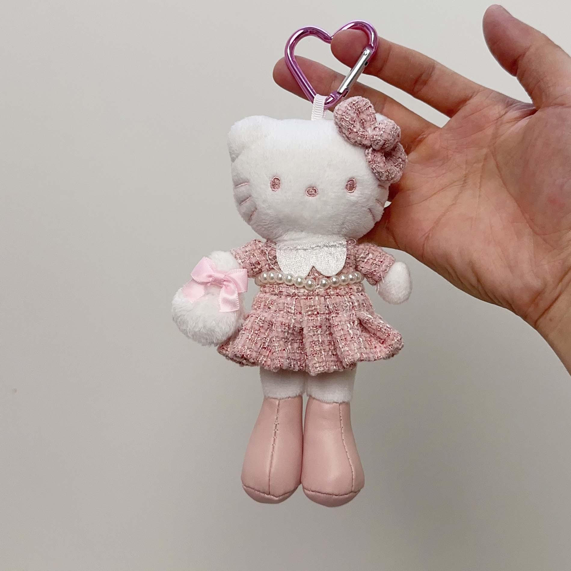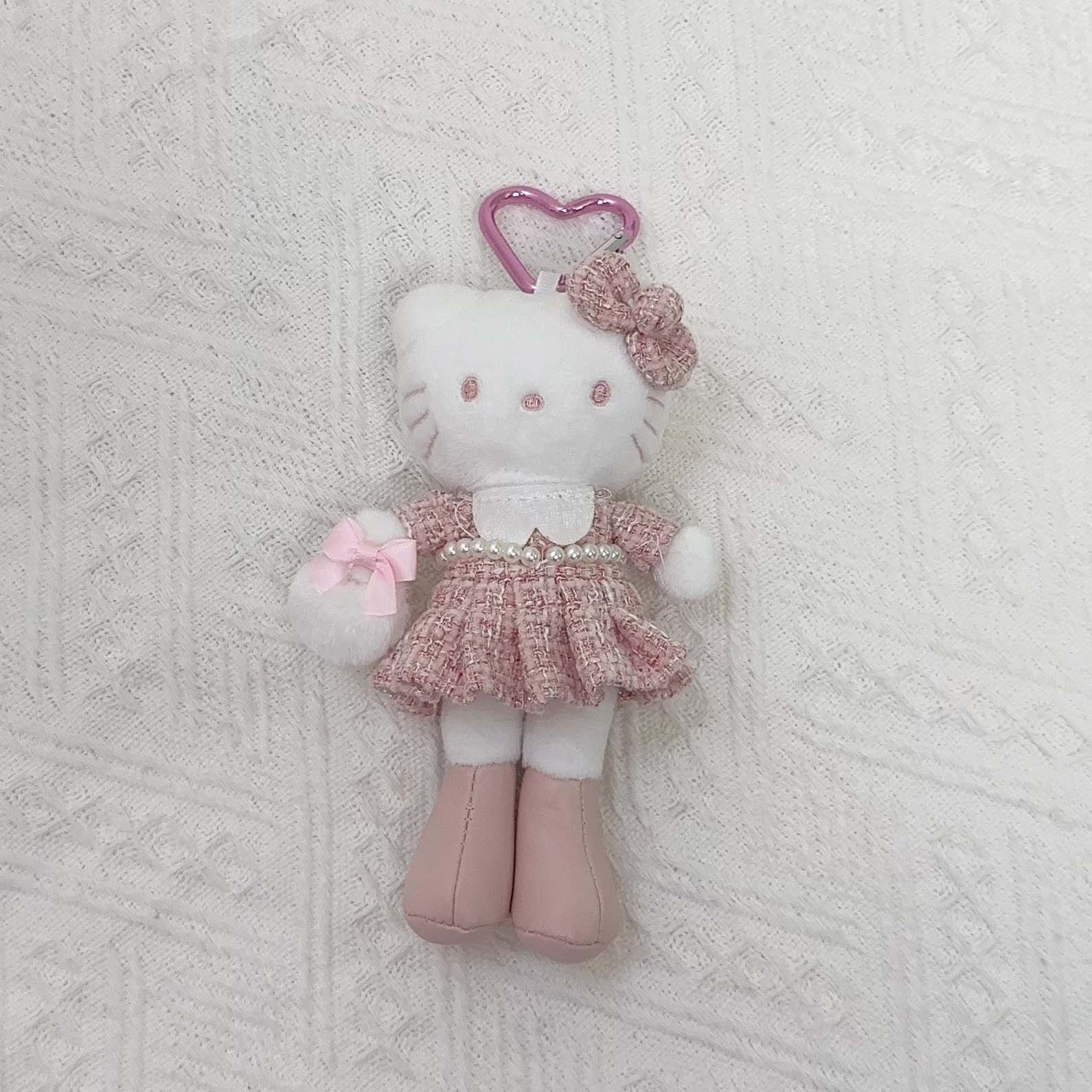 日系长脚Kitty 豹纹黑皮爱心扣毛绒玩具挂件公仔玩偶钥匙扣少女心